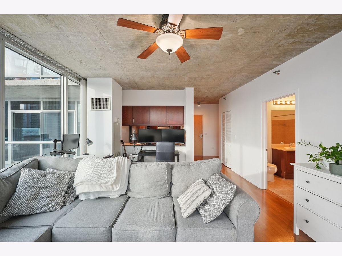 Beautiful Sun-drenched high floor corner 1bed/1bath featuring floor-to-ceiling windows. Wonderful open layout floor-plan with large kitchen featuring stainless steel appliances, under-mount sink, maple cabinetry, and granite countertops. The spacious bedroom and living areas are well-proportioned. Hardwood floors throughout, in-unit laundry, custom black out blinds, and ample storage including a dedicated storage unit. Large balcony with breathtaking east & south views of the city skyline. Deeded heated garage parking additional $25,000. Full-amenity building with 24-hour door staff, a fitness center, sundeck, spa with steam room and whirlpool, party room, bike room, on-site engineers, a strong association, and solid reserves. Located in the heart of the South Loop, steps from public transit, Metra, Grant Park, the lakefront, newly constructed riverwalk park, and minutes from the West Loop.