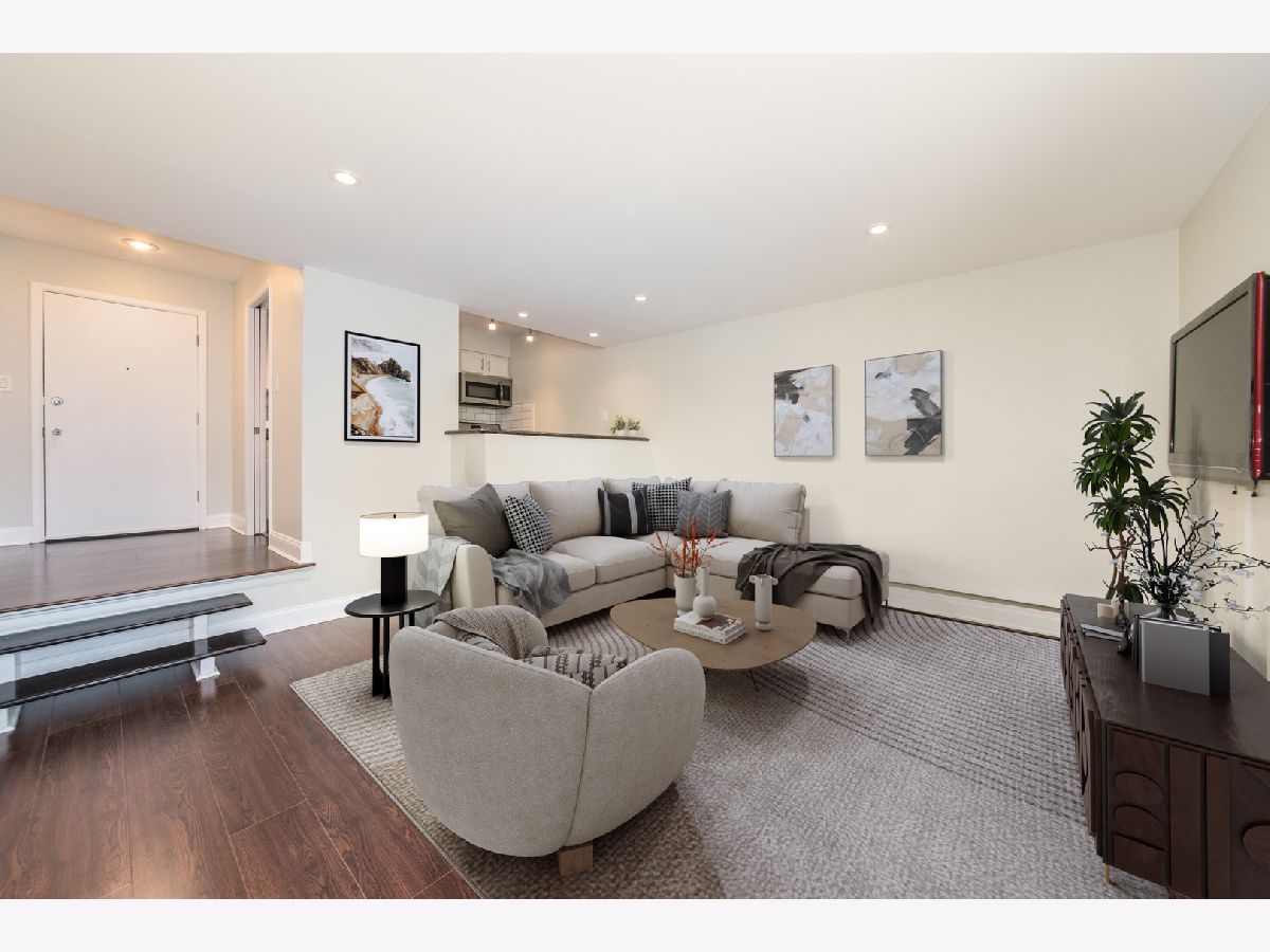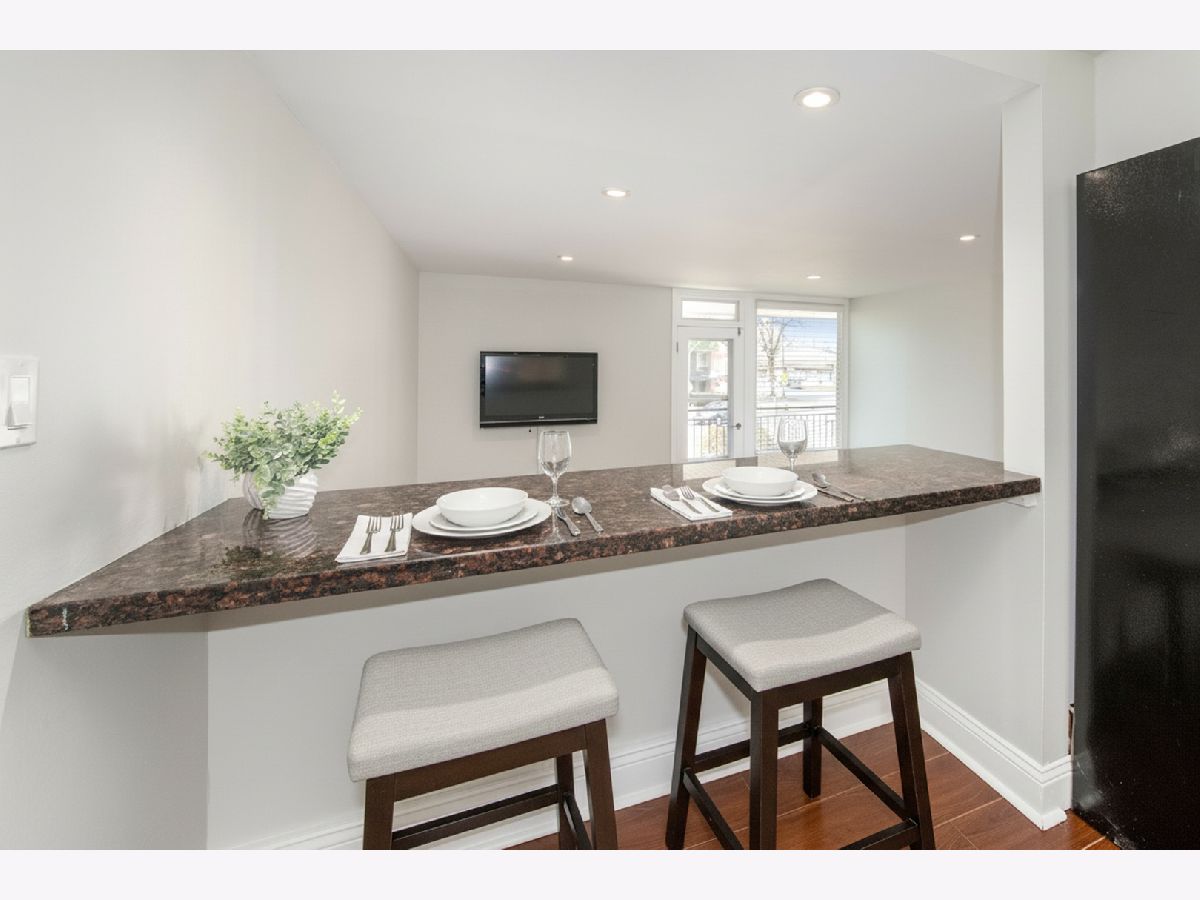 THE OPEN HOUSES SCHEDULED FOR MARCH 6TH AND MARCH 7TH ARE BEING CANCELED. This one bedroom condo offers the perfect mix of privacy, comfort, and city accessibility in a classic mid-century modern elevator building. Inside, the open and functional layout is ideal for today's lifestyle. The updated kitchen features granite countertops, tile flooring, and a breakfast bar that flows into a spacious dining area overlooking a sunken living room. Floor-to-ceiling windows fill the space with natural light, making it easy to entertain, relax, or work from home. Step outside to your private balcony and enjoy peaceful afternoon sunsets, a feature that enhances the home's everyday appeal. The bedroom is generously sized with ample closet space, while the updated bathroom includes a whirlpool tub for unwinding after a long day. Additional highlights include updated laminate flooring, energy-efficient LED lighting, in-building coin laundry, and a dedicated storage space. One covered parking spot is included, along with plenty of street parking for guests. Located in Jefferson Park, you are minutes from the Blue Line, Metra, CTA buses, major expressways, grocery stores, dining, and neighborhood parks. Ideal for professionals, remote or hybrid workers, or anyone looking for a quiet retreat that stays well connected to the city.