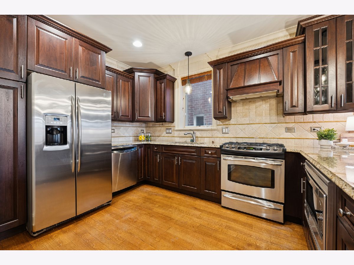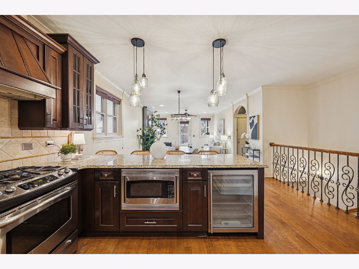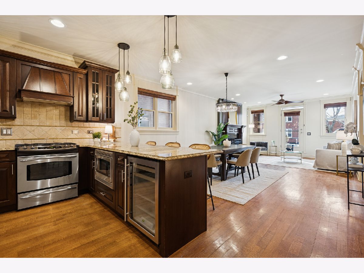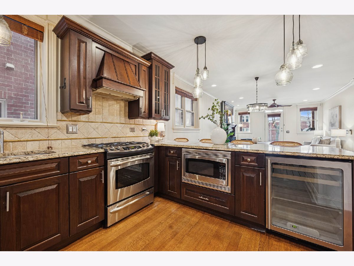 Just one block from Lake Michigan, this impeccably constructed 2,200+ sq ft duplex-down delivers exceptional craftsmanship, timeless materials, and thoughtful design throughout. This meticulously maintained all brick home offers three spacious bedrooms, two and a half baths, and an attached garage - an uncommon and desirable feature. From the moment you enter the welcoming arched foyer featuring a coat-closet cabinet and marble bench, the quality of the condo is unmistakable. The beautifully updated kitchen is designed for both daily living and entertaining, featuring expansive granite countertops, premium stainless steel appliances, a wine refrigerator, plus an enormous peninsula with seating for 5+. The dining space is right off the kitchen with plenty of room for a full-sized dining table. The home offers two generously sized living areas, each anchored by a handsome wood fireplace. The main level fireplace has a gas starter and is wood-burning, while the lower-level fireplace is gas, creating warmth and character on both levels. The lower level family room includes a full wet bar with a second wine/beverage fridge and custom cabinetry, making it perfect for hosting. The main level oversized primary suite is a true retreat, complete with a custom walk-in closet and a luxurious stone bath featuring a walk-in steam shower with six body sprays, a large granite double vanity, and abundant built-in storage. The additional two lower level bedrooms are king-sized and feature walk-in closets. Outside, enjoy a private front porch overlooking a fully fenced-in front yard, perfect for grilling or relaxing on warm days. Rich hardwood floors, substantial millwork, wood blinds on all windows, custom lighting, and great storage throughout speak to the superior construction and the builder's attention to detail, all designed with real living in mind. The beautifully maintained, all-brick complex reflects pride of ownership with an excellent, proactive HOA, while the location offers easy access to restaurants, retail, public transportation, and the lakefront. This is a rare opportunity to own a solidly built, thoughtfully designed home where quality construction meets comfort, space, and an unbeatable location.