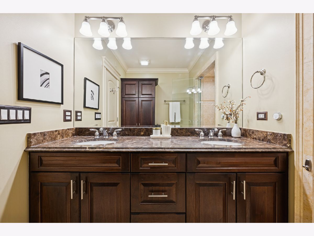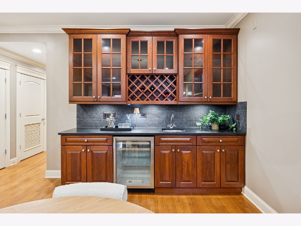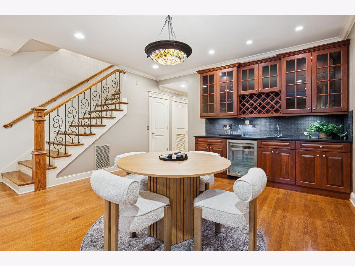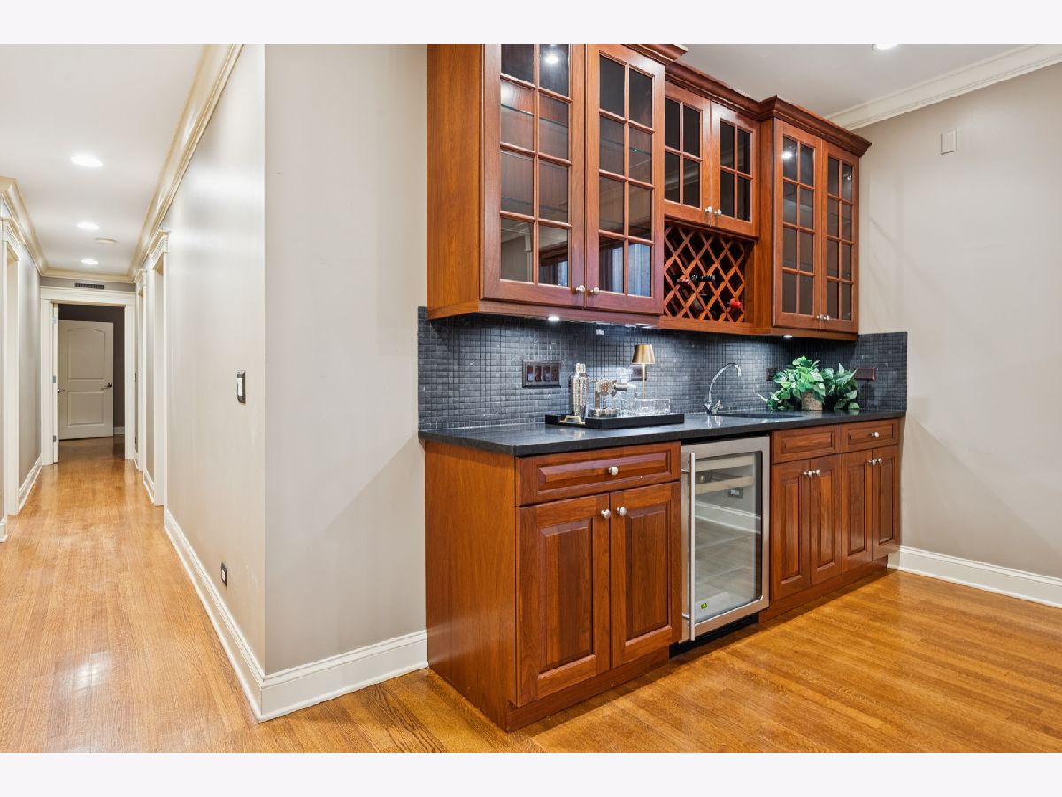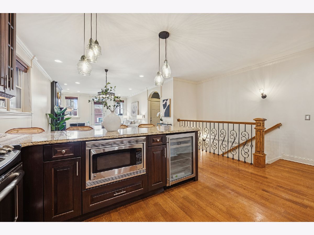Just one block from Lake Michigan, this impeccably constructed 2,200+ sq ft duplex-down delivers exceptional craftsmanship, timeless materials, and thoughtful design throughout. This meticulously maintained all brick home offers three spacious bedrooms, two and a half baths, and an attached garage - an uncommon and desirable feature. From the moment you enter the welcoming arched foyer featuring a coat-closet cabinet and marble bench, the quality of the condo is unmistakable. The beautifully updated kitchen is designed for both daily living and entertaining, featuring expansive granite countertops, premium stainless steel appliances, a wine refrigerator, plus an enormous peninsula with seating for 5+. The dining space is right off the kitchen with plenty of room for a full-sized dining table. The home offers two generously sized living areas, each anchored by a handsome wood fireplace. The main level fireplace has a gas starter and is wood-burning, while the lower-level fireplace is gas, creating warmth and character on both levels. The lower level family room includes a full wet bar with a second wine/beverage fridge and custom cabinetry, making it perfect for hosting. The main level oversized primary suite is a true retreat, complete with a custom walk-in closet and a luxurious stone bath featuring a walk-in steam shower with six body sprays, a large granite double vanity, and abundant built-in storage. The additional two lower level bedrooms are king-sized and feature walk-in closets. Outside, enjoy a private front porch overlooking a fully fenced-in front yard, perfect for grilling or relaxing on warm days. Rich hardwood floors, substantial millwork, wood blinds on all windows, custom lighting, and great storage throughout speak to the superior construction and the builder's attention to detail, all designed with real living in mind. The beautifully maintained, all-brick complex reflects pride of ownership with an excellent, proactive HOA, while the location offers easy access to restaurants, retail, public transportation, and the lakefront. This is a rare opportunity to own a solidly built, thoughtfully designed home where quality construction meets comfort, space, and an unbeatable location.
