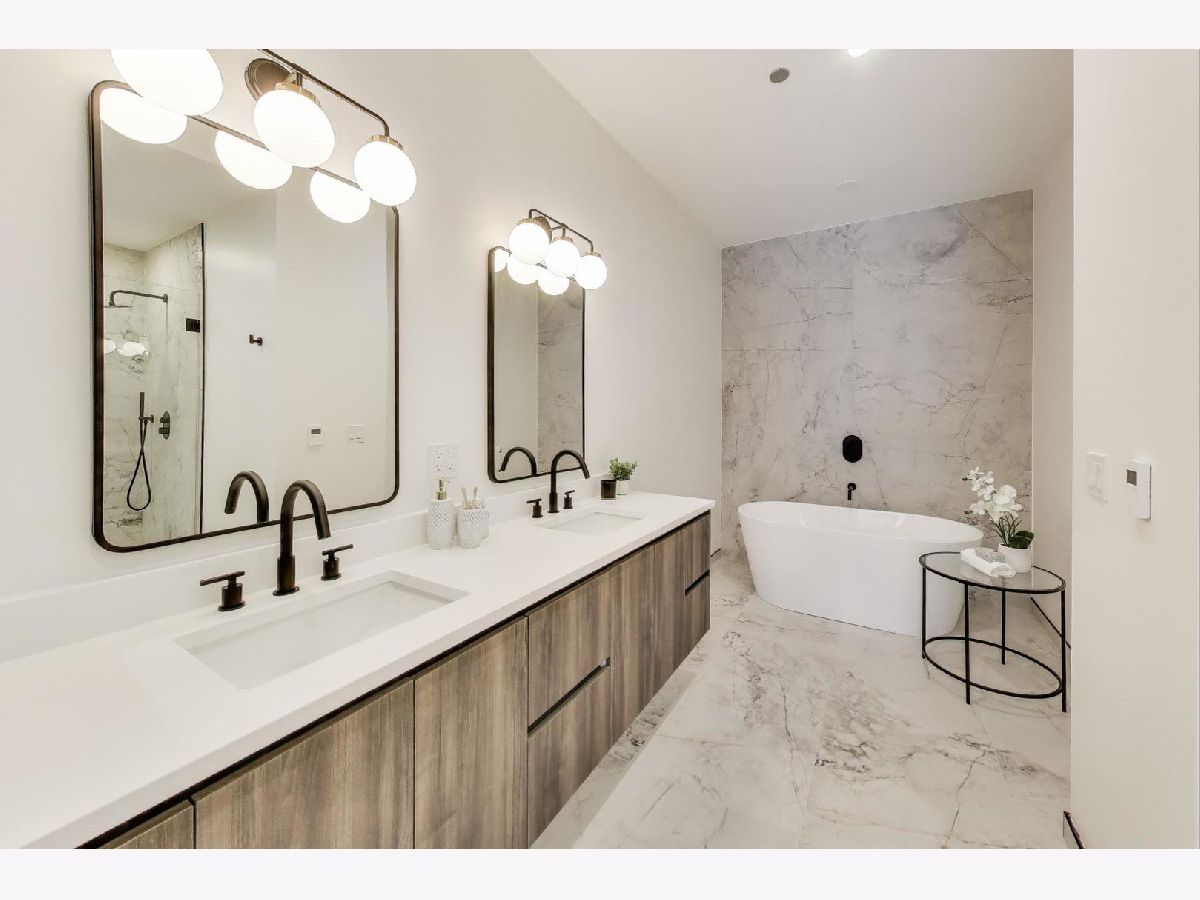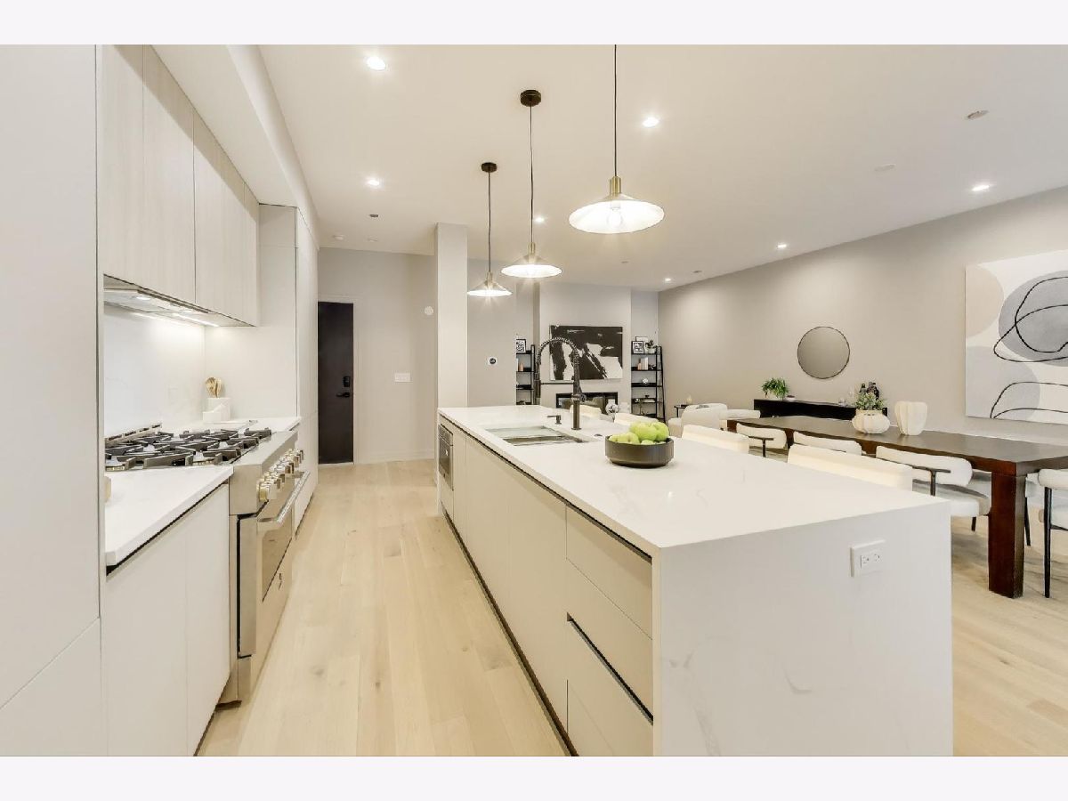Final unit available in this awesome new construction development! This is contemporary living at its finest, offering an expansive garage rooftop deck (1,500sqft+) directly accessible from the living room. A state-of-the-art designer kitchen featuring a generous eat-in island, custom Scavolini cabinetry, integrated modern appliances, and premium quartz countertops. With white oak hardwood floors and over-sized European tilt windows, sunlight permeates every corner of the space. Bathrooms feature custom vanities, designer selected light fixtures and beautiful modern tiles. The master bathroom goes above and beyond, with radiant heated flooring, a spacious spa-inspired walk-in rain shower, double vanity sink and a separate large freestanding soaker tub. Equipped with a high-efficiency furnace, smart thermostat, and in-unit laundry. As a finishing touch, each unit includes one heated garage parking space. While it's considered a West Town location, Ogden Haus is ideally situated near West Loop, River West and Fulton Market. Each of which has their neighborhood charm and contributes to the city experience with shopping, dining, nightlife and much more! Please note, roofdeck photos are rendering illustrations.