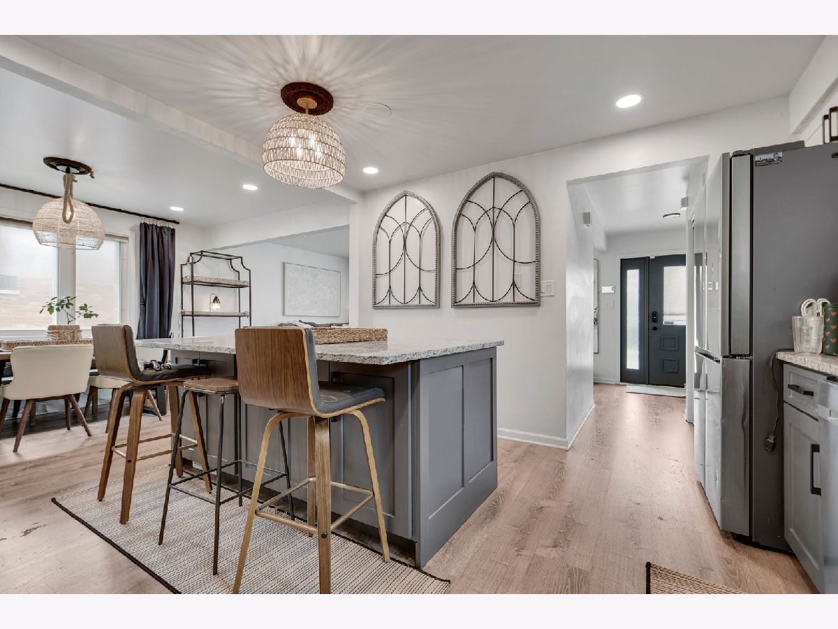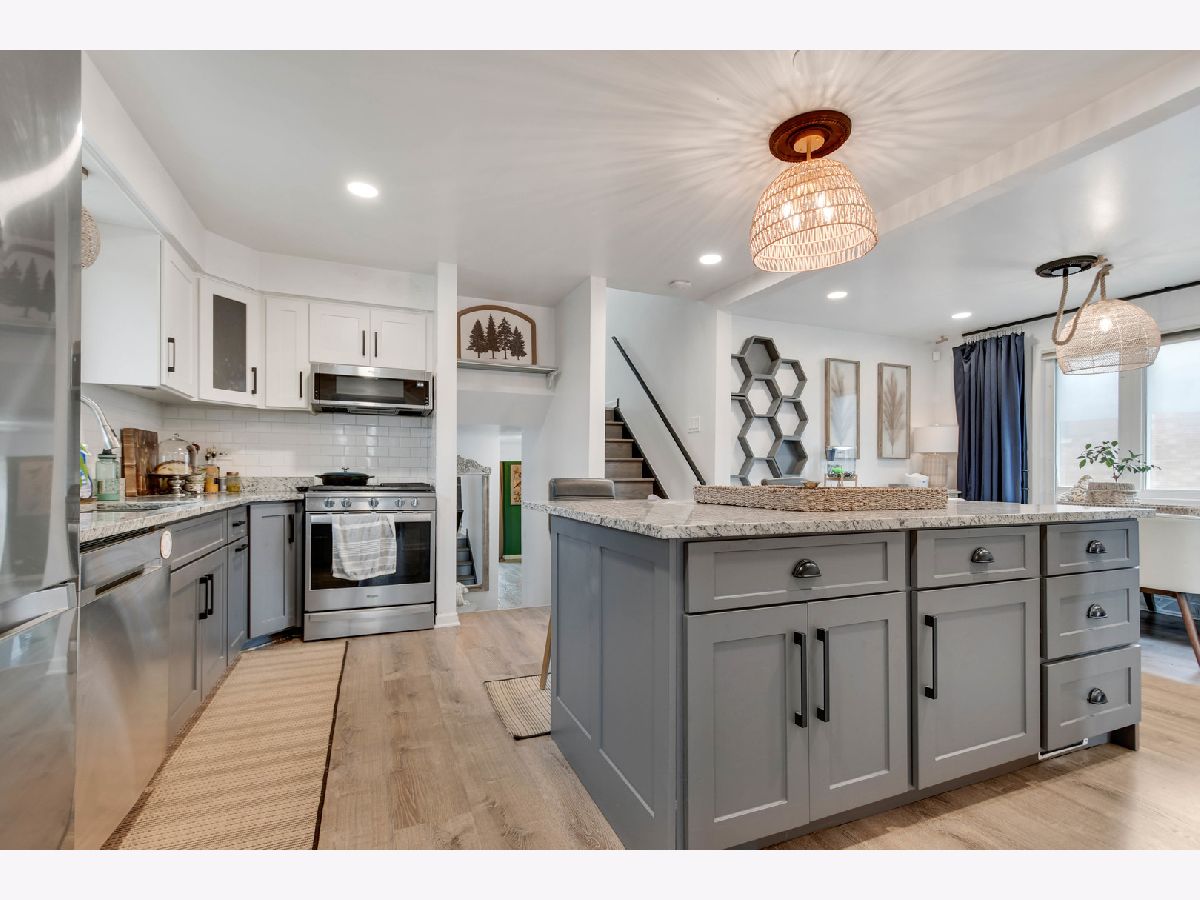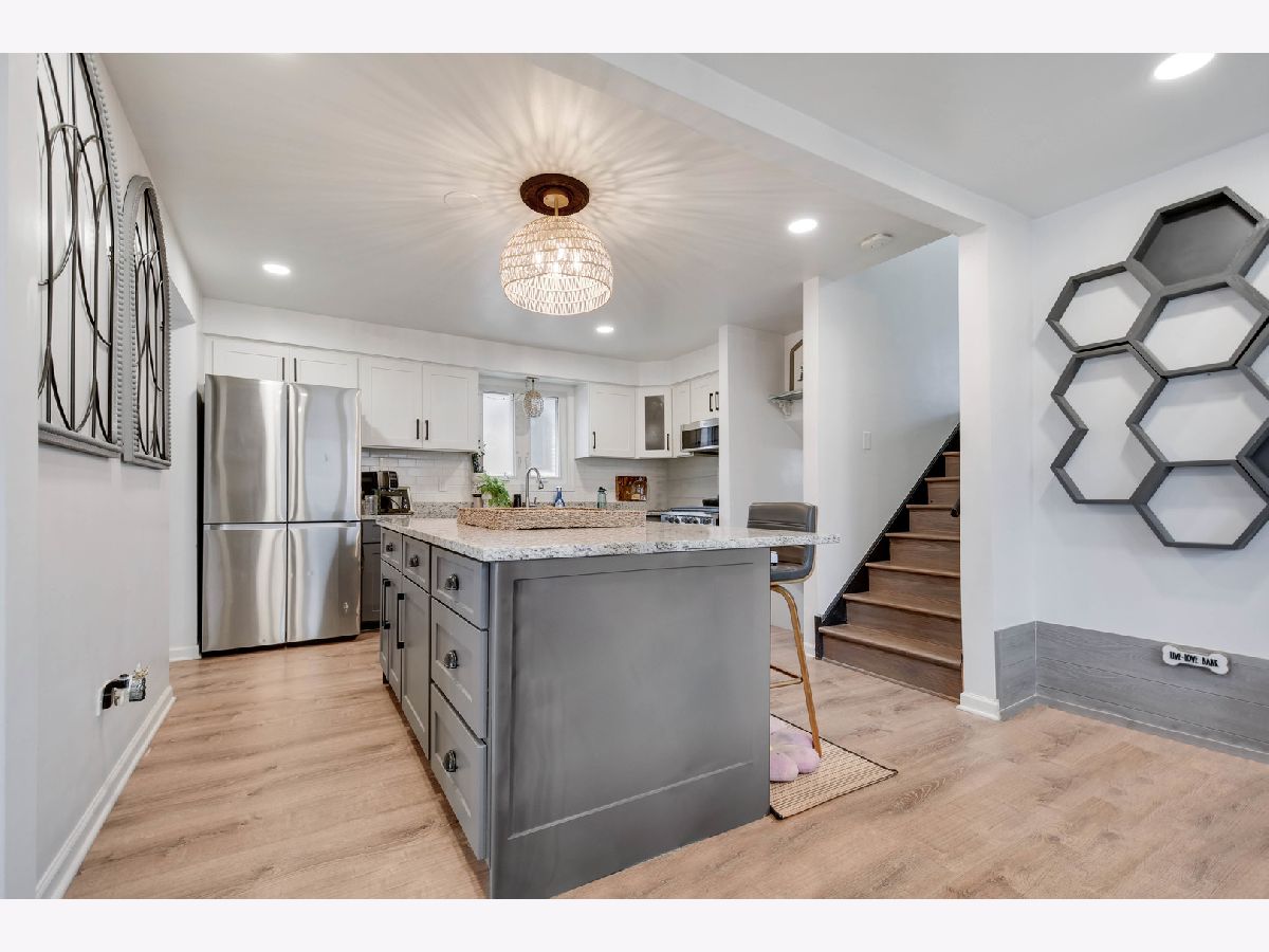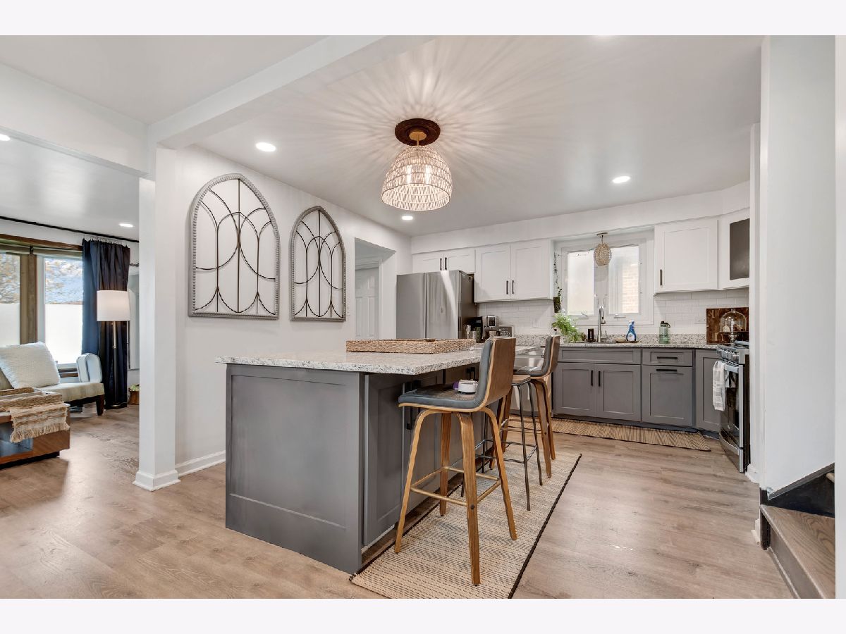 Superlatives abound when describing this eye-catching, built in 1986 and recently remodeled split-level with subbasement set on an oversized lot with a side driveway, ready for you to move in and call home. From the moment you arrive, you'll be drawn in by its inviting exterior, highlighted by a large bay window and recently completed professional landscaping. Step inside to a graciously welcoming living and dining room combination featuring luxury vinyl flooring that flows seamlessly into a beautifully remodeled, well-appointed kitchen with an abundance of two-toned modern gray and white soft-close cabinets, granite countertops, a large island with breakfast bar, and stainless steel appliances including a dishwasher, built-in microwave, smart stove, and refrigerator. From here, take the newly constructed wooden staircases up to three comfortable bedrooms and a full bathroom, or head down to the ground-level family room featuring a fireplace, a convenient second remodeled bathroom, and direct access to a fantastic professionally redesigned fenced backyard with two peach and cherry trees, a covered patio, and a gazebo, ideal for relaxing and outdoor entertaining.The unfinished sub-basement offers excellent storage or the potential for additional indoor living space. Additional updates completed between 2020 and 2021 include recessed lighting throughout the main level, updated light fixtures, a newer furnace, central air, tankless water heater, and smart thermostat. All windows and exterior doors are scheduled to be replaced through the Midway Sound Insulation Program. Ideally located for commuters within a short walk to the Orange Line and just minutes from Midway Airport. Easy to see and to buy, so schedule your viewing before this rare opportunity is gone.