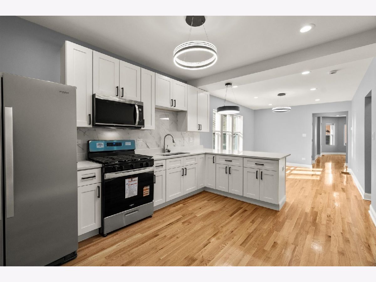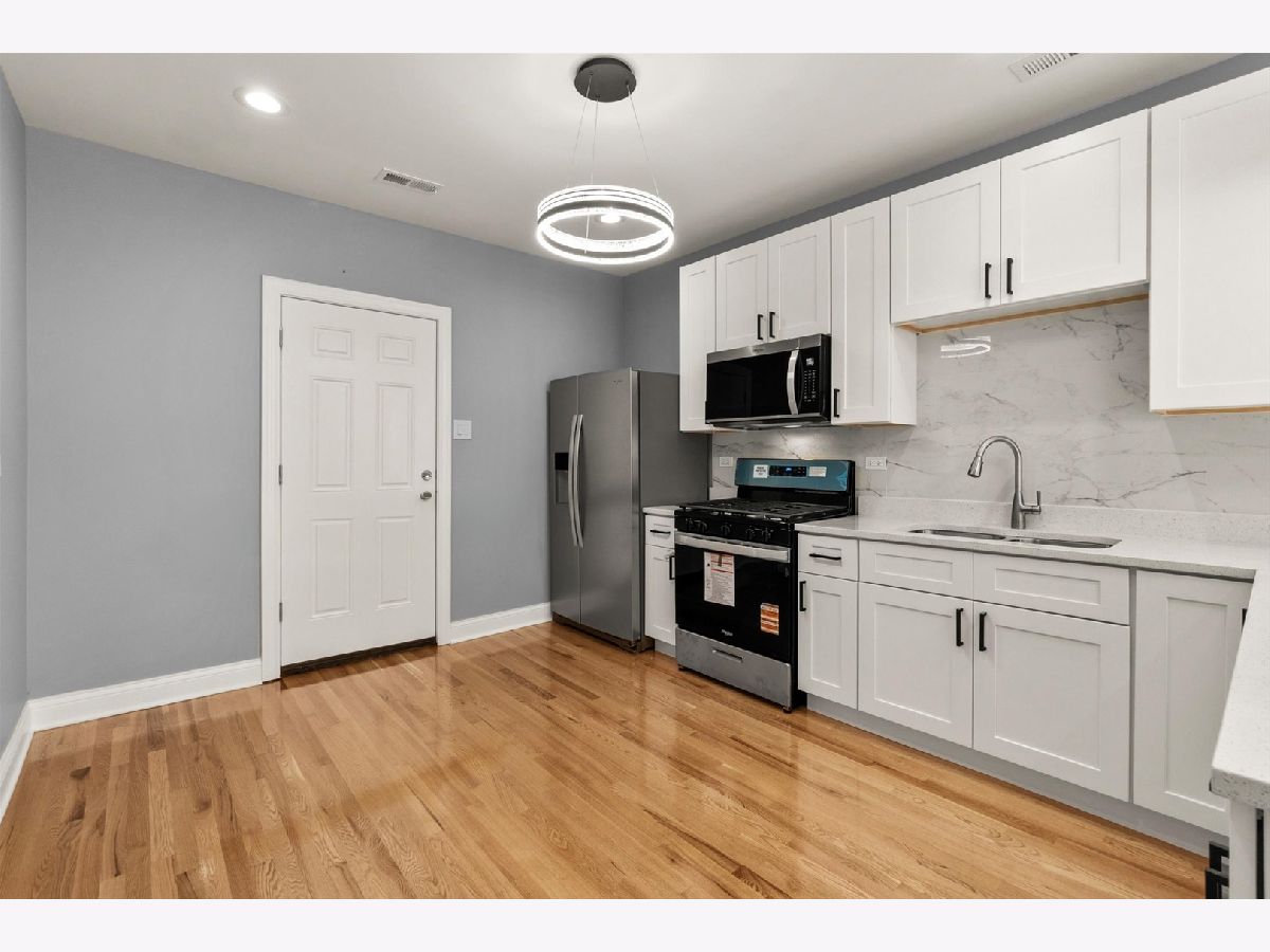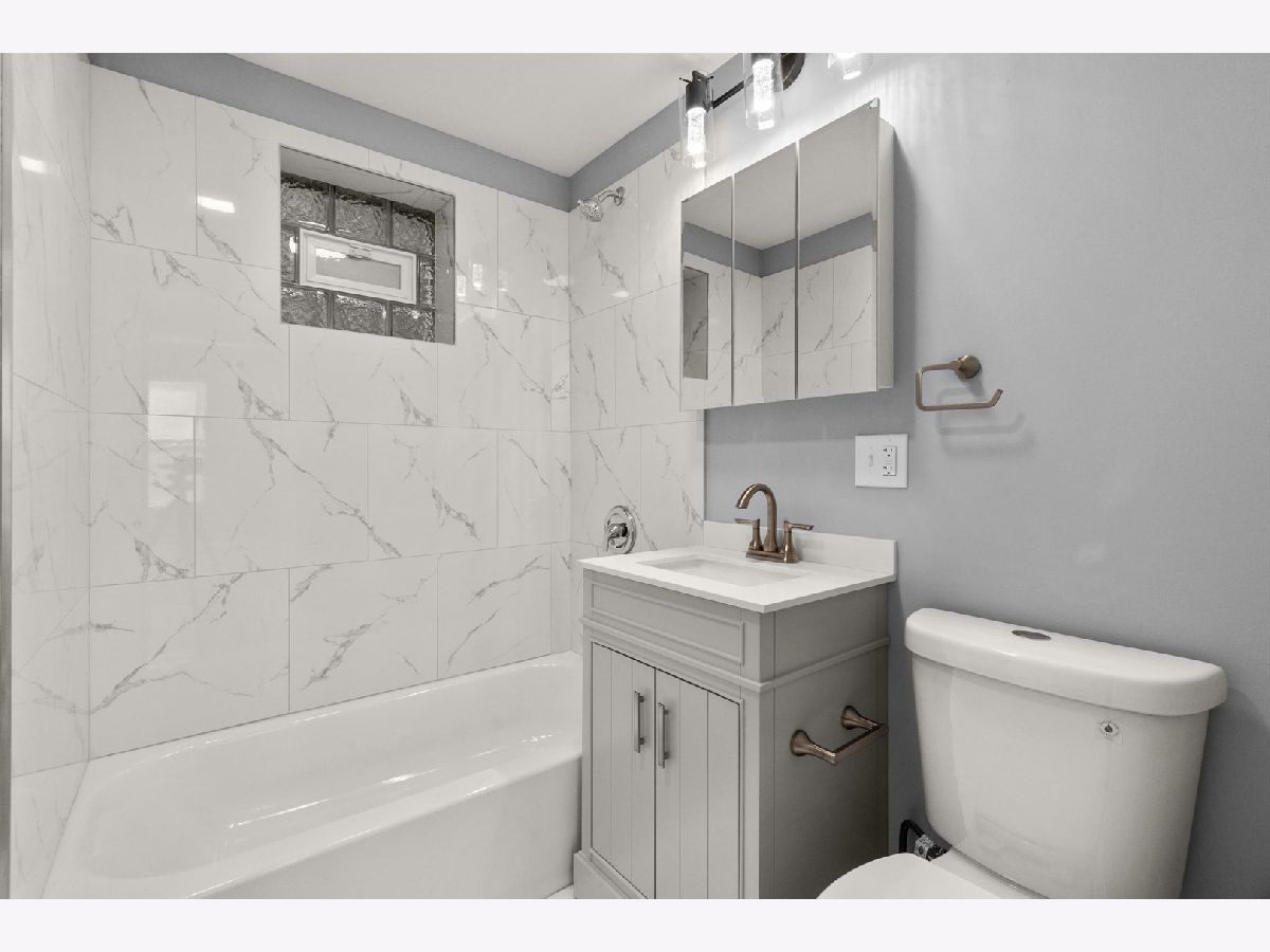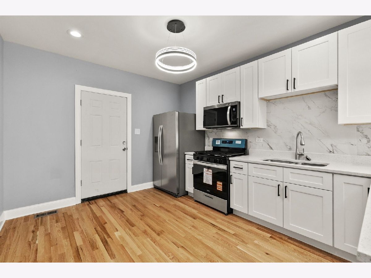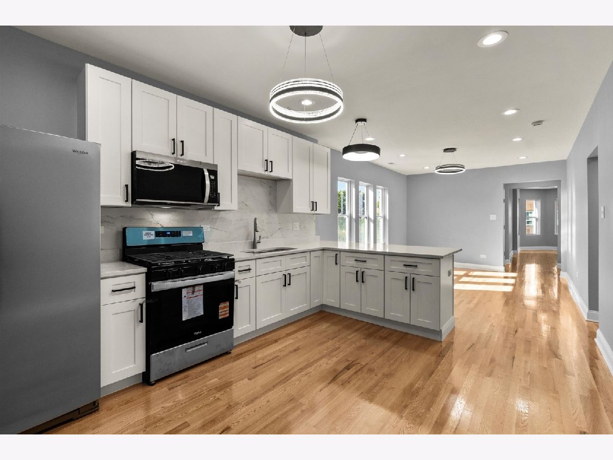 Beautiful 2-flat completely renovated with a full partially finished basement. All the following items are new: Plumbing system, electrical system, HVAC system, windows, drywall, light fixtures, doors, kitchen cabinets with quartz countertops, concrete sidewalks, garage slab, wooden fence, vinyl siding at rear porch. Refinished hardwood flooring. Located on a quiet cul-de-sac street. Across the street from an elementary school and walking distance to the park.