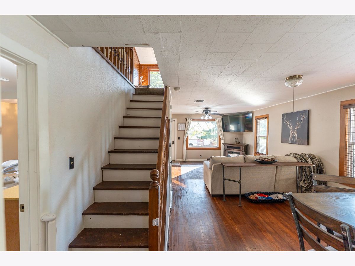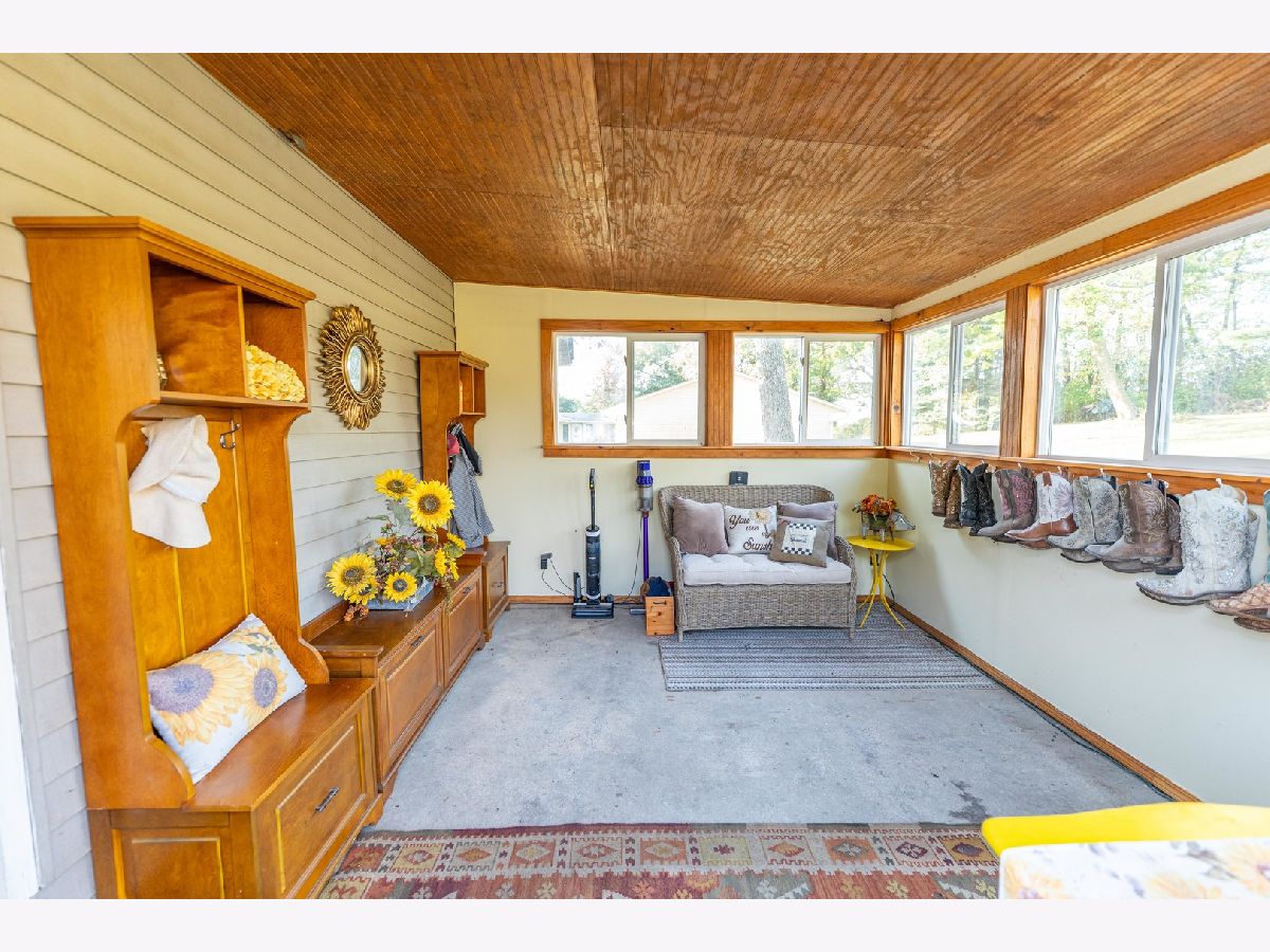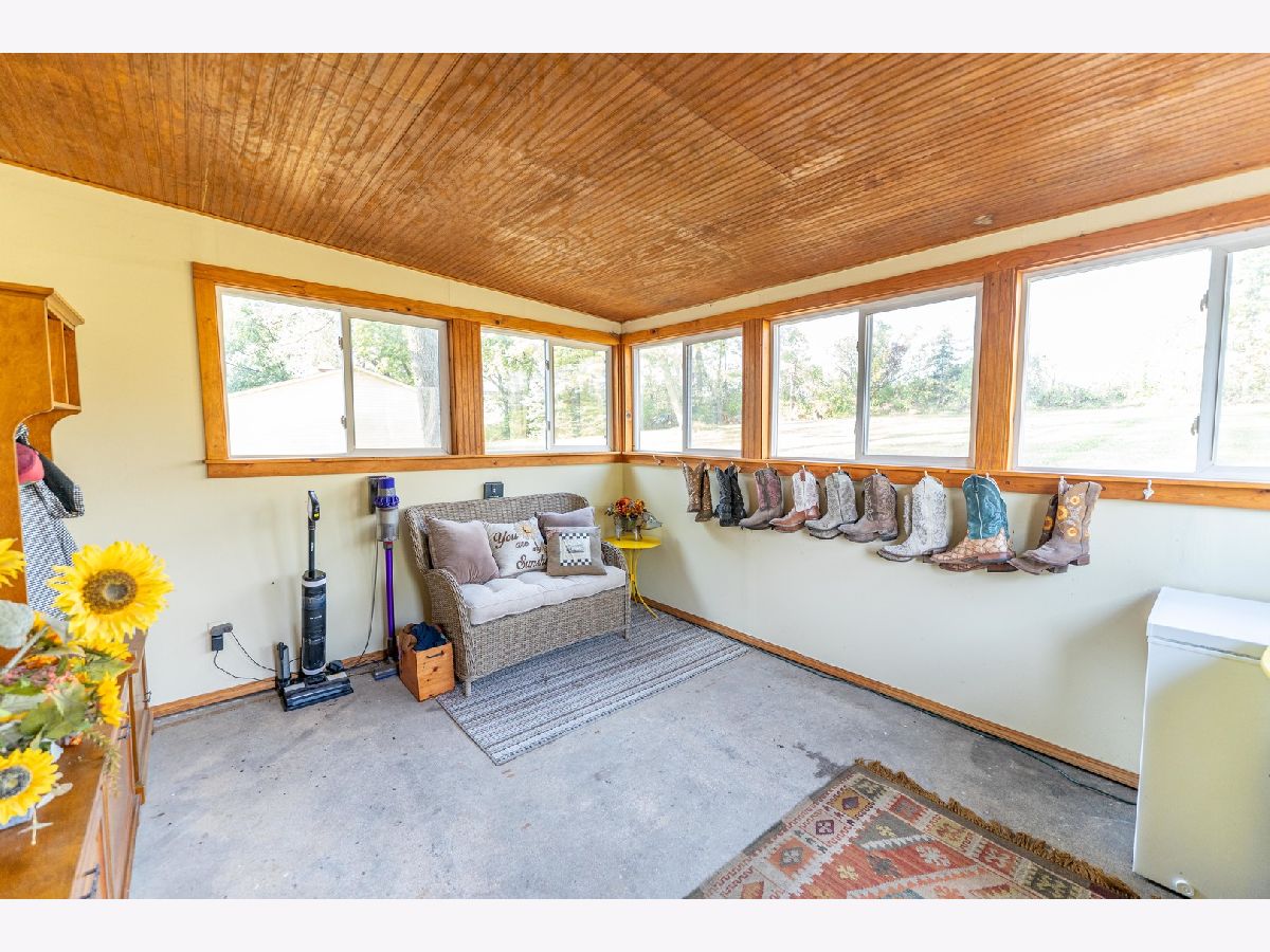 This 2.17-acre property in Winnebago County outside of Cherry Valley offers wide open country views in every direction with a peaceful setting surrounded by timber and agricultural fields. As you pull up to the home, the large front deck sets the tone and gives you a great place to relax, sit outside, grill, or simply enjoy the views and open space that comes with living in the country. When you step inside, you enter through a mudroom area that works well for boots, jackets, and everyday in-and-out living. The eat-in kitchen features stainless steel appliances, plenty of cabinet space, and a cozy breakfast area that feels warm and comfortable. From there, you move into a larger family room and dining space that works great for gatherings, or the layout could easily transition into one oversized family room if desired, and this room offers direct access out to the deck as well. The main floor includes one bedroom, a large full bathroom with a walk-in shower, and a separate laundry room, which keeps day-to-day living convenient. Upstairs, you will find the large master bedroom that also has a separate space being used as a walk-in closet, but could be reworked to create an additional bedroom if needed. The basement is unfinished but clean and works well for storage or future expansion. Outside the property includes a two-car detached garage, an additional outbuilding, and a chicken coop for those who enjoy the homestead lifestyle. Even with the quiet setting, you are still close to Rockford, multiple forest preserves, and there are nearby access points to the Kishwaukee River offering excellent recreational opportunities. This property gives you that country feel, room to breathe, and the ability to enjoy a little land without being too far from town.
