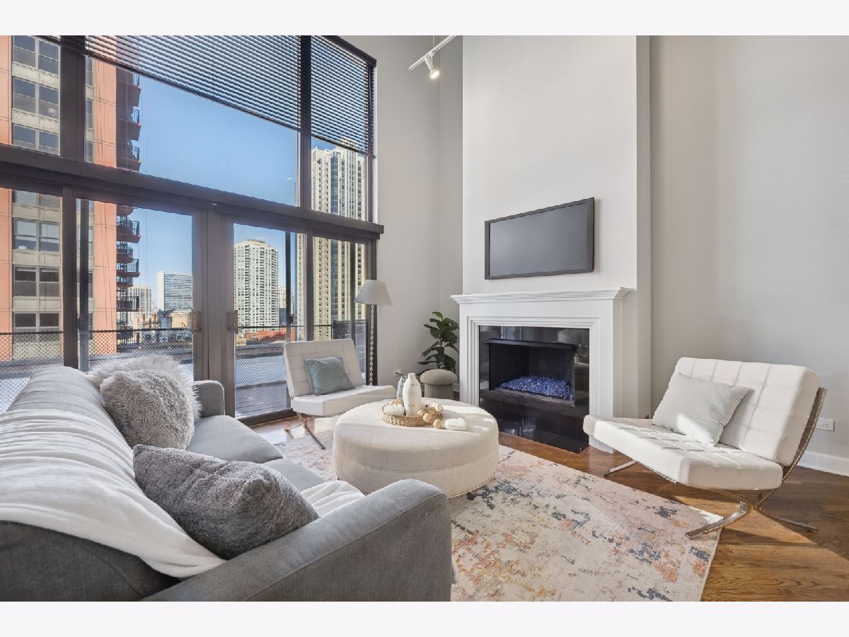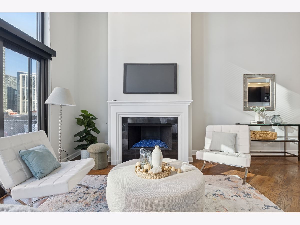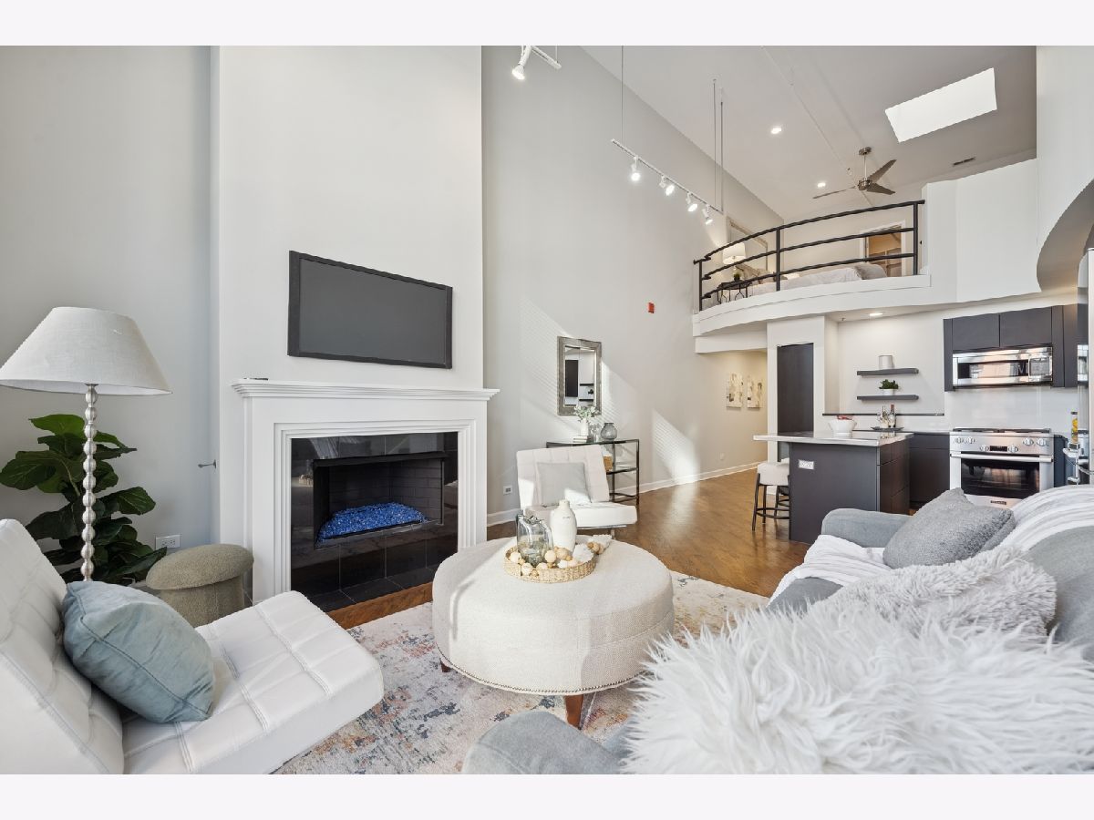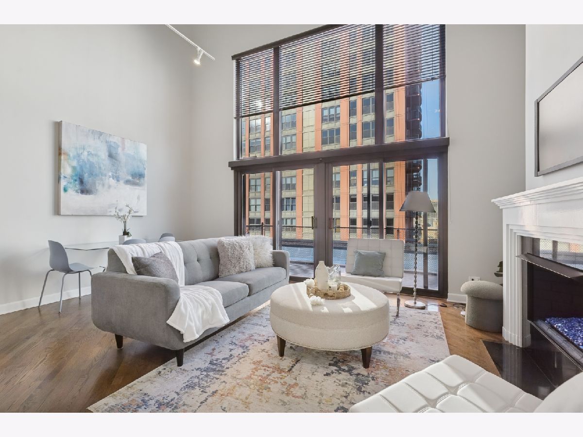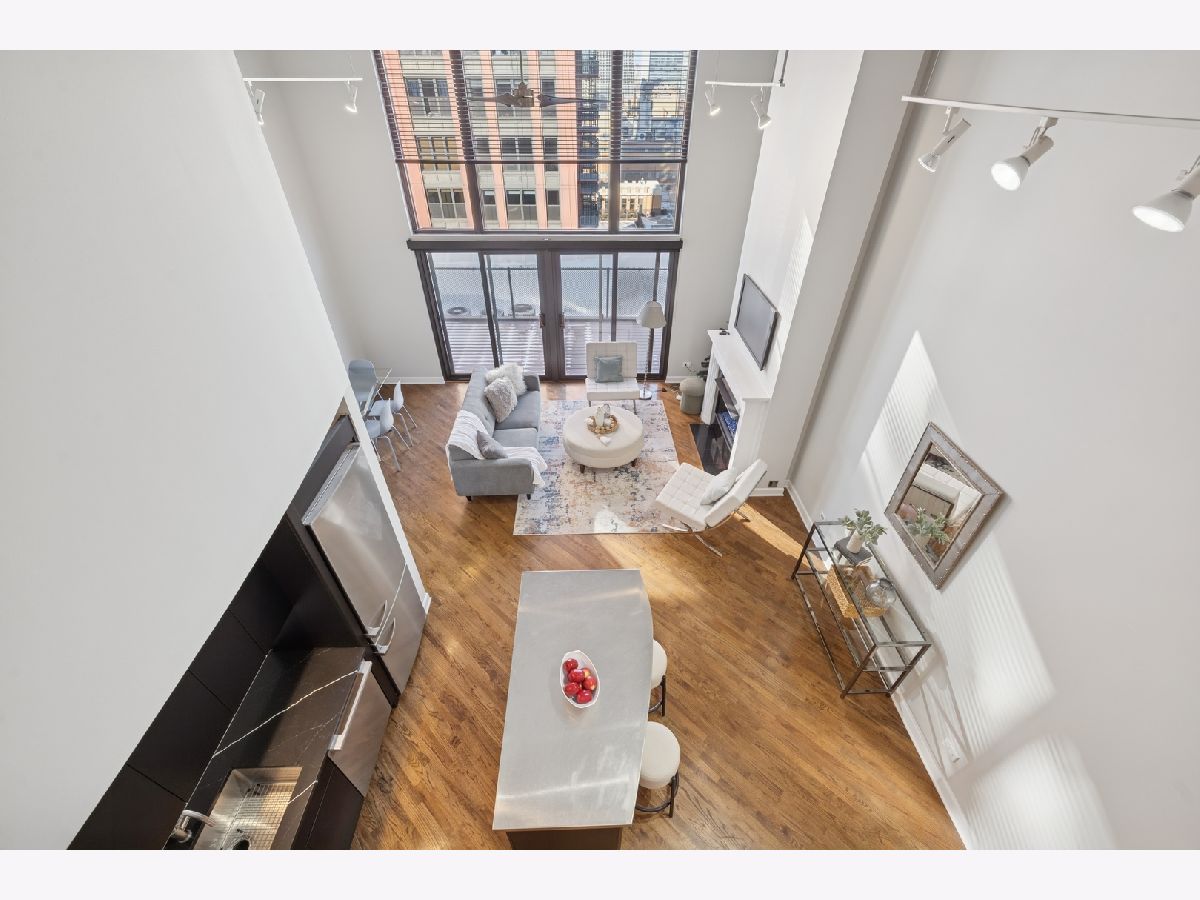 Penthouse-level duplex in the heart of Fulton Market with soaring ceilings, dramatic floor-to-ceiling windows, and skyline views from your expansive private terrace. The modern, open-concept kitchen features matte black cabinetry, a stainless steel island, premium appliances, and sleek stone countertops-ideal for entertaining or everyday living. The spacious living area includes hardwood flooring, a gas fireplace, and seamless access to the terrace for indoor-outdoor flow. Upstairs, a versatile loft with plush carpeting, skylight, and ceiling fan overlooks the main living space-perfect as a guest suite, home office, or den. The home offers two full bathrooms, including a spa-inspired upper-level bath with marble tile, jetted tub, and dual vanities. Additional highlights include a large custom walk-in closet, in-unit laundry, and excellent storage throughout. This property epitomizes a sophisticated urban lifestyle, steps away from the award-winning restaurant Row, the river walk, the Loop, and the renowned East Bank Club. Take advantage of this unparalleled opportunity to make your home in one of Chicago's most sought-after neighborhoods. A deeded garage parking is available for an additional $30K.