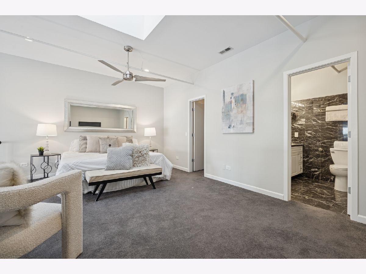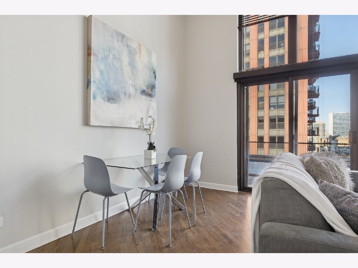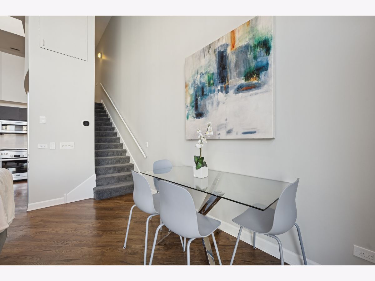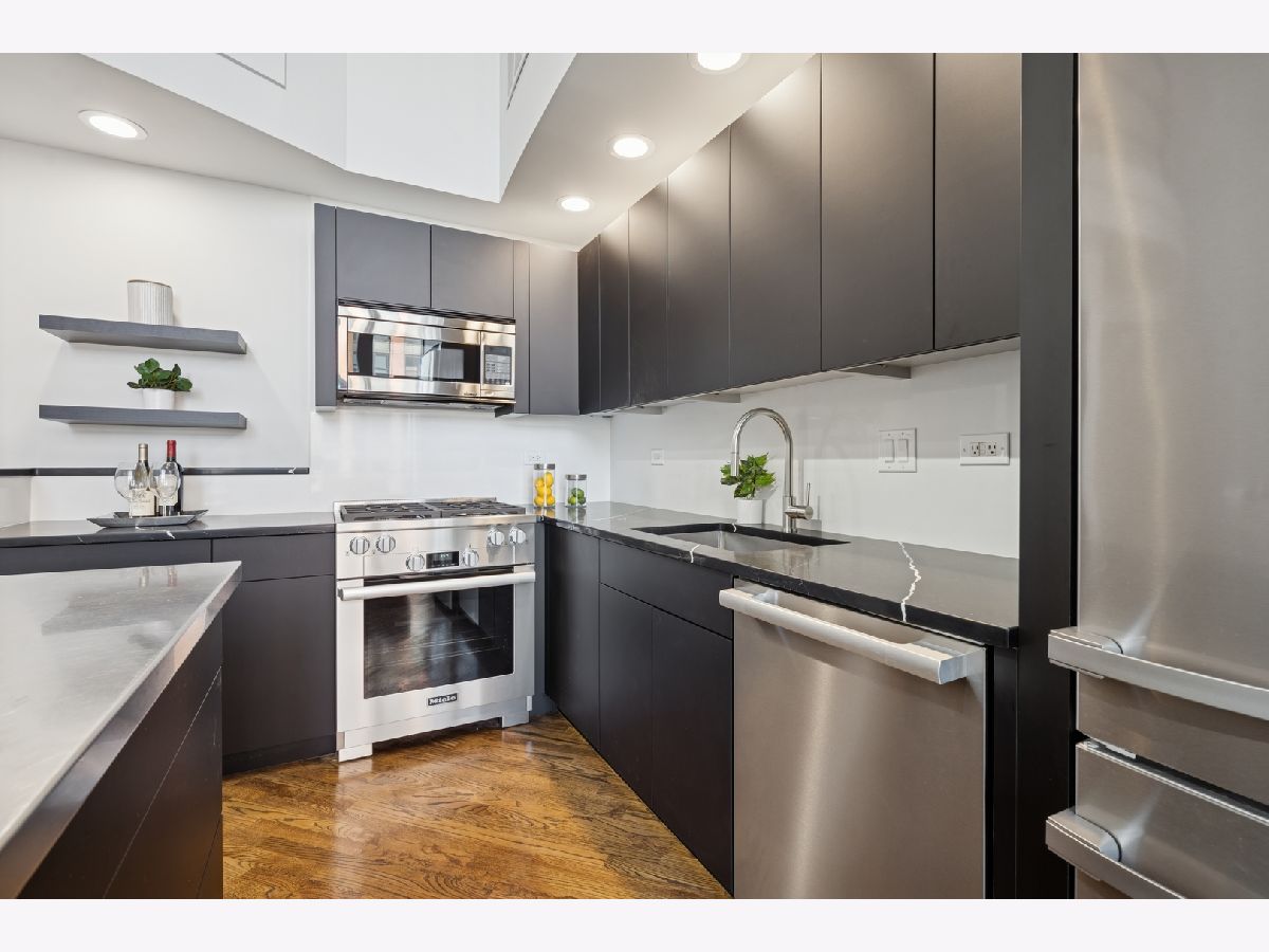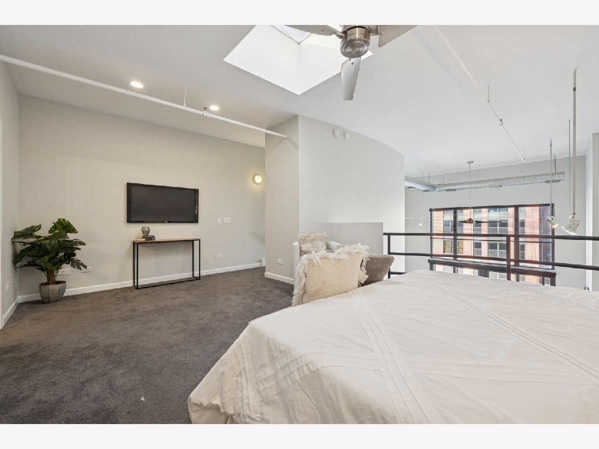 Penthouse-level duplex in the heart of Fulton Market with soaring ceilings, dramatic floor-to-ceiling windows, and skyline views from your expansive private terrace. The modern, open-concept kitchen features matte black cabinetry, a stainless steel island, premium appliances, and sleek stone countertops-ideal for entertaining or everyday living. The spacious living area includes hardwood flooring, a gas fireplace, and seamless access to the terrace for indoor-outdoor flow. Upstairs, a versatile loft with plush carpeting, skylight, and ceiling fan overlooks the main living space-perfect as a guest suite, home office, or den. The home offers two full bathrooms, including a spa-inspired upper-level bath with marble tile, jetted tub, and dual vanities. Additional highlights include a large custom walk-in closet, in-unit laundry, and excellent storage throughout. This property epitomizes a sophisticated urban lifestyle, steps away from the award-winning restaurant Row, the river walk, the Loop, and the renowned East Bank Club. Take advantage of this unparalleled opportunity to make your home in one of Chicago's most sought-after neighborhoods. A deeded garage parking is available for an additional $30K.