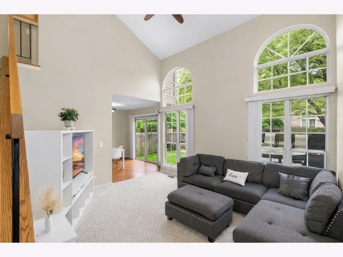 Welcome home to this beautifully updated 3-bedroom, 2.5-bath townhome featuring a wide-open floor plan, 2-car garage, and private fenced-in rear yard, ideally located in the highly sought-after newer side of the Weathersfield North subdivision, in the heart of Schaumburg! Inside, the inviting entryway opens to a stunning two-story living room with dramatic vaulted ceilings and a breathtaking wall of windows that fills the space with warm natural light. The light and bright kitchen features loads of cabinet space, new countertops, stainless-steel appliances, and a convenient pantry for added storage. The adjacent formal dining room includes sliding glass doors that lead directly to the private fenced in outdoor living space-perfect for relaxing or entertaining. A convenient main-level laundry room with additional storage and a powder room complete the first floor. Upstairs, the generous primary suite serves as a private retreat with its own en-suite bath featuring dual sinks and a large walk-in shower. Two additional bedrooms, a full hall bath, and built-in hallway storage cabinets provide excellent flexibility and everyday functionality. New carpet and fresh paint throughout enhance the move-in-ready appeal, while a brand-new furnace offers added comfort and peace of mind. Step outside to enjoy the deck overlooking the private fenced yard, with brick pavers already installed beneath the turf should you prefer a traditional patio surface. Tucked away on a quiet cul-de-sac just steps from the pool and clubhouse, this prime location offers convenient access to Woodfield Mall, major interstates, O'Hare Airport, and some of the area's best shopping and dining. This home offers an exceptional blend of space, natural light, comfort, and location in one of Schaumburg's most desirable communities.