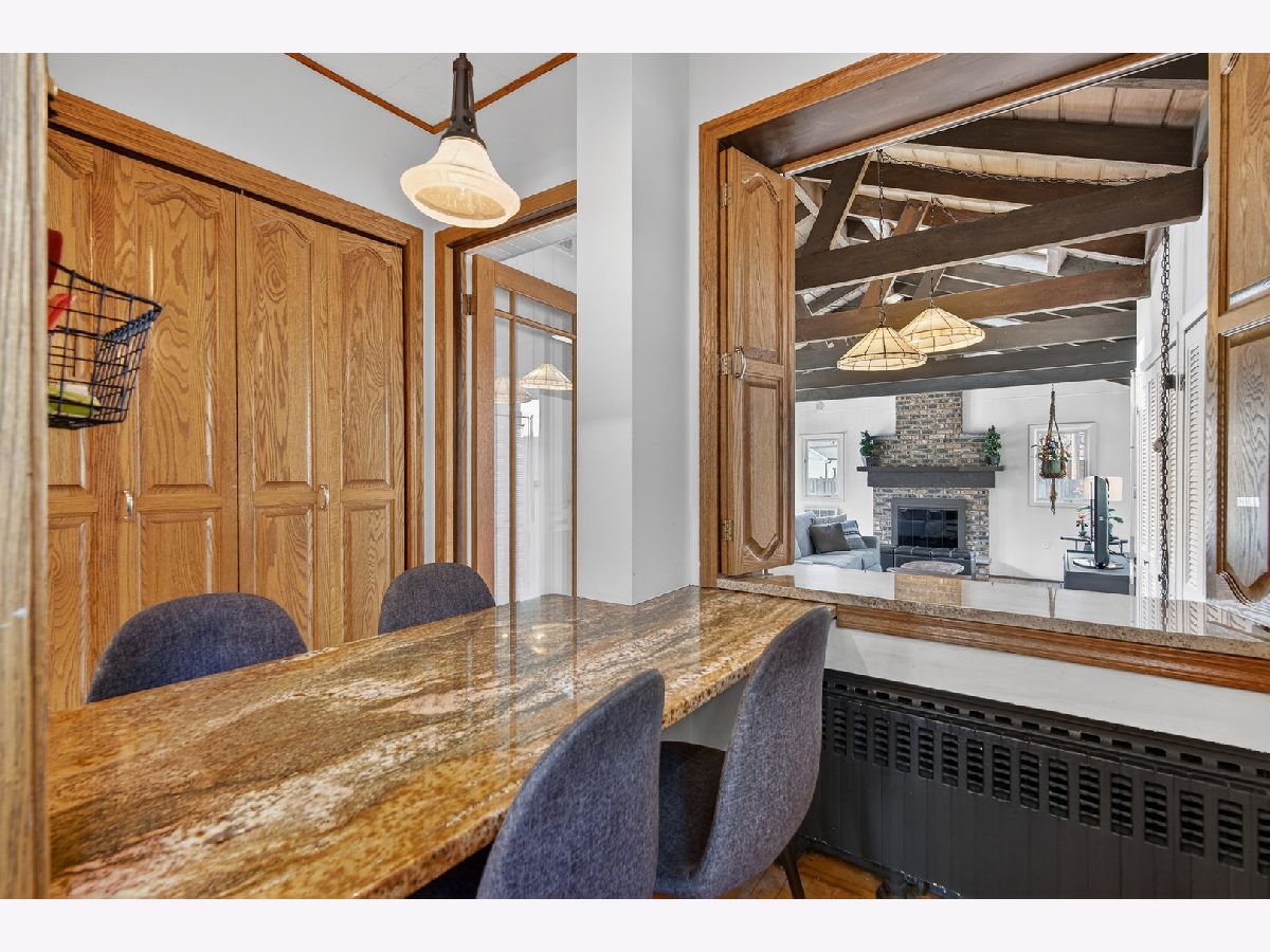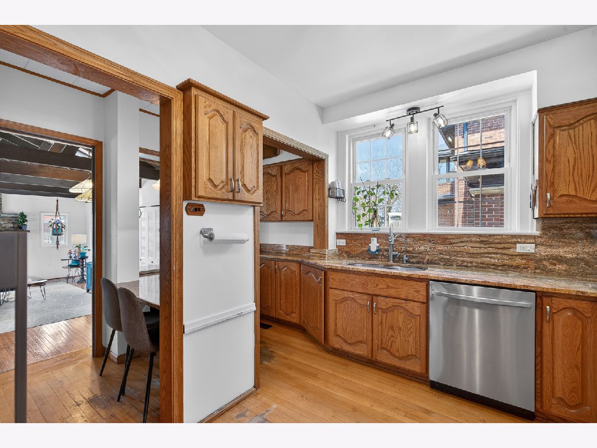 Classic charm meets modern comfort in this beautifully maintained 3-bedroom, 1.5-bath all brick Georgian Revival. A light and bright entryway welcomes you in, flanked by formal living and dining rooms. The inviting living room features a wood burning fireplace and flows seamlessly into a sunroom. The formal dining room connects to a well-appointed kitchen with table space and stainless steel appliances. The spacious family room is a standout, featuring a gas fireplace, vaulted beamed ceiling, and skylights that fill the space with natural light. There is also a convenient half bath for guests. Upstairs, you'll find all three bedrooms, including the primary bedroom with dual closets, a cozy window seat, and a private balcony Two additional generously sized bedrooms and an updated hall bath with a soaking tub complete the main level. The unfinished basement offers great storage and a laundry area with sink, ready for your finishing touches. Step outside to a huge fenced backyard featuring a patio and fire pit and access to the 2 car detached garage. Unbeatable location just blocks to Whole Foods, Austin Gardens, the Oak Park Metra station, and with easy access to I-290 and the Green & Blue Lines. Zoned to highly rated Oak Park & River Forest High School. This is the perfect place to start your next chapter.