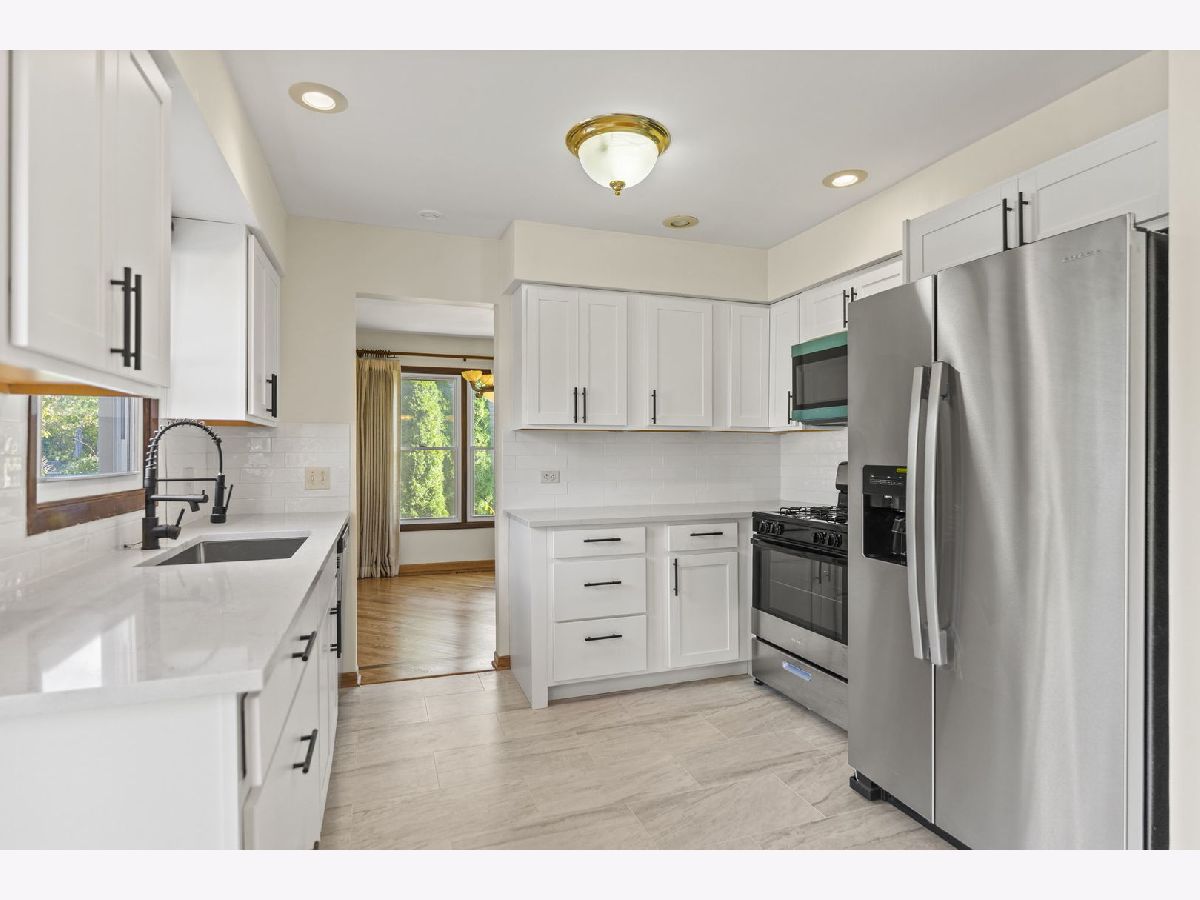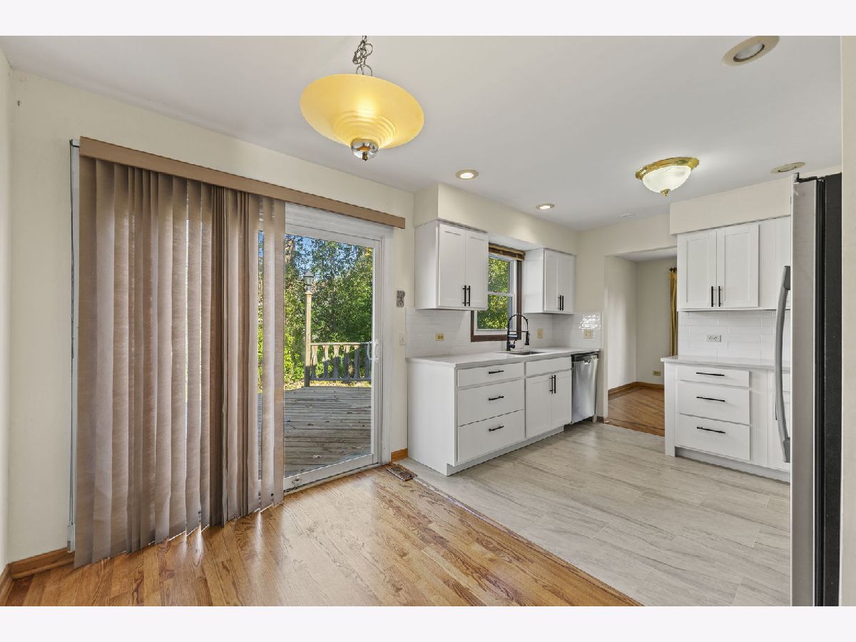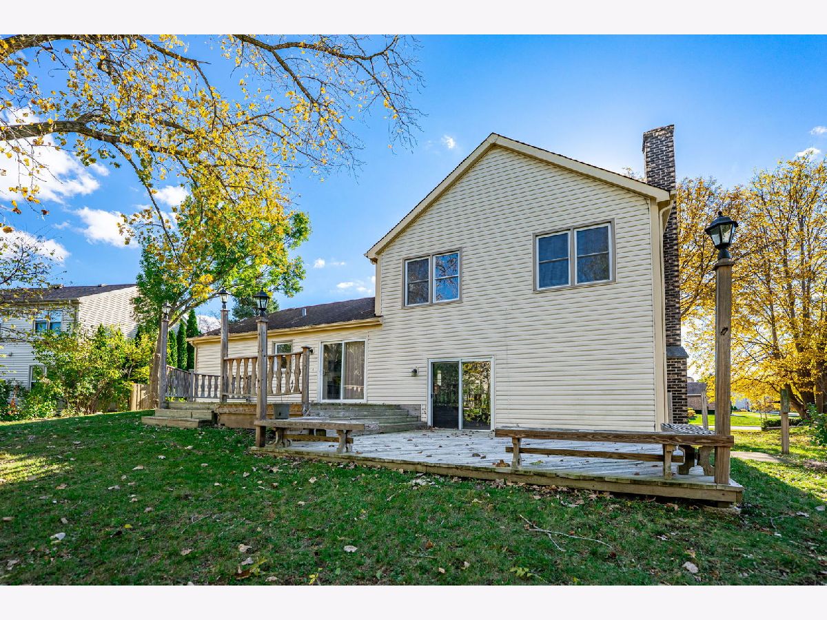 Welcome home to this charming property in the prestigious Stevenson High School District, located in the highly desirable Highland Grove Development. Featuring hardwood floors throughout and new energy-efficient windows that bring in plenty of natural light, this home has great bones and solid potential. The spacious floor plan includes a large living room, formal dining room, and family room with a cozy gas fireplace. Sliding doors from the family room open to an expansive deck - perfect for outdoor dining, entertaining guests, or relaxing on cool evenings. The newly remodeled kitchen is a standout feature, offering stainless steel appliances, elegant quartz countertops, custom cabinetry, and ceramic flooring. The eat-in kitchen offers convenient sliding door access directly to the deck, making indoor-outdoor entertaining effortless. All three bedrooms have been freshly painted, offering a clean and updated feel. The primary suite features a recently refreshed dressing area and updated vanity. Major mechanicals are already handled with a new furnace and hot water heater - giving buyers peace of mind from day one. The property includes a 2-car attached garage and a generously sized yard, with a great location offering easy walking distance to parks, all schools, the Metra station, shopping, and restaurants - plus convenient access to major highways and O'Hare Airport. Sold as-is. Schedule your showing today!
