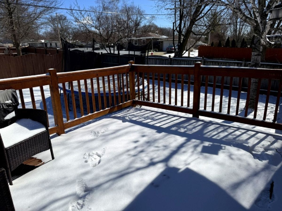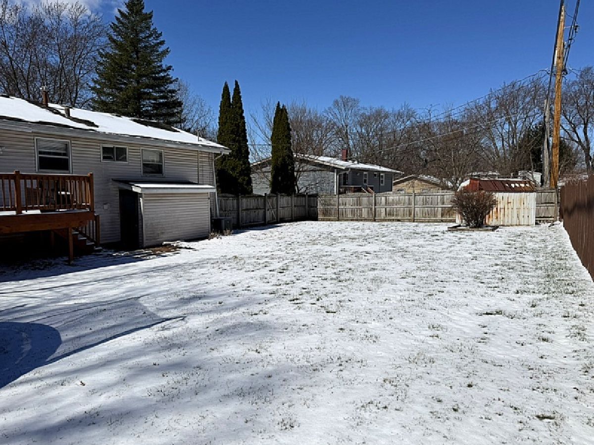 Quiet Neighborhood. Across from a huge open park that backs to a wooded ravine and creek bed. Favorite "play woods"! Deck opens from eating area and overlooks the 100 ft wide privacy fenced back yard. Practical shed (would love some paint :). Trampoline with safety sides stays. Wall removed and kitchen totally remodeled - SS appliances. Cabinetry includes an eating counter with deep drawers for great storage. Also, a pantry cabinet. These improvements bring light to the kitchen and open up the Dining Area. LR is ready for your dream sectional couch! ENTIRE HOME FEATURES HANDSOME WOODGRAIN VINYL FLOORING! Furnace and AC in 2022. Garage door and water heater in 2025. 3 BRs up and LL could be a family room with an office or play/game area in the back half. Was used as a bedroom for an older child. Laundry and half bath. Garage opens from LL and has a door to the back yard and patio. Convenient location to schools, library and town. Quick close is available.