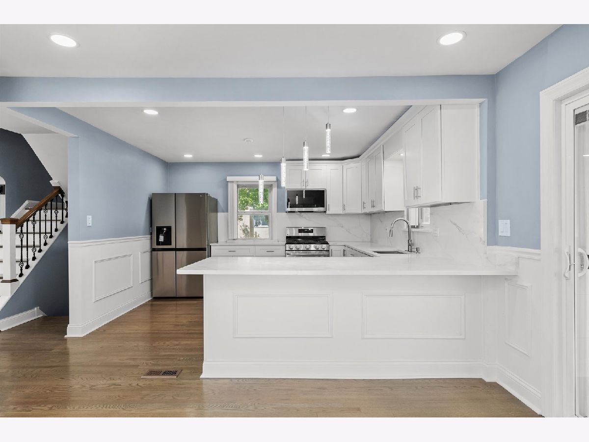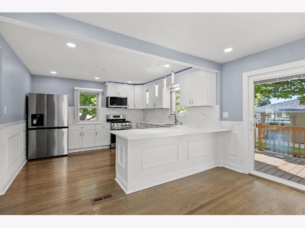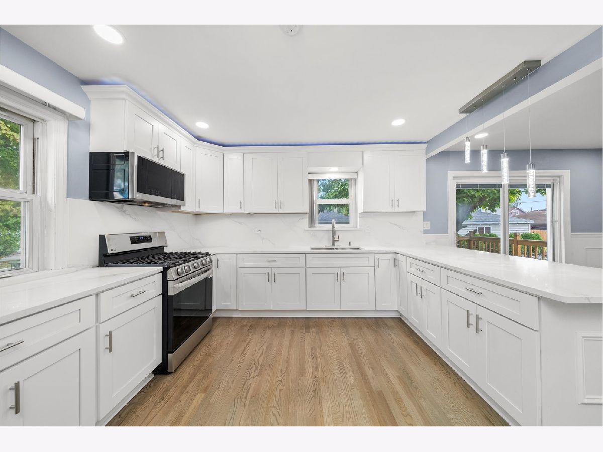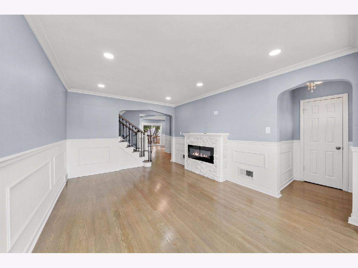 THIS GORGEOUS BRICK, CAPE COD SITS ON AN OVERSIZED CHICAGO CORNER LOT IN THE PRESTIGIOUS CLEARING NEIGHBORHOOD. FLAWLESSLY DESIGNED TO ANCHOR THE ENTRYWAY WITH TIMELESS CHARM AND MODERN APPEAL. THE GUESTS ARE GREETED WITH RICH HARDWOOD FLOORING, STRIKING WAINSCOATING WITH BUILT-IN ELECTRIC FIREPLACE, RECESSED LIGHTING, AND ELEGANT SPLIT STAIRCASE WITH WHITE RISERS, RICH WOODEN TREADS, AND BLACK METAL BALUSTERS! THE ENHANCED FUNCTIONALITY LEADS TO THE CHEF'S KITCHEN OFFERING WHITE SHAKER CABINETS, GRANITE COUNTERTOPS WITH BREAKFAST BAR AREA, STAINLESS STEEL APPLIANCES, OVER AND UNDERMOUNTED CABINET LIGHTING, AND SLICK WHITE MARBLE-STYLE BACKSPLASH! FORMAL DINING ROOM INVITES GATHERINGS WITH ITS SPACIOUS LAYOUT AND SEAMLESS FLOW WITH OVERSIZED PATIO ACCESS DOORS THAT OPEN EFFORTLESSLY ONTO A SPACIOUS WOODEN DECK. 2ND FLOOR SANCTUARY OFFERS TWO COZY BEDROOMS WITH SKYLIGHTS, NEW WOOD LAMINATE FLOORING, AND A FULL BATH WITH SOAKING TUB AND BLUETOOTH TECHNOLOGY. FULL FINISHED BASEMENT IS A JAW DROPPER! EQUIPPED TO HANDLE THE EXTENDED FAMILY, THIS RETREAT HAS ALL THE BELLS AND WHISTLES OF MODERN LIVING. THE LARGE FAMILY ROOM WITH CRISP WHITE WAINSCOATING CONTAINS A FULL KITCHEN WITH WHITE CABINETRY, GLASS-FRONT UPPER CABINETS, STAINLESS STEEL APPLIANCES, WALK-IN PANTRY, AND IN-UNIT LAUNDRY! TWO EXTRA PRIVATE ROOMS AND FULL BATH ARE READY FOR THE ADULT CHILDREN STILL LIVING AT HOME. THE PRIVATELY FENCED YARD SHOWS OFF THE WOODEN DECK FROM THE DINING ROOM AND THE CEMENT COVERED PATIO OFF THE GARAGE PARTY DOOR AND CEMENT CARPORT. NEW ROOFS, CEMENT WALKWAYS, PLUMBING, HIGH-EFFICIENCY BLOWN-IN INSULATION, TANKLESS WATER HEATER, AND HVAC. LOCATED WITHIN WALKING DISTANCE TO MIDWAY AIRPORT, HALE PARK, AND 63RD STREET'S SHOPPING AND RESTAURANT OPTIONS.