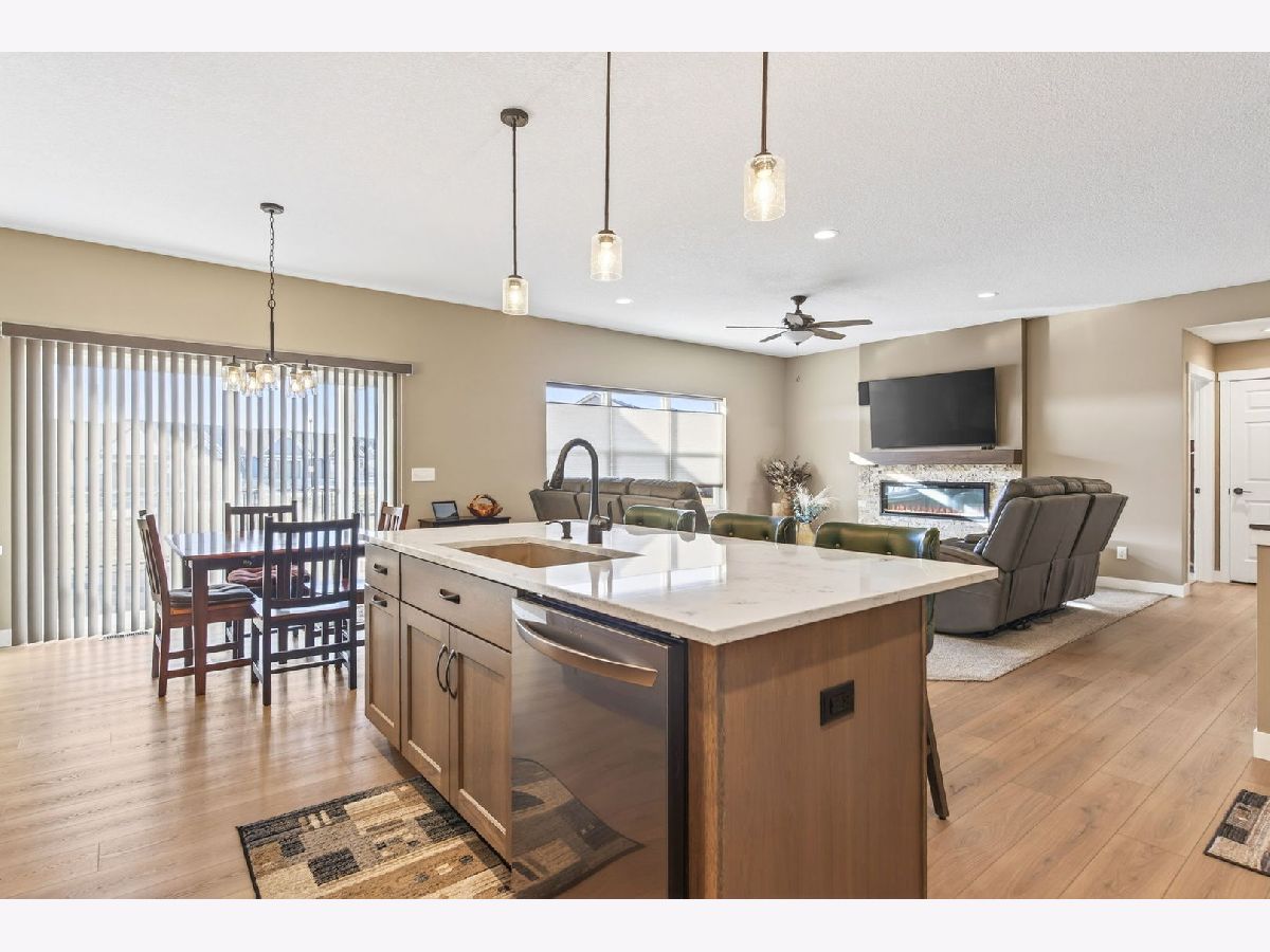 New Construction without the wait! Built by award winning Diamond Builders this 3 bedroom, 3 bathroom villa is zero entry and over 2,200 square feet finished in this open concept ranch. Beautiful kitchen with soft close cabinets, island, quartz countertops, breakfast bar, & all appliances stay. Eat in dining space. Great room with beautiful fireplace. The slider off the back leads to covered deck & partially gated patio area. Primary suite with attached full bathroom and spacious walk in closet. Convenient main level laundry just off the primary bedroom. Mud room space off the fully finished 2 car attached garage. The finished lower level offers a large rec room, 3rd bedroom, 3rd full bathroom & ample storage space! Convienient East Davenport location near walking paths, shopping, parks, interstate, and schools!