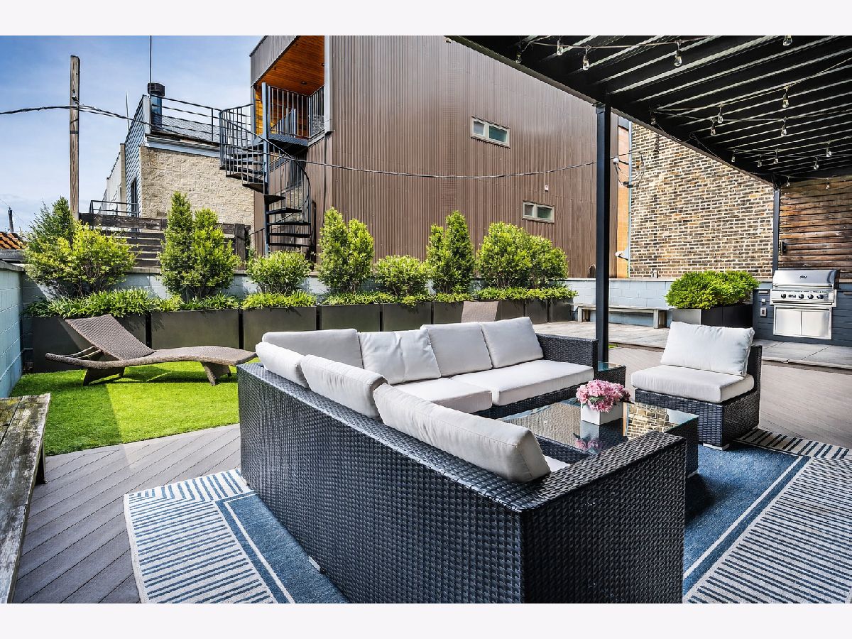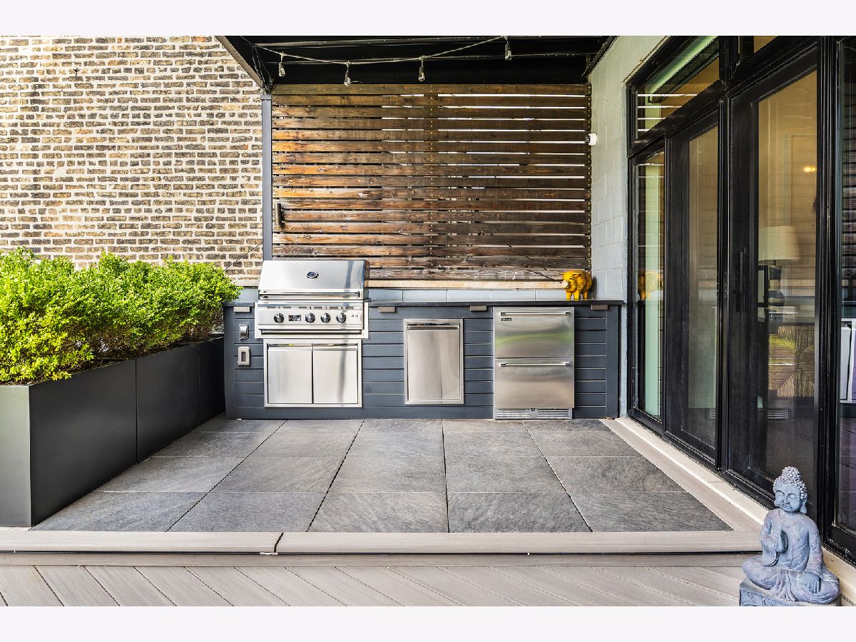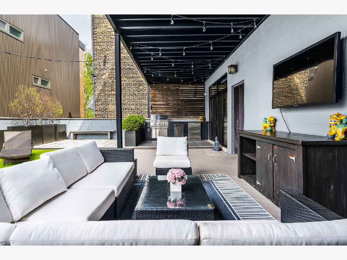 Set in the heart of West Town, this impeccably designed single-level 3-bedroom, 3-bath residence offers a rare balance of scale, natural light, and elevated living-anchored by an extraordinary private outdoor retreat. Unlike the typical long and narrow Chicago layout, the home unfolds in a wide, thoughtfully curated floor plan that lives expansively. Dramatic walls of floor-to-ceiling windows flood the space with natural light while framing serene, tree-lined views in every direction. Despite its central location, the home is remarkably quiet-offering a true sense of retreat within the city. The main living space is both refined and inviting, defined by soaring 10-foot ceilings and anchored by a striking custom gas fireplace wrapped in floor-to-ceiling natural stone-an architectural moment that sets the tone for the entire residence. Every detail has been elevated with intention, seamlessly blending luxury with modern functionality. A full Lutron lighting system and bespoke automatic shades-customized in each room-offer effortless control of ambiance at the touch of a button. Rich hardwood floors, custom millwork, recessed lighting, and pre-wiring for surround sound enhance the interiors, while curated upgrades including custom black doors, designer window treatments, a newly reimagined primary bath, and enhanced WiFi infrastructure ensure both form and function at the highest level. Windows facing Ashland are outfitted with privacy film, allowing for complete discretion without sacrificing light. The kitchen is clean, modern, and highly functional-featuring crisp white cabinetry, generous storage, a beverage center, and an oversized island designed for both everyday living and effortless entertaining. The primary suite is a true retreat, offering a newly updated, spa-inspired bath complete with soaking tub, walk-in shower, custom designer cabinetry, and a refined vanity. A spacious walk-in closet and direct access to the private terrace complete the experience. The current third bedroom has been transformed into a dramatic, boutique-style dressing room-easily converted back to a traditional bedroom if desired. The home's most exceptional feature lies just beyond-an expansive ~1,000-square-foot private terrace, professionally designed and built by Chicago Roof Deck. Garden has an irrigation system. This outdoor space lives as a true extension of the home, delivering a rare single-level indoor-outdoor experience ideal for entertaining, relaxing, and taking in the surrounding cityscape. With three access points, the flow is seamless. Side by side laundry machines with storage are found conveniently next to the owner's suite. Additional highlights include an oversized second bedroom with a striking new glass slider wall opening to the terrace, private elevator access with upgraded security door, secure entry, intercom system, and a well-maintained boutique building. Located within the Talcott Elementary and Wells Community Academy school districts, this residence offers both convenience and long-term value. Unit 2 includes a dedicated first-floor storage closet along with additional exclusive storage beneath the rear stairwell. Parking is a true asset, with one tandem space in the attached garage accommodating two vehicles. Perfectly positioned, the home is surrounded by some of Chicago's most vibrant dining and lifestyle destinations, including Beatnik, Brasero, Kasama, and Uncle Mike's Place-along with boutique shopping, cafes, and easy access to public transportation. A fully turnkey, design-forward residence offering scale, privacy, and a level of outdoor living rarely found in the city.