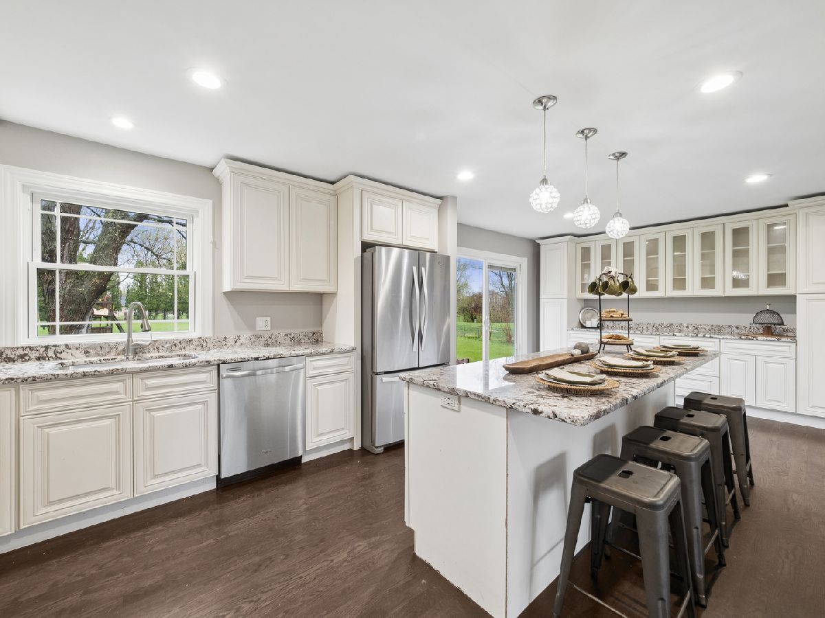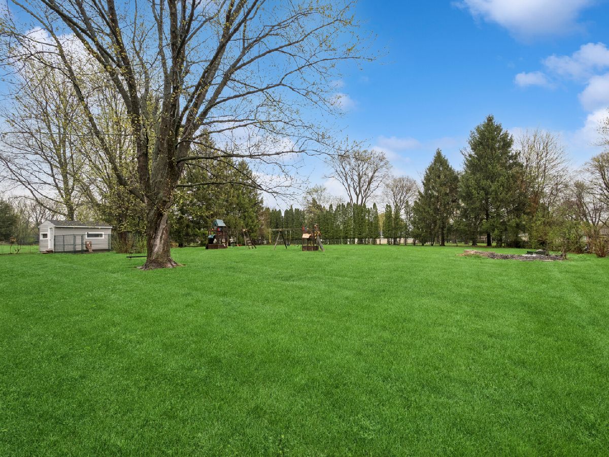 Nestled in the quiet, unincorporated Colleen's Cote subdivision, 6220 Crescent Drive in Huntley offers a rare blend of privacy, natural beauty, and community-centered amenities. This inviting property is surrounded by mature trees and open green space, creating a peaceful setting that feels tucked away while still being conveniently close to nearby shopping, dining, and commuter routes and desirable Huntley School Dist. This home sits on a generously sized 1.15 acre lot, providing ample room for outdoor living, gardening, or simply enjoying the serene surroundings. The detached, 28x36oversized 4+ car garage is ideal for car enthusiasts or perhaps a repair shop. The chicken hut/dog run adds to the versatility of the fenced, backyard. 3 spacious bedrooms, 2 updated full baths. Large dining room for family dinners or hosting special occasions. Then, let's talk about that kitchen!!! Updated with an abundance of cabinetry, granite counters, island with ample seating for family or friends. Family room with wood burning fireplace, built-in bookshelves and sliding doors to patio. And LR offers additional space for relaxing. Some additional upgrades are newer 50 gal.HWH, windows and doors, A/C unit, siding and gutters, newly painted interior. Front porch with new decking and wood ceiling. Roof approx.10 yrs. or less, but unsure. Whether you're sipping your morning coffee on the patio or hosting gatherings with friends and family, the setting offers a sense of calm that's hard to find. One of the standout features of this community is its exclusive, residents-only lake. This private body of water is perfect for those who appreciate outdoor recreation and relaxation. Boat ramp and sandy beach area. Spend your afternoons fishing along the shoreline, launch a kayak for a quiet paddle, or simply take in the scenic water views. The lake adds a special charm to the neighborhood, offering a retreat-like atmosphere just steps from home. In addition to the lake, residents enjoy access to a well-maintained playground and a pavilion. The playground provides a fun and safe space for children to play, while the pavilion is ideal for picnics, celebrations, or casual get-togethers with neighbors. These shared amenities foster a welcoming sense of community while still preserving the privacy and space that make this subdivision so desirable. With its unique combination of natural surroundings, exclusive recreational features, and a tranquil unincorporated setting, 6220 Crescent Drive is more than just a home-it's a lifestyle. Whether you're seeking a peaceful retreat or a place to create lasting memories, this property offers the perfect backdrop.