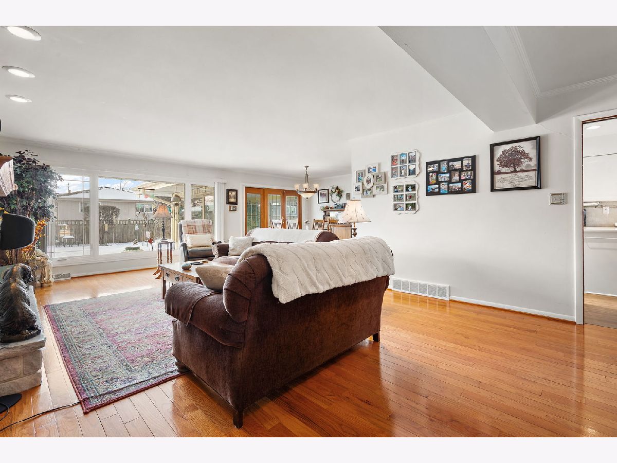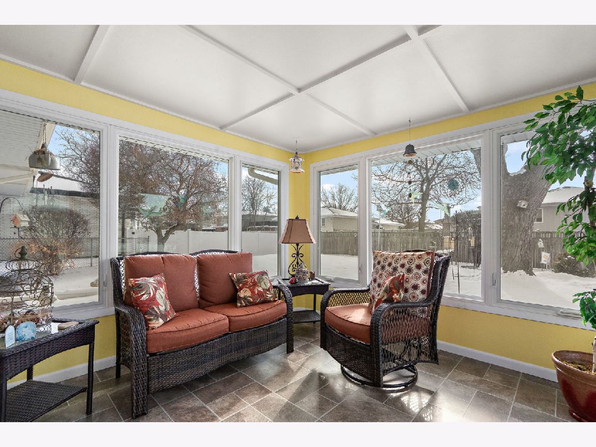 Welcome home to this beautifully maintained 3-bedroom, 2 bath brick ranch, ideally set on a quiet, tree-lined street in desirable unincorporated Palos Heights. Step into a sun-filled, oversized living room anchored by a stunning stone fireplace-perfect for relaxing or entertaining. The spacious kitchen offers brand-new countertops, abundant cabinet and counter space, and a cozy breakfast nook, while a separate dining room provides the ideal setting for gatherings. Enjoy peace of mind with major improvements in 2025, including a new roof with premium 50-year shingles, new fascia and gutters, and a new picture window that enhances both curb appeal and natural light. Unwind in the updated three-seasons room overlooking a private backyard retreat. The main level is thoughtfully laid out with a spacious primary suite featuring an attached bath, two additional bedrooms, a full hall bath, a convenient half bath, plus a laundry room and mudroom for everyday ease. Downstairs, enjoy even more living space with a finished family room, along with excellent storage in the utility room and a large crawl space. The attached two-car garage is a standout, complete with a workbench and additional storage. Comfort, space, and convenience come together in this move-in ready home-don't miss it!