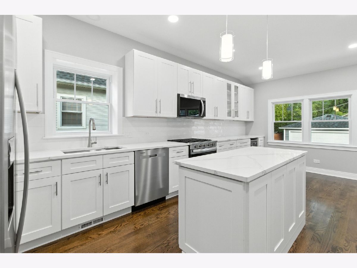 Welcome to this beautifully renovated 4 bed 2.1 bath two-story bungalow, perfectly located in the heart of Norwood Park on an oversized city lot with a side apron driveway and spacious garage. From the moment you enter, you'll be impressed by the warmth of the hardwood floors that flow throughout the spacious main level. At the entry, a sunlit front room with desirable western exposure offers the perfect space for a home office, reading nook, or cozy sunroom. This home features a generous living room and a stunning eat-in kitchen. Outfitted with stainless steel appliances, sleek quartz countertops, and ample cabinetry, the kitchen is designed to impress-ideal for entertaining and everyday living. The main floor offers two well-sized bedrooms and a full bath, while the second level provides two additional bedrooms and another full bathroom-perfect for growing families or guests. Additionally, the fully finished basement offers a spacious family room, perfect for extra entertainment or relaxation. Step outside and enjoy a beautifully manicured yard with plenty of space to relax, play, or garden-perfect for enjoying all four seasons. Located within walking distance to expressways, restaurants, nightlife, parks, and shopping, this home combines charm, comfort, and convenience. Move-in ready and waiting for your personal touch, this is truly a must-see property. Don't miss out-this gem won't last long, bring in your offers.