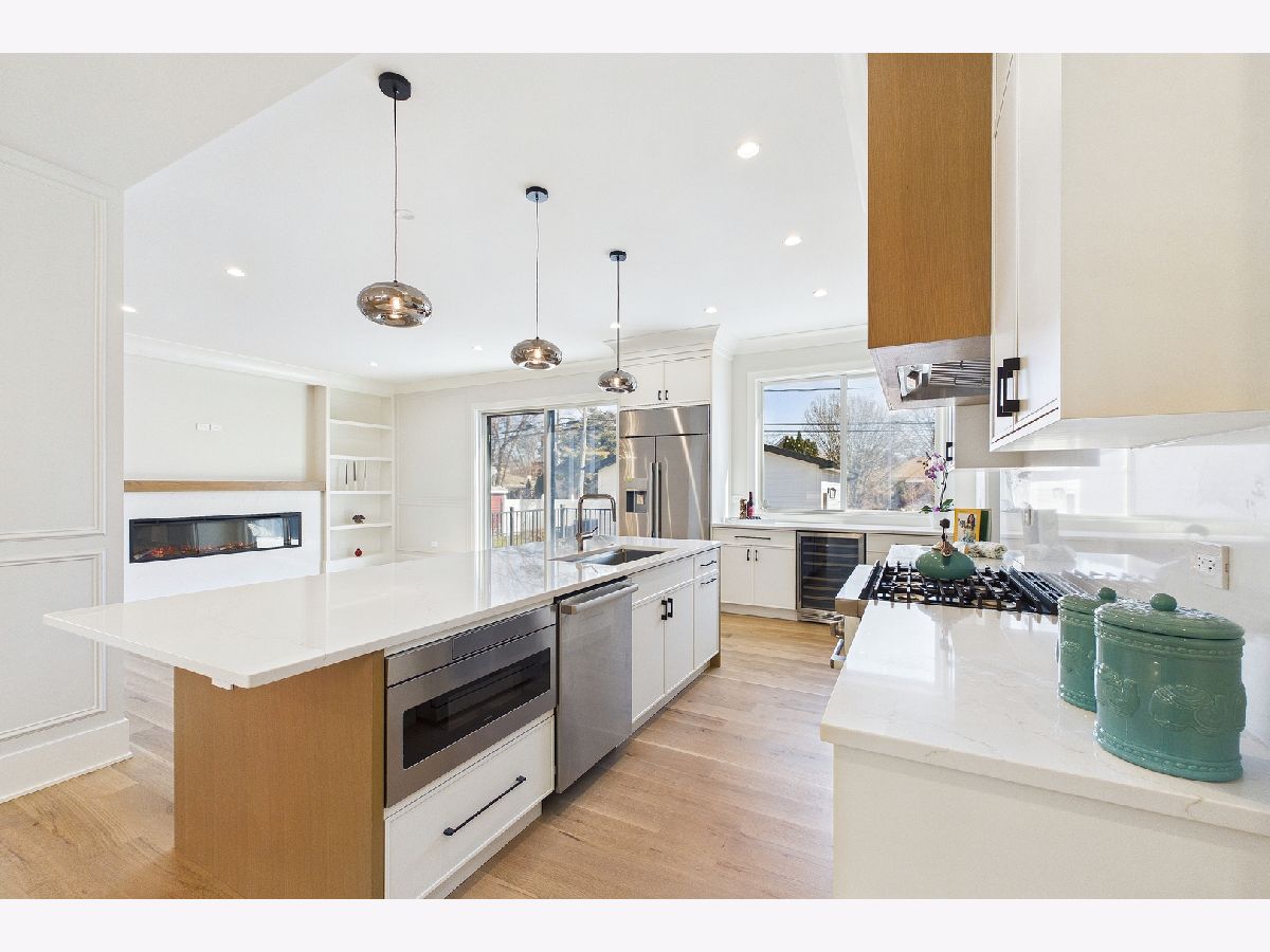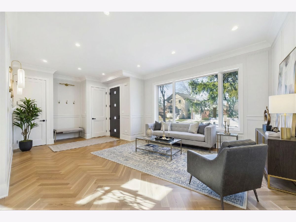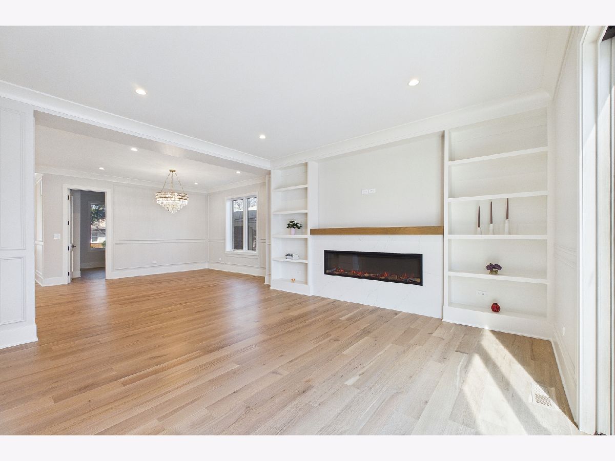 Elegant 95% New Construction in the Highly Desirable Sauganash Neighborhood! This exceptional 5-bedroom, 4.5-bath residence showcases refined luxury, impeccable craftsmanship, and thoughtful design throughout. From the moment you step inside, the home offers an immediate sense of warmth and sophistication, blending timeless elegance with modern comfort. Designed with an expansive open floor plan, the home features stunning quarter sawn white oak flooring and exquisite custom millwork throughout, including detailed crown and wall moldings that elevate every space. The inviting family room with a built-in fireplace serves as the heart of the home-perfect for both everyday living and elegant entertaining. The chef's kitchen is beautifully custom-made kitchen with Dacor appliances, an oversized island with quartz countertops, and a pantry, seamlessly connecting to the main living areas. First floor bedroom ideal for your out of town guests. Cozy primary suite offers a true retreat, featuring a spa-inspired bath with heated floors, a stand-alone soaking tub, double vanity, body-spray shower, and a generous walk-in closet with custom organizers. Additional highlights include a functional mudroom with direct access from the deck, second-floor laundry, a full basement ideal for children's playroom, maintenance-free oversized deck, white privacy fence, and a high-efficiency furnace and a/c. Ideally located on a beautiful tree-lined street, close to schools, golf course, downtown Edgebrook, forest preserves & Metra, this home combines sophisticated design, superior finishes, and an unmatched sense of comfort-truly a place that feels like home from the moment you arrive!