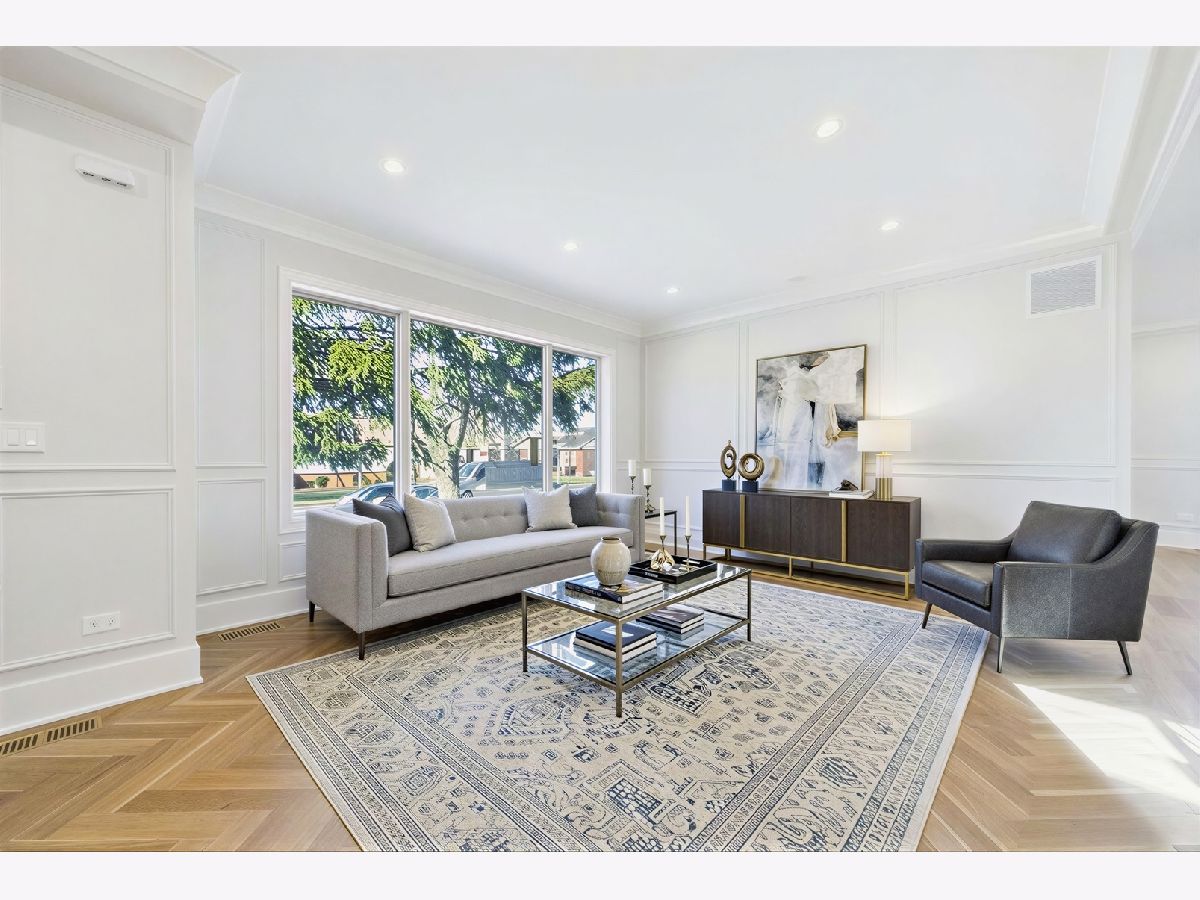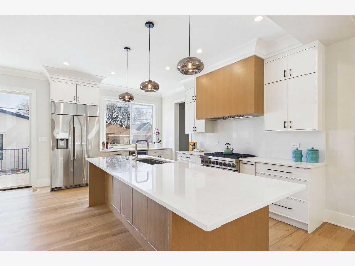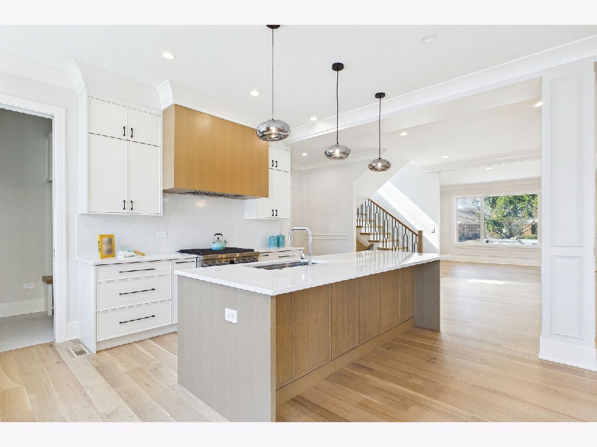 Elegant 95% New Construction in the Highly Desirable Sauganash Neighborhood! This exceptional 5-bedroom, 4.5-bath residence showcases refined luxury, impeccable craftsmanship, and thoughtful design throughout. From the moment you step inside, the home offers an immediate sense of warmth and sophistication, blending timeless elegance with modern comfort. Designed with an expansive open floor plan, the home features stunning quarter sawn white oak flooring and exquisite custom millwork throughout, including detailed crown and wall moldings that elevate every space. The inviting family room with a built-in fireplace serves as the heart of the home-perfect for both everyday living and elegant entertaining. The chef's kitchen is beautifully custom-made kitchen with Dacor appliances, an oversized island with quartz countertops, and a pantry, seamlessly connecting to the main living areas. First floor bedroom ideal for your out of town guests. Cozy primary suite offers a true retreat, featuring a spa-inspired bath with heated floors, a stand-alone soaking tub, double vanity, body-spray shower, and a generous walk-in closet with custom organizers. Additional highlights include a functional mudroom with direct access from the deck, second-floor laundry, a full basement ideal for children's playroom, maintenance-free oversized deck, white privacy fence, and a high-efficiency furnace and a/c. Ideally located on a beautiful tree-lined street, close to schools, golf course, downtown Edgebrook, forest preserves & Metra, this home combines sophisticated design, superior finishes, and an unmatched sense of comfort-truly a place that feels like home from the moment you arrive!
