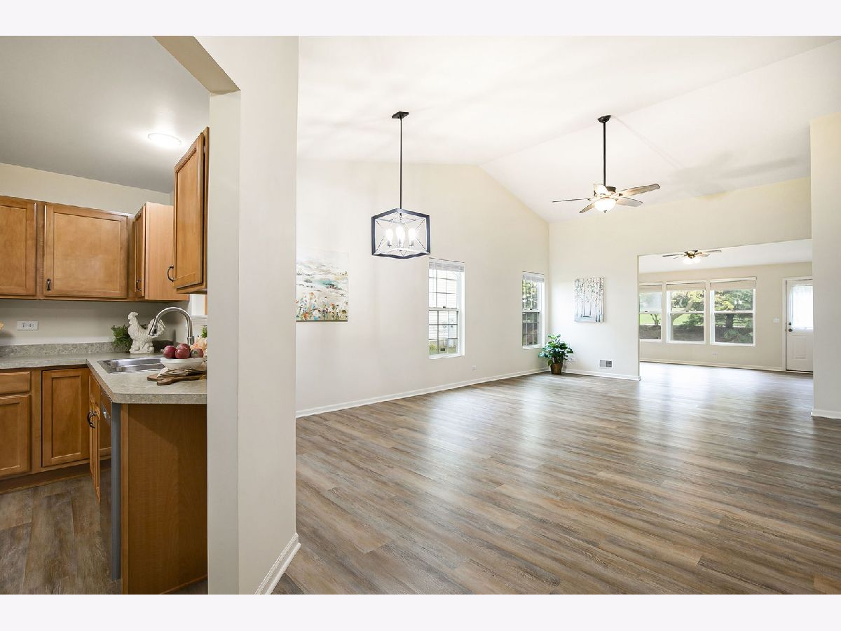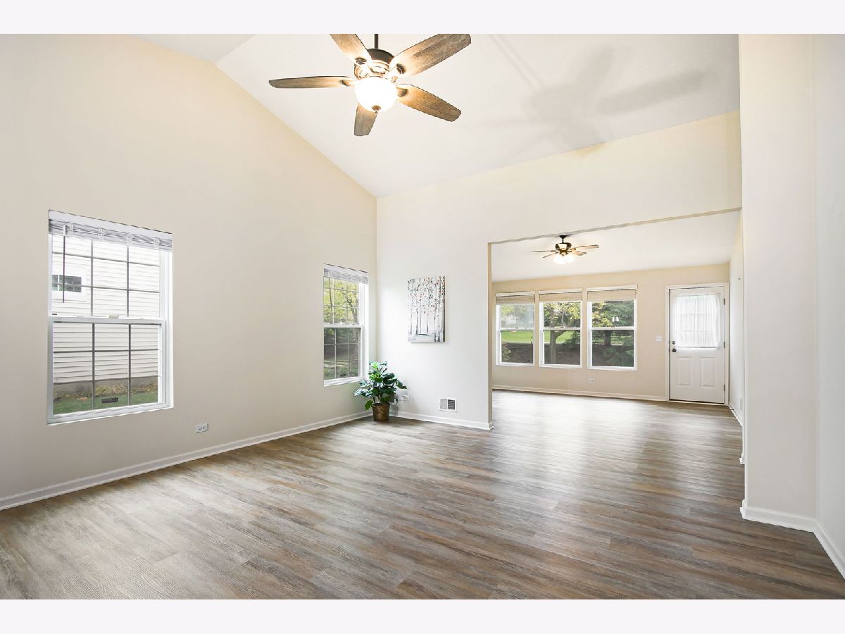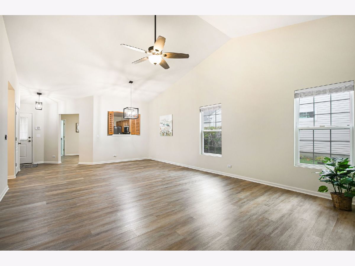 Beautiful End-Unit Ranch Home in the 55+ Community of Bradford Place! This move-in ready home features fresh, modern updates throughout. The spacious open-concept layout boasts vaulted ceilings in the living room, dining area, and a separate family room-perfect for relaxation or entertaining. Enjoy a freshly painted interior complemented by new luxury vinyl plank flooring that flows seamlessly through the home. The generously sized primary suite includes a private bath with a full-sized shower, and a walk-in closet that's larger than many bedrooms! The eat-in kitchen offers all new stainless appliances, maple cabinetry, space for a table or island, and two oversized pantries for abundant storage. A separate laundry room includes a newer washer and dryer, plus a new hot water heater. The attached garage is extended for all your storage needs. Step outside to your private patio, surrounded by mature trees and professionally maintained landscaping-offering a peaceful and scenic retreat with walking path, gazebo and pond nearby.