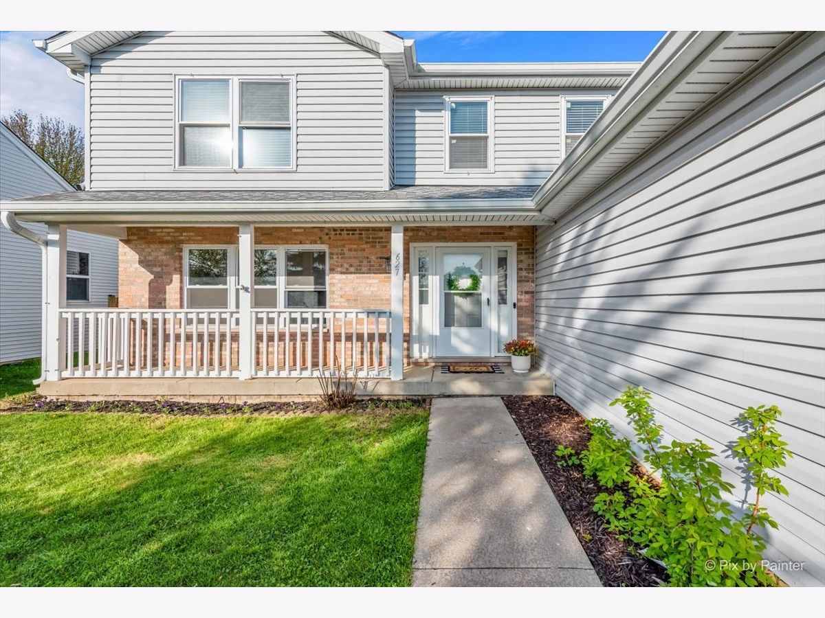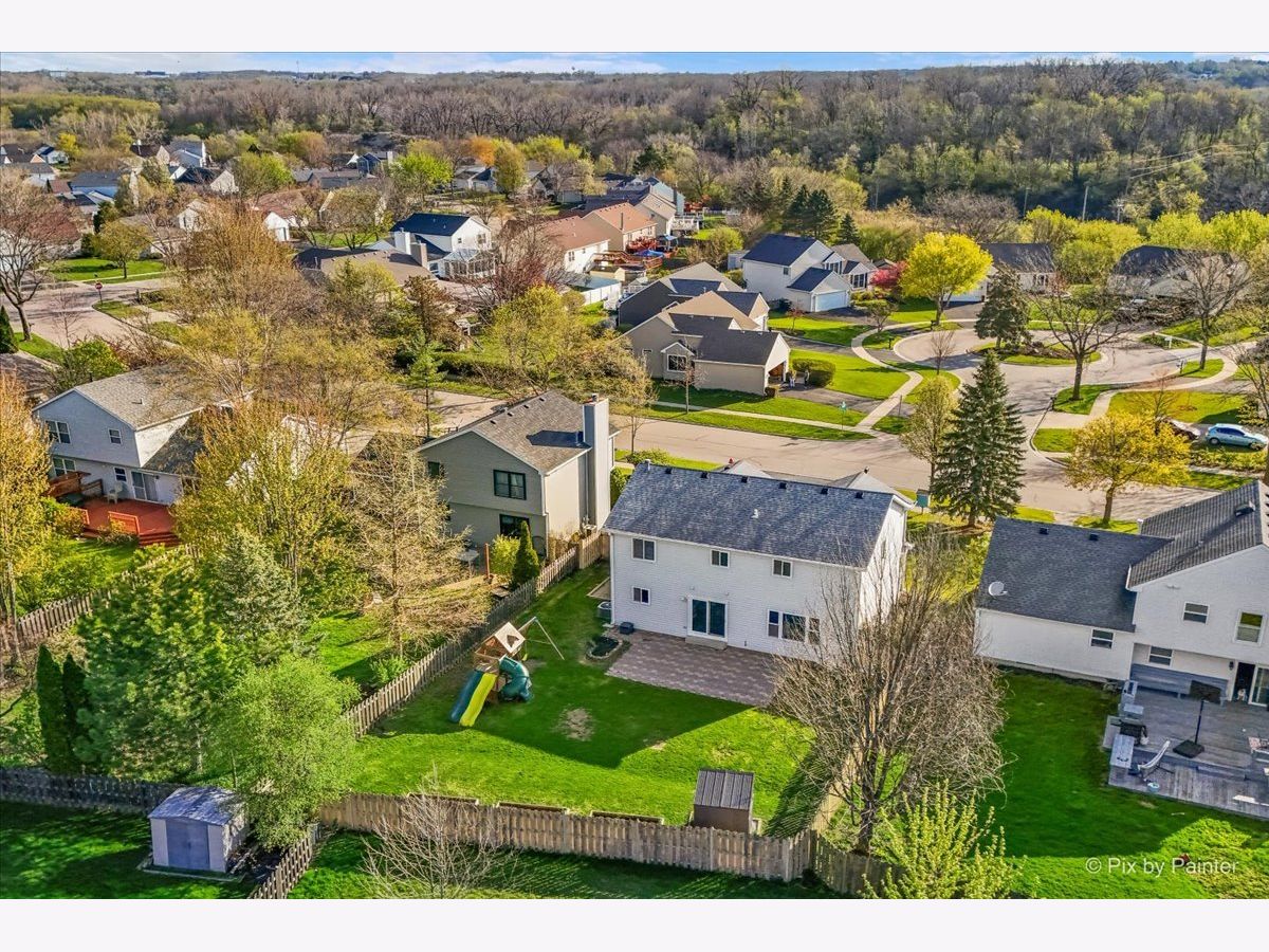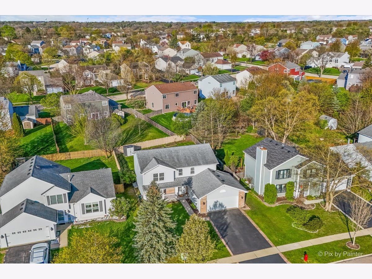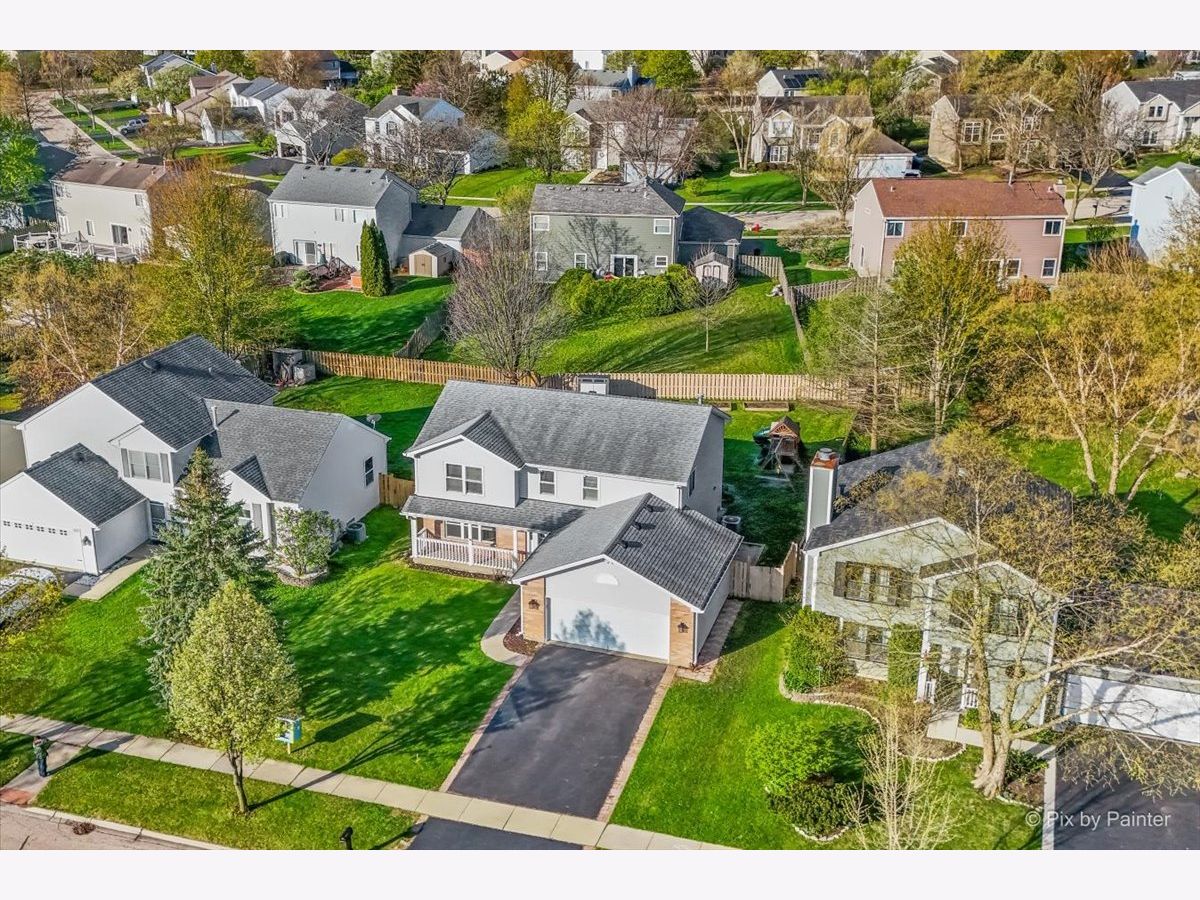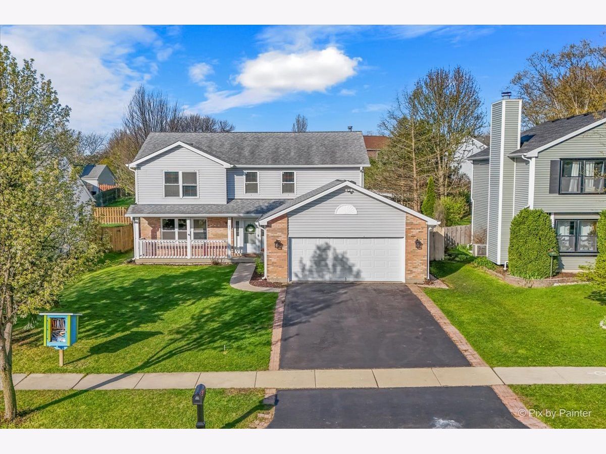 Welcome to 627 Grace Drive! Move-in ready 4-bedroom, 2 full and 2 half bath home in desirable Hidden Valley located on a quiet street directly across the street from a cul-de-sac. Bright, functional layout with hardwood floors and abundant natural light. Remodeled kitchen (2023) features quartz countertops, pull-out cabinetry, and newer appliances (2019), opening to the family room. Second floor offers four bedrooms, two fully remodeled bathrooms (2026), and convenient second-floor laundry. Primary suite includes private bath and generous closet space. Finished basement includes half bath, newer flooring (2021), fresh paint (2020), and built-in climbing wall. Great for additional living or recreation space. Fully fenced backyard with brick patio, shed (2022), garden boxes, compost area, and playset. Conveniently located near parks, playgrounds, and the Prairie Trail for walking and biking, plus close to schools and the Randall Road shopping and dining corridor. Major updates include all new windows (2019), HVAC (2019), sliding doors (2019), window treatments (2020), sump pump with battery backup (2020), soffits, gutters and attic insulation improvements (2019), window well covers (2020), and ducts cleaned (2025), freshly painted throughout (2026), carpet replaced (2019), brand new carpeting on basement stairs (2026), all new light fixtures throughout (2021-2026), and professionally cleaned (2026), new mailbox (2026). Included: Washer, dryer, garage refrigerator, playset, garden boxes, shed, compost, and basement climbing wall. Wired for I3 Broadband fiber internet.