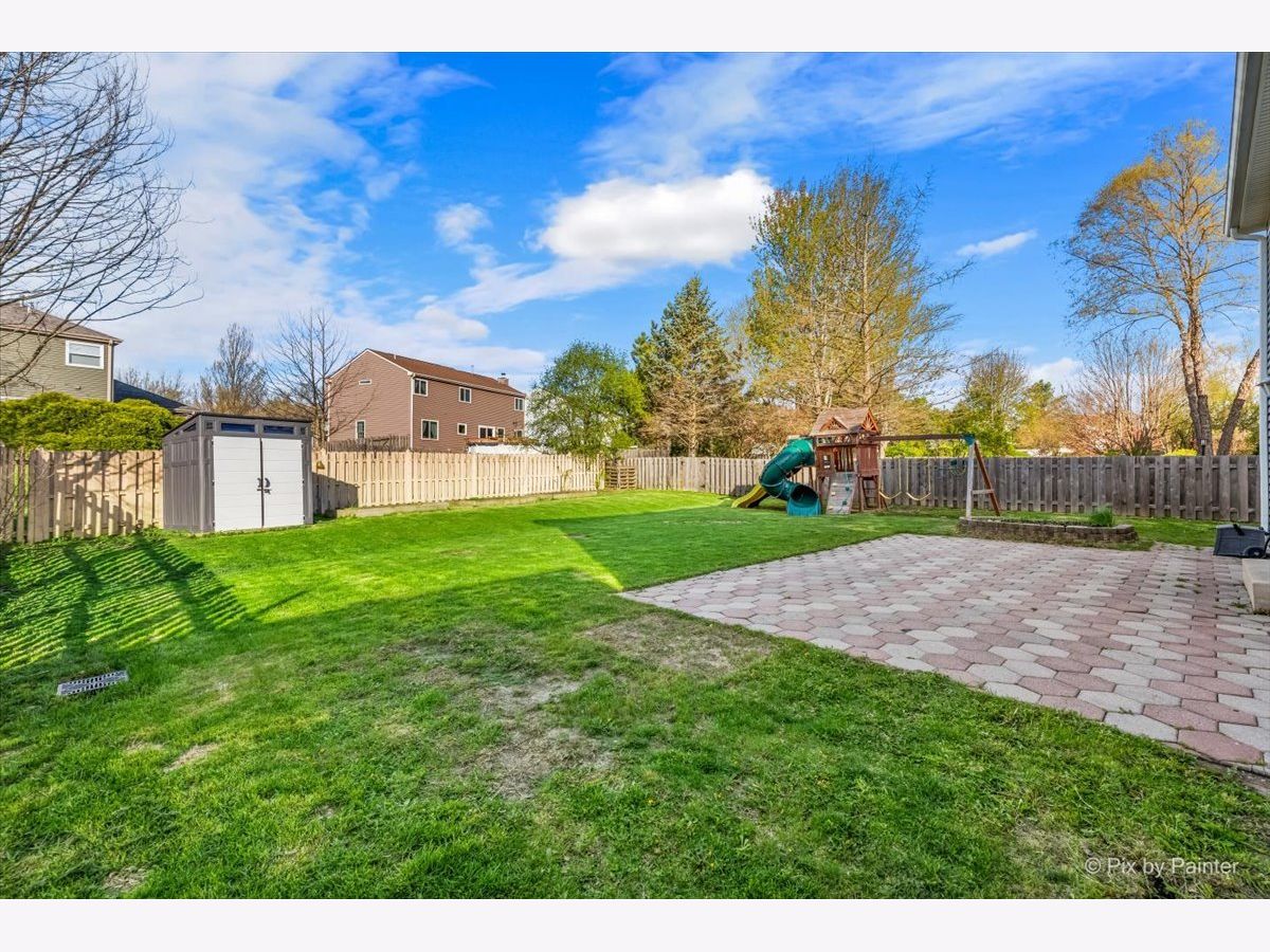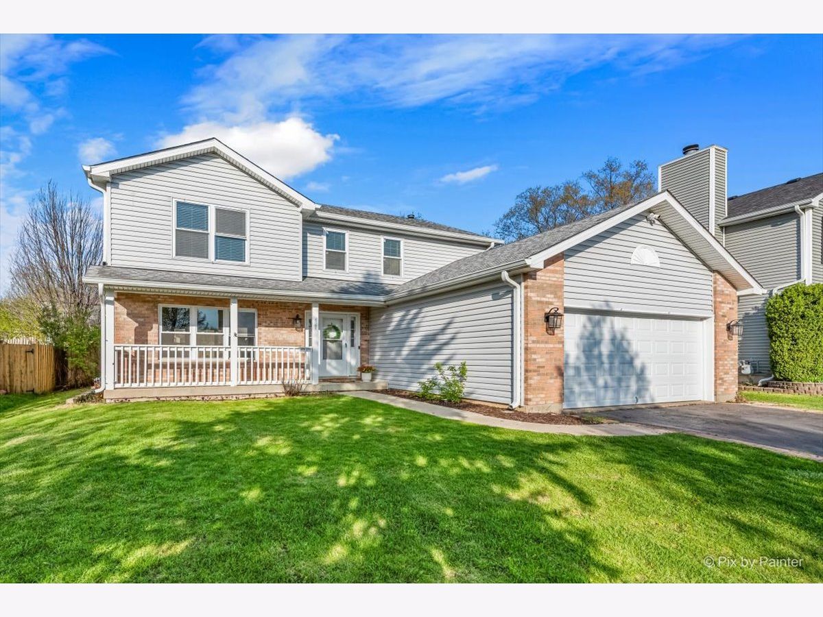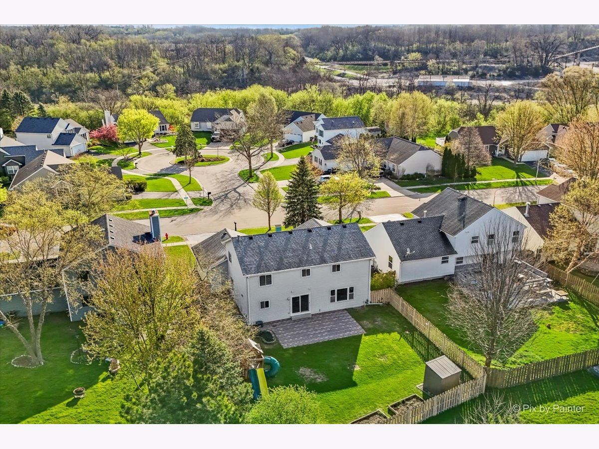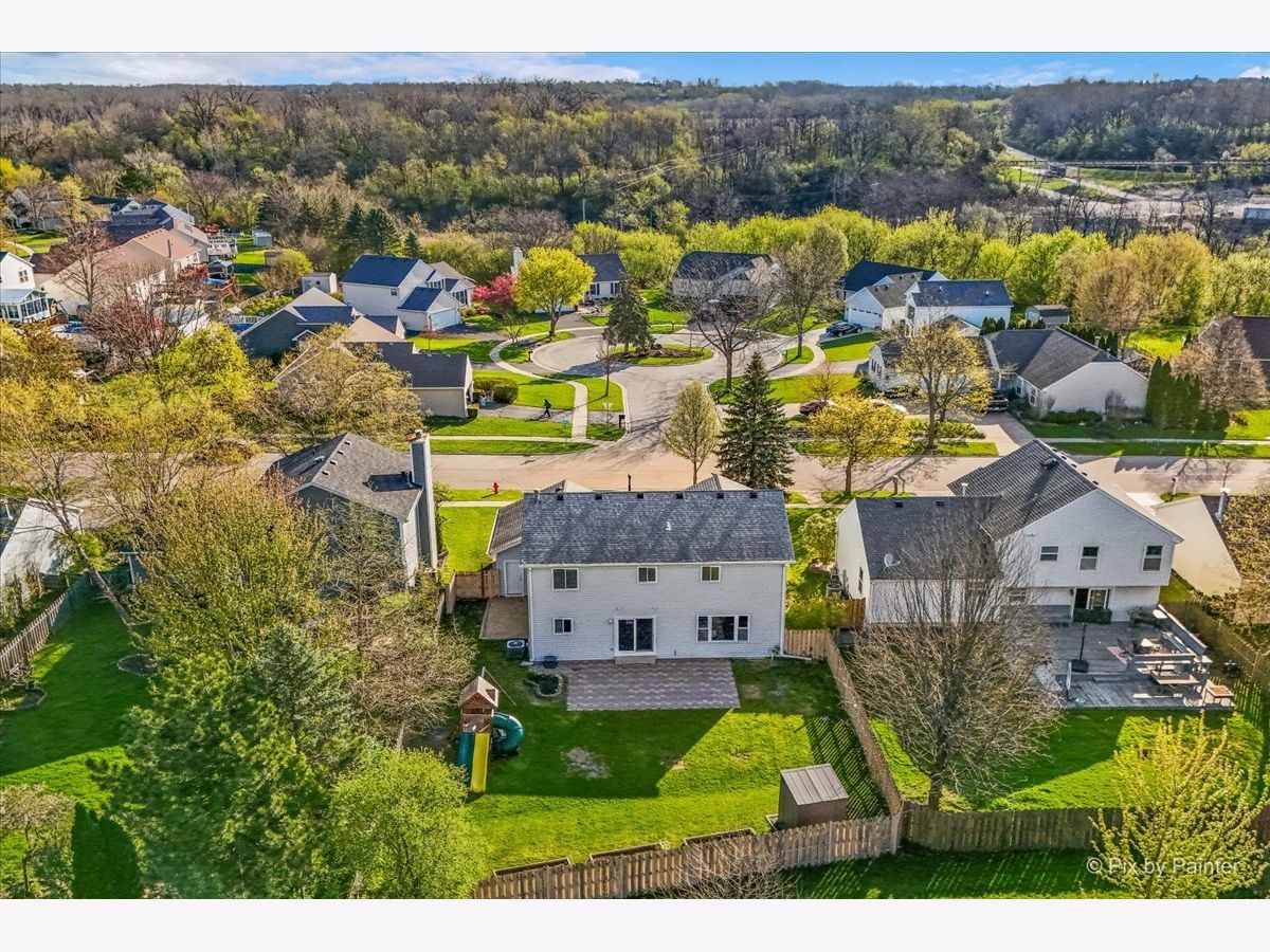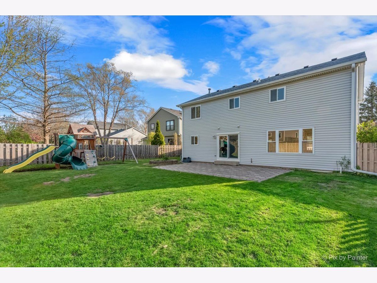 Welcome to 627 Grace Drive! Move-in ready 4-bedroom, 2 full and 2 half bath home in desirable Hidden Valley located on a quiet street directly across the street from a cul-de-sac. Bright, functional layout with hardwood floors and abundant natural light. Remodeled kitchen (2023) features quartz countertops, pull-out cabinetry, and newer appliances (2019), opening to the family room. Second floor offers four bedrooms, two fully remodeled bathrooms (2026), and convenient second-floor laundry. Primary suite includes private bath and generous closet space. Finished basement includes half bath, newer flooring (2021), fresh paint (2020), and built-in climbing wall. Great for additional living or recreation space. Fully fenced backyard with brick patio, shed (2022), garden boxes, compost area, and playset. Conveniently located near parks, playgrounds, and the Prairie Trail for walking and biking, plus close to schools and the Randall Road shopping and dining corridor. Major updates include all new windows (2019), HVAC (2019), sliding doors (2019), window treatments (2020), sump pump with battery backup (2020), soffits, gutters and attic insulation improvements (2019), window well covers (2020), and ducts cleaned (2025), freshly painted throughout (2026), carpet replaced (2019), brand new carpeting on basement stairs (2026), all new light fixtures throughout (2021-2026), and professionally cleaned (2026), new mailbox (2026). Included: Washer, dryer, garage refrigerator, playset, garden boxes, shed, compost, and basement climbing wall. Wired for I3 Broadband fiber internet.
