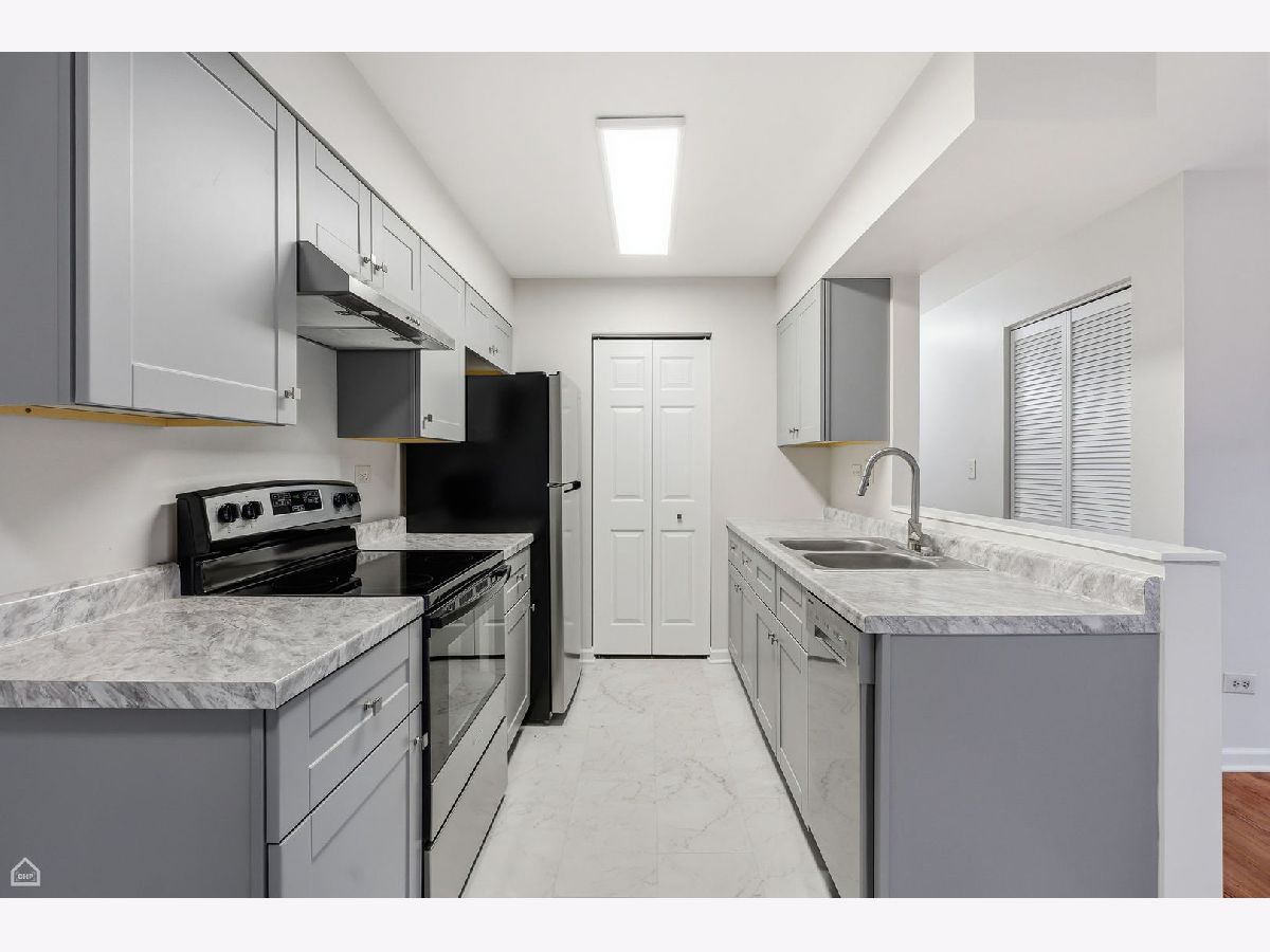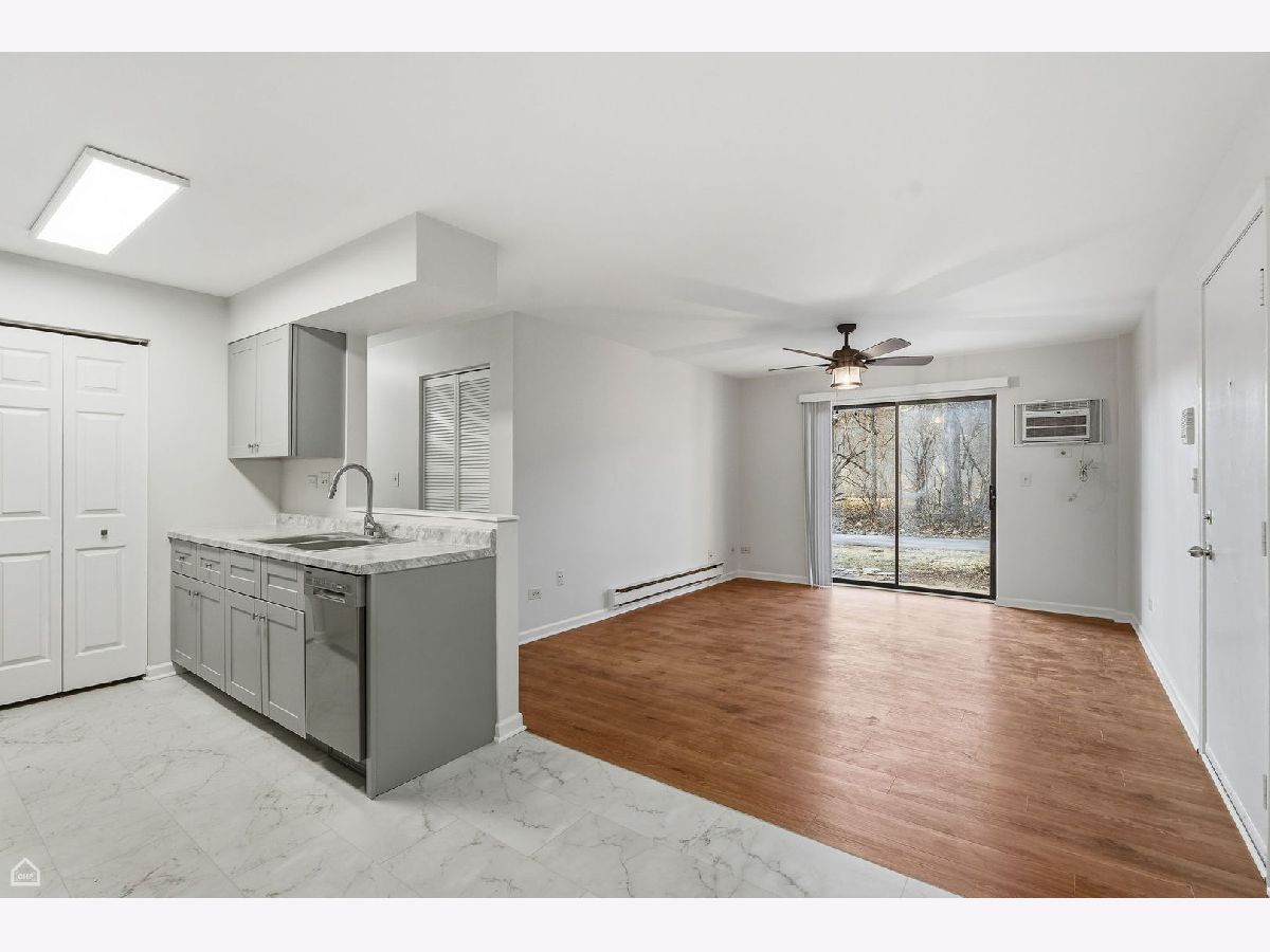 Perfect location, perfect condo! This awesome home has just been completely remodeled! All new EVERYTHING!! New kitchen and appliances, new paint, new vinyl plank flooring! New baths! You'll come home to a beautiful large living room that is open to the kitchen and has sliders to a quiet patio. Spacious primary bedroom has a new private bath and large walk in closet. The other bedroom is also quite large and directly across the hall from the full bath. Coin laundry is just down the hall. Only a few small steps to the front door make it so convenient! 2 parking spots are allowed. Close to Metra, the Raue, restaurants and shopping! **Only four (4) pets per unit are allowed to be kept on the premises. There may be no more than two (2) dogs, but the combined weight the dogs may not exceed 80 pounds. (For example, one may weigh 60# and the other may weigh 20#.) Do not push the weight limit as one dog will have to be removed. Be careful when choosing your breeds. There will be a $100.00 pet fee for each dog. Come and get this gorgeous, easy living home before it's gone!