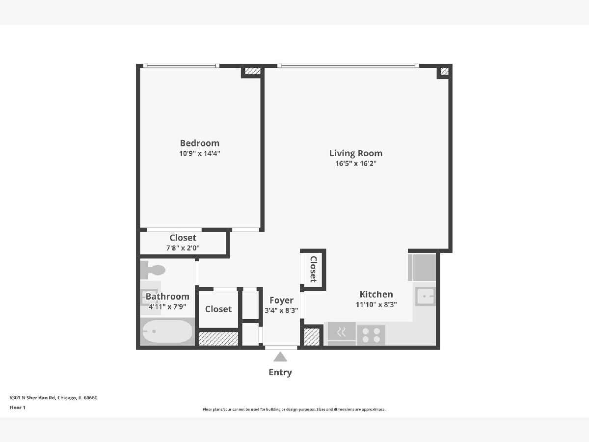 Welcome this beautiful 1bed/1bath condo located in highly desirable Shoreline Towers. The building is a full-amenity building with 24-hour door staff, fitness center, rooftop sundeck with panoramic views, party room, laundry room, on-site management, dry cleaners, receiving room, commissary, engineer, and visitor parking. Assessments include all utilities except electricity. Valet garage parking is available for a monthly fee. Pet-friendly and perfectly located-steps from the Red Line, express buses, Loyola University, Berger Park, the lakefront, shopping, and dining. Rentals are allowed, great for investors.
