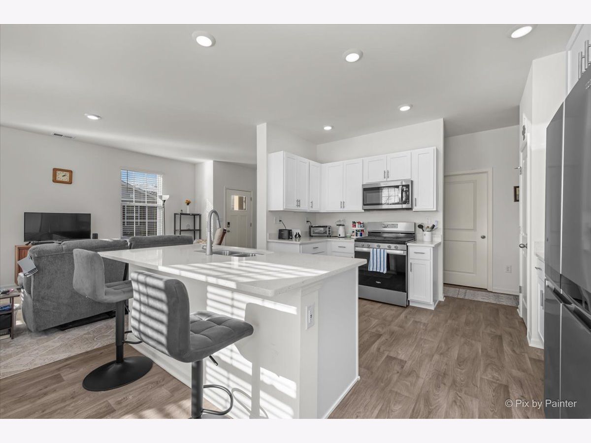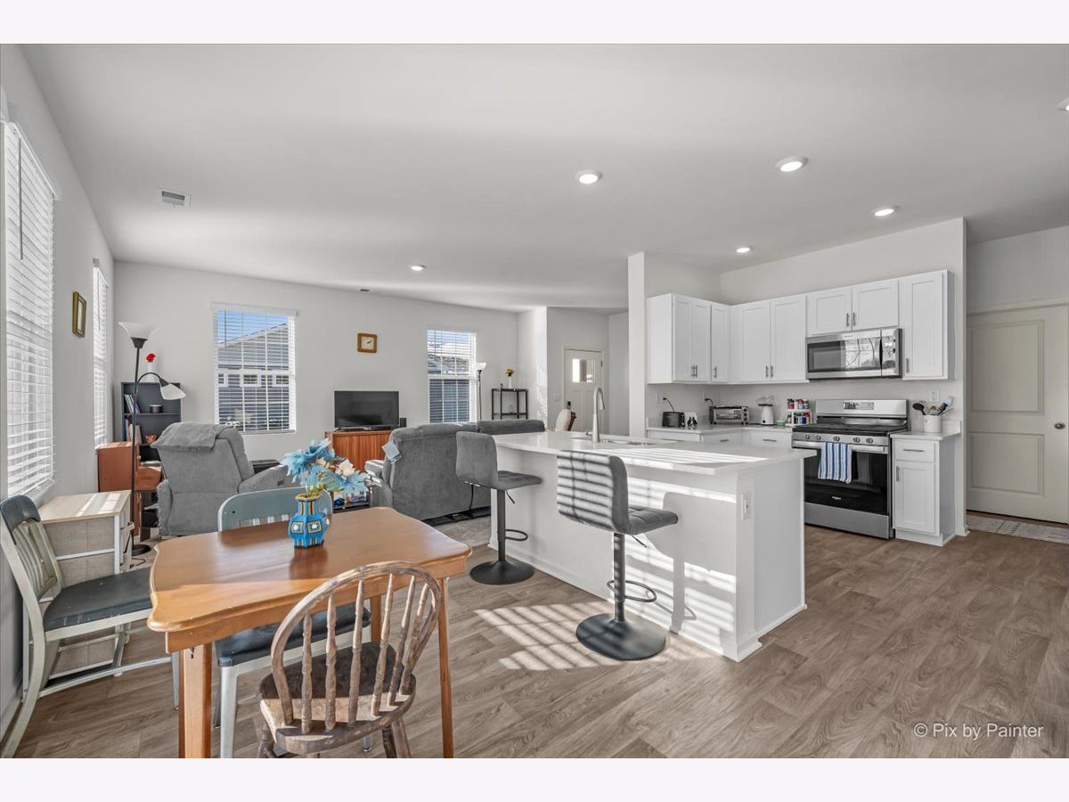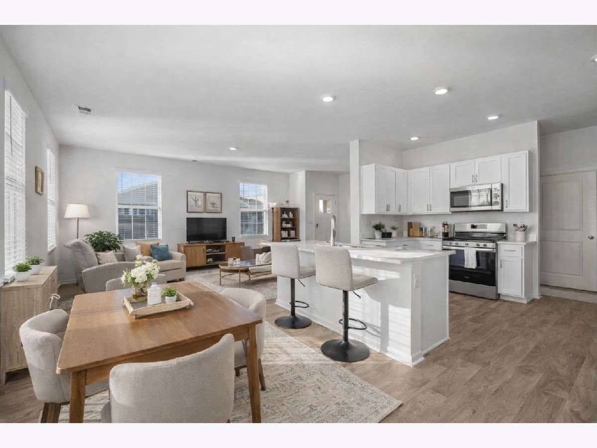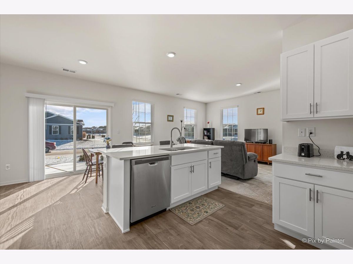 This beautifully maintained ranch home offers effortless single-level living with a bright, open layout designed for comfort and convenience. With no stairs to navigate, the thoughtfully designed floor plan is ideal for both everyday living and entertaining. The stunning white kitchen features quartz countertops, stainless steel appliances including a 5-burner gas range, a large center island with breakfast seating, and an oversized pantry. The sun-filled dining area opens to a private patio through sliding glass doors, while the warm and inviting family room flows seamlessly from the kitchen-perfect for gatherings both large and small. The spacious primary suite serves as a relaxing retreat, complete with a generous walk-in closet and a spa-inspired en suite bath offering dual sinks, an elevated vanity, and a large walk-in shower. An additional bedroom is thoughtfully positioned on the opposite side of the home for privacy, adjacent to a bright hall bath with a tub/shower combination and a large vanity. Laundry is conveniently located near the primary bedroom with direct access to the oversized 2.5-car garage, making daily routines effortless. Additional highlights include white trim throughout, luxury vinyl plank flooring, neutral decor, window blinds on all windows, and ample closet space. Located in the highly desirable Stonewater community, residents enjoy a welcoming neighborhood atmosphere with sidewalk-lined streets, scenic ponds, and a private community clubhouse and outdoor pool-perfect for relaxing summers and meeting neighbors. The community also offers walking paths, green space, and easy access to nearby parks, the Chain O' Lakes recreation area, and local shopping and dining. This turnkey home is ready for a quick close-simply bring your furniture and start enjoying easy living.