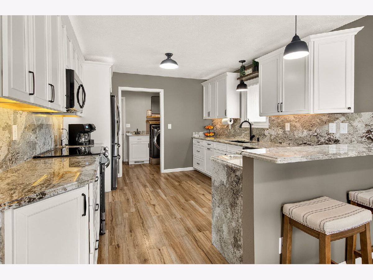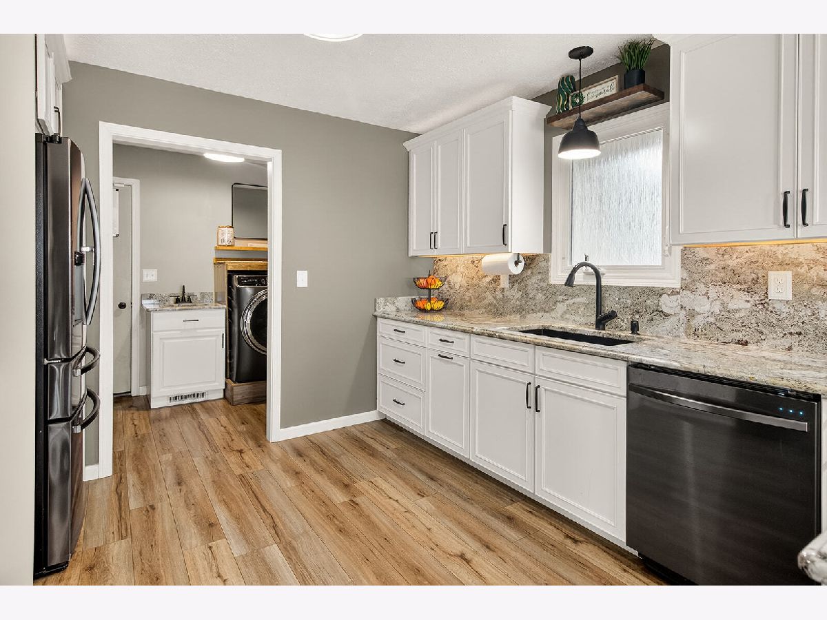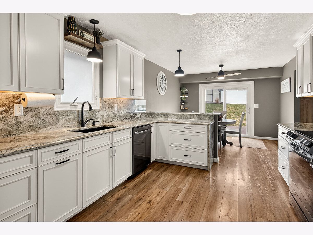 Spacious and beautiful 4 bed, 3 bath ranch offering modern finishes and functional living throughout. The bright kitchen features granite countertops, black appliances, a breakfast area, and soft-close cabinetry with under cabinet lighting. Luxury vinyl flooring (LVF), installed throughout the home in 2024, pairs perfectly with the crisp white cabinets and trim for a clean, contemporary feel. The main level includes a welcoming living room with an electric fireplace, a comfortable living room, and a convenient entry closet. The primary suite offers a walk-in closet and a private full bath complete with dual sinks, a walk-in shower, soft close cabinets, under cabinet lighting, and additional storage. Two additional generously sized bedrooms and a full bath complete the main level, along with a well-equipped first floor laundry room featuring a sink, cubbies, and a closet. The partially finished lower level expands your living space with a 4th bedroom, a full bath, a walk in cedar closet, and ample storage. Outside, enjoy a fenced backyard with a 12x12 shed - perfect for extra storage or hobbies. This move in ready home blends comfort, style, and practicality in every detail.