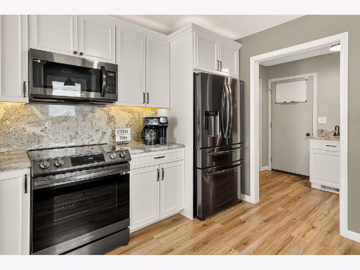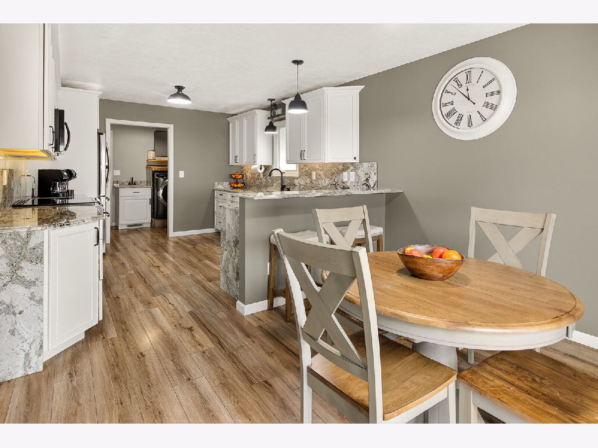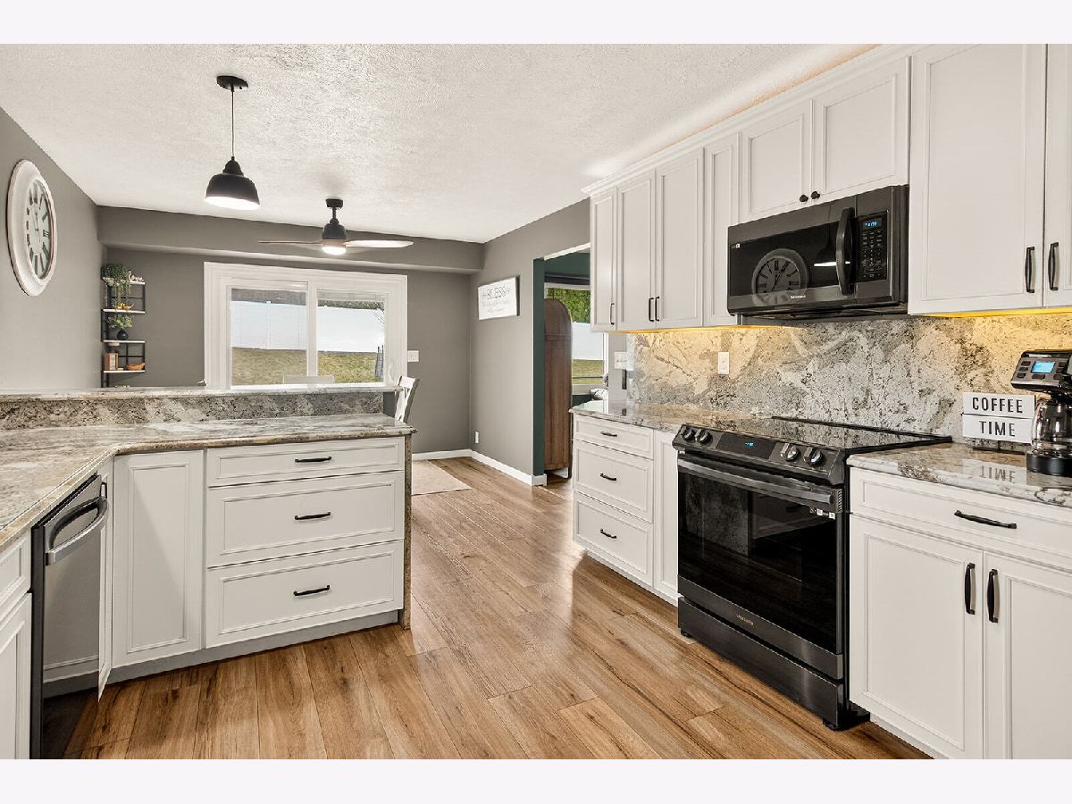 Spacious and beautiful 4 bed, 3 bath ranch offering modern finishes and functional living throughout. The bright kitchen features granite countertops, black appliances, a breakfast area, and soft-close cabinetry with under cabinet lighting. Luxury vinyl flooring (LVF), installed throughout the home in 2024, pairs perfectly with the crisp white cabinets and trim for a clean, contemporary feel. The main level includes a welcoming living room with an electric fireplace, a comfortable living room, and a convenient entry closet. The primary suite offers a walk-in closet and a private full bath complete with dual sinks, a walk-in shower, soft close cabinets, under cabinet lighting, and additional storage. Two additional generously sized bedrooms and a full bath complete the main level, along with a well-equipped first floor laundry room featuring a sink, cubbies, and a closet. The partially finished lower level expands your living space with a 4th bedroom, a full bath, a walk in cedar closet, and ample storage. Outside, enjoy a fenced backyard with a 12x12 shed - perfect for extra storage or hobbies. This move in ready home blends comfort, style, and practicality in every detail.