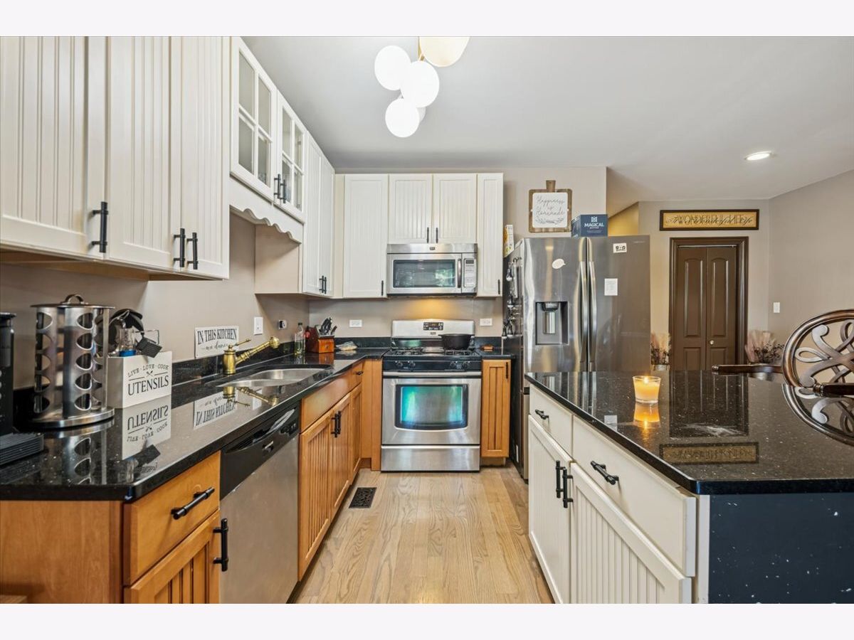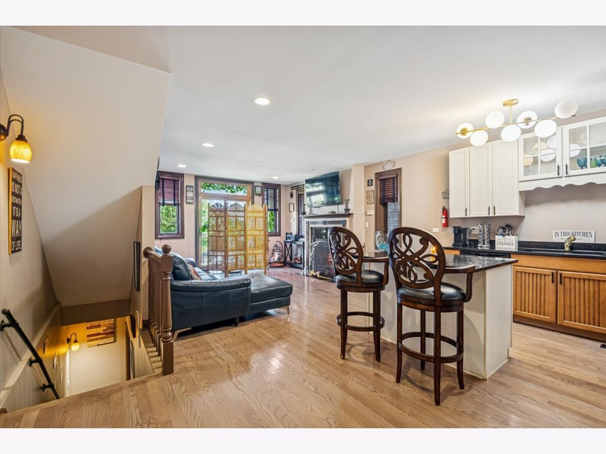 Welcome to spacious and beautifully updated 5-bedroom, 3-bath duplex-down in Hyde Park Township, just minutes from the train and the future Obama Presidential Center. This home combines modern comfort with incredible flexibility - perfect for homeowners and investors alike. Main level features refinished hardwood floors (2024), fresh paint throughout, and a bright, open concept living space. A sun-filled living room with fireplace and Juliet balcony flows into the updated kitchen, featuring granite countertops, custom cabinetry, breakfast bar, and newer stainless-steel appliances (fridge & dishwasher 2024). Three spacious bedrooms are on the main level, including a primary suite with spa-like bath complete with dual vanity, jacuzzi tub, and separate shower. From here, step out to a quiet private terrace and enjoy the convenience of your own assigned parking space. The lower level expands the possibilities. Fully tiled, it offers a huge recreation room with wet bar, two additional bedrooms, and a full bath with dual sinks, soaker tub, and separate shower. Best of all, this level includes a second kitchen (cooktop & fridge 2024), washer/dryer, and a private entrance - making it ideal for extended family, a guest suite, or as a turn-key rental/Airbnb opportunity.