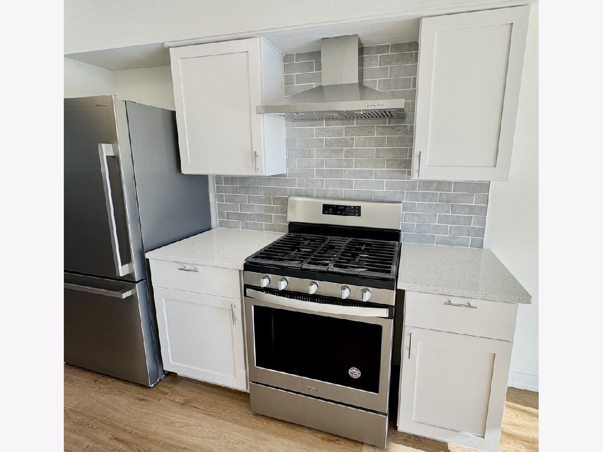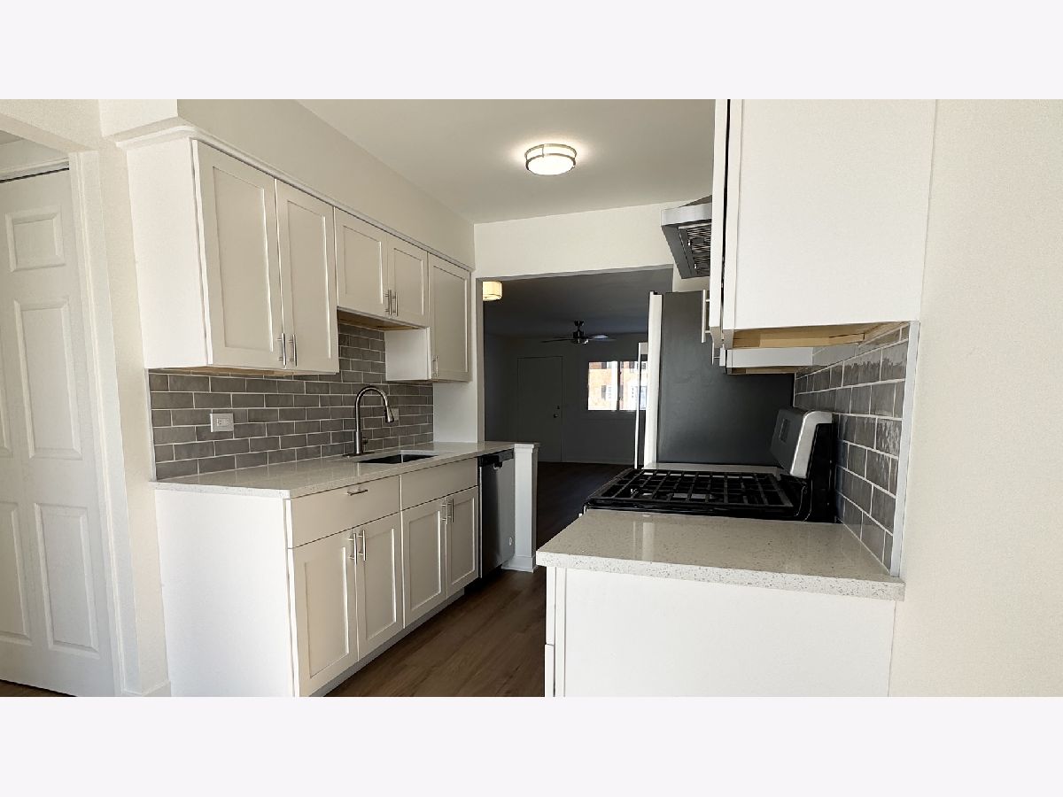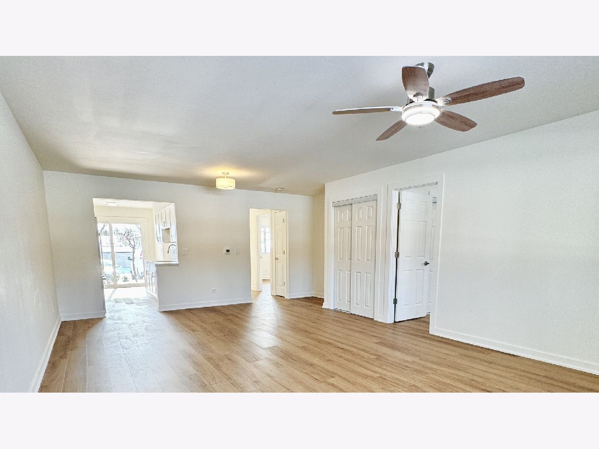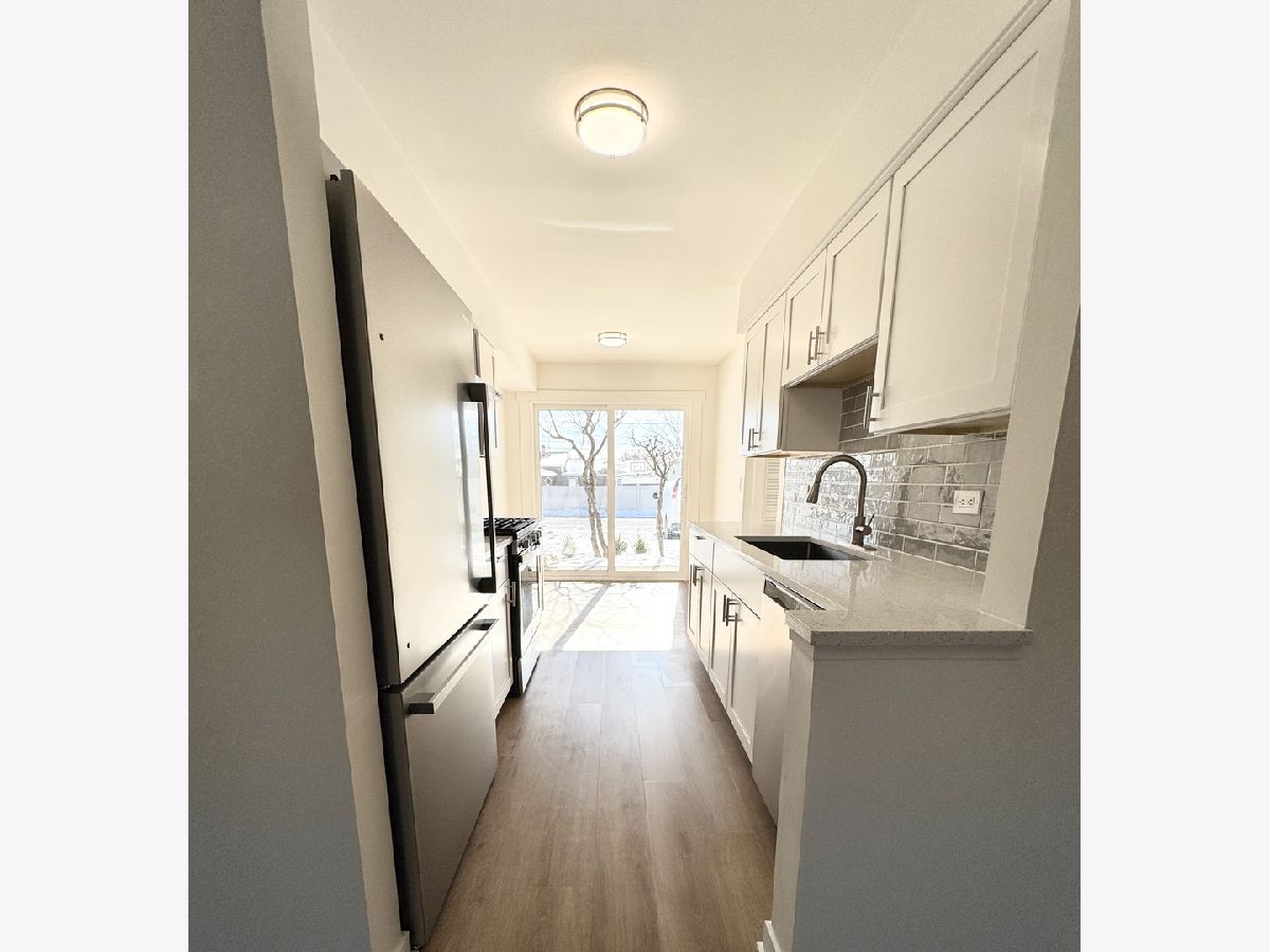 Welcome to your dream home! This beautifully remodeled 2-bedroom, 1-bath, first floor unit with in-unit laundry offers modern comfort and convenience in the vibrant community of Des Plaines. Step into a bright, open-concept living space featuring brand-new flooring, fresh paint, and brand new large windows that fill the home with lovely natural light. The fully updated kitchen is a chef's delight, boasting sleek quartz countertops, new stainless steel appliances, custom cabinetry, and a stylish backsplash. The kitchen also offers a bright eat-in dining experience right next to a brand new sliding door that leads to your own private back patio, with the opportunity to grill and gather just steps away. Both large bedrooms include substantial closet space, and plenty of natural light. The completely renovated bathroom showcases elegant fixtures, a contemporary design, and an additional linen closet with ample storage. Enjoy your morning coffee or unwind in the evening on your newly added front patio. Additional perks include central air conditioning, two parking spaces right outside of your back door, and a storage locker with plenty of space. Located close to parks, the airport, public transportation, and major highways for easy and convenient commuting. This unit is also walking distance to a variety of shopping for extra convenience.
