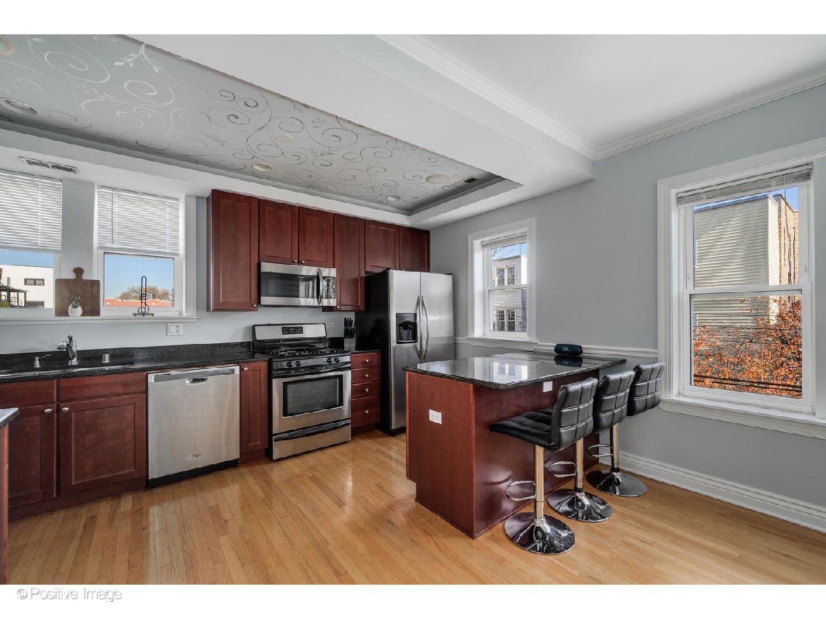 Welcome to this inviting 2-bedroom, 2-bath condo in a classic Edgewater building. This well-maintained home features thoughtful updates throughout, abundant natural light, hardwood floors, and crown molding. The living room offers a cozy gas fireplace, built-in shelving, and surround sound wiring. French doors open to a spacious private deck overlooking a west-facing courtyard - ideal for relaxing or entertaining. The kitchen boasts 42" cherry cabinets, tray ceilings, stainless steel appliances, granite countertops, and an island with a breakfast bar, flowing seamlessly into a separate dining area. The primary bedroom includes an en-suite marble bathroom with a luxurious walk-in shower. A bright second bedroom and an additional full bathroom with a soaking tub complete the layout. Additional highlights include in-unit washer/dryer and a large, separate storage unit in the building. Easy street parking for your convenience! Set on a quiet, tree-lined street just blocks from everything Edgewater has to offer - Loyola, Whole Foods, Target, shopping, dining, the Red Line, the lakefront, and so much more!