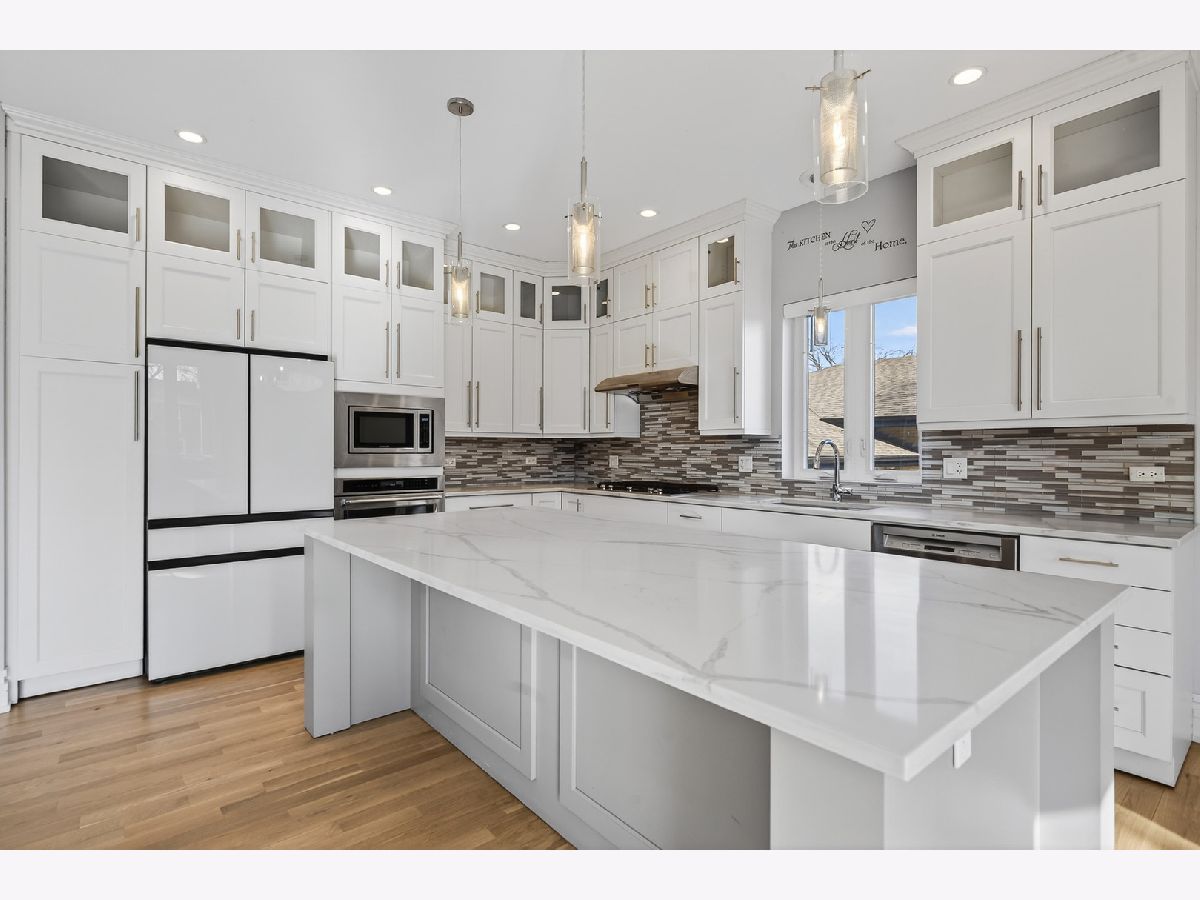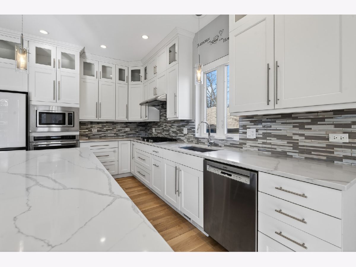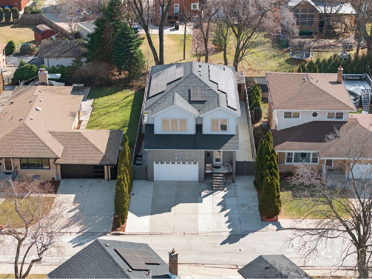 Welcome to this stunning newer construction 5-Bed/4.5-Bth home in the Edgebrook School District! As you enter, a large, open living room, dining room and kitchen greet you. Gorgeous hardwood floors flow throughout the home, complemented by recessed lighting and modern fixtures. The kitchen is any home chef's dream, featuring a large island, breakfast bar, a built-in oven and microwave, quartz countertops, white shaker cabinets and a new fridge installed in 2024. Entertaining will be a breeze with this kitchen and a massive living room/dining room! Heading upstairs, you'll find your luxurious Primary suite complete with an en-suite bath featuring double sinks, a soaking tub and a separate European shower plus a large walk-in closet with a custom shelving system. The 2nd level also has 3 additional bedrooms (one of which includes its own en-suite) and another full bath. The finished basement provides even MORE living space! It features a large rec room with a wet-bar, perfect for a game room, media room, playroom or whatever suits your needs. You'll also find the 5th bedroom, another full bath, and the laundry room in the basement. The laundry room was redone in April of 2025 and has a newer washer/dryer. Outside, enjoy multiple outdoor living spaces in your private, fenced-in yard! The composite fence was installed in 2023. There is a balcony/deck off of the kitchen and a patio with a stunning pergola (new in 2023) that includes built-in lights and a ceiling fan - the perfect space to relax on these beautiful summer days. Turf was installed a few years ago, giving your lawn that perfectly manicured look! Attached 2.5 car garage ready for EV charging! There are also 31 solar panels on the house, installed in 2021, giving you peace of mind for your electric bill. You truly can't beat this home or its location, which is close to parks, golf courses, highways, the METRA station, groceries, restaurants and more! Enjoy the suburban feel with an urban vibe. **The premium, private cul-de-sac location is a big plus! **