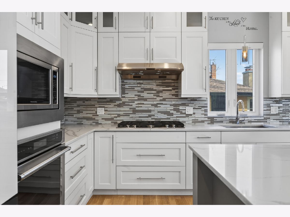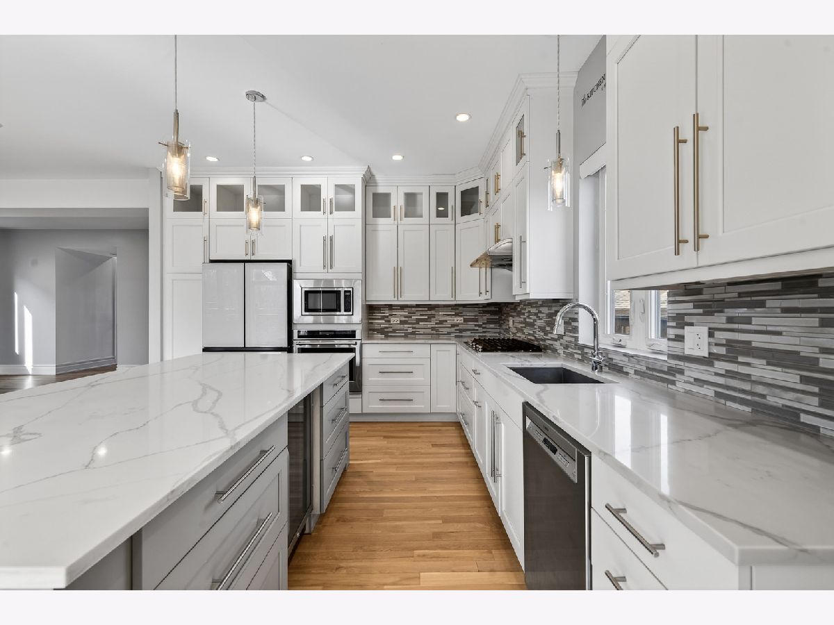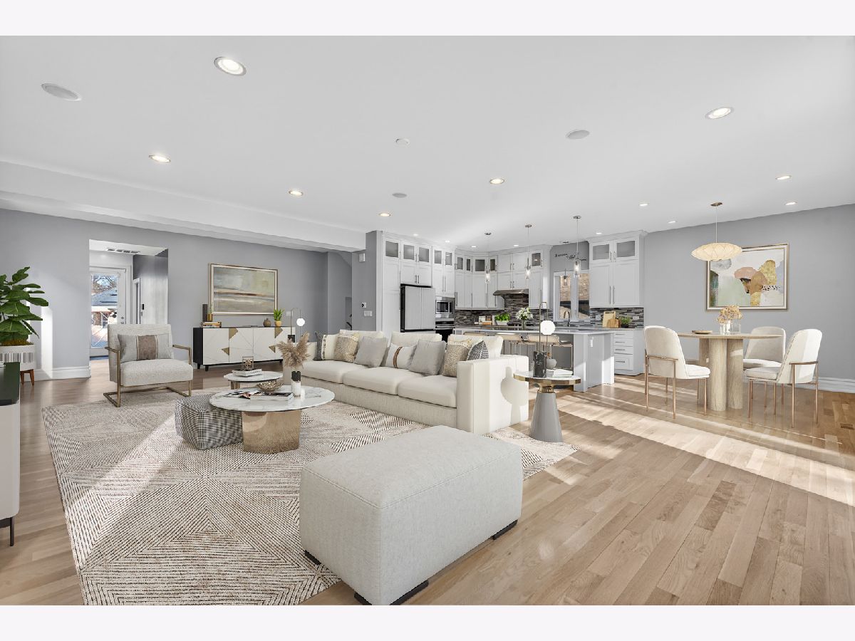 Welcome to this stunning newer construction 5-Bed/4.5-Bth home in the Edgebrook School District! As you enter, a large, open living room, dining room and kitchen greet you. Gorgeous hardwood floors flow throughout the home, complemented by recessed lighting and modern fixtures. The kitchen is any home chef's dream, featuring a large island, breakfast bar, a built-in oven and microwave, quartz countertops, white shaker cabinets and a new fridge installed in 2024. Entertaining will be a breeze with this kitchen and a massive living room/dining room! Heading upstairs, you'll find your luxurious Primary suite complete with an en-suite bath featuring double sinks, a soaking tub and a separate European shower plus a large walk-in closet with a custom shelving system. The 2nd level also has 3 additional bedrooms (one of which includes its own en-suite) and another full bath. The finished basement provides even MORE living space! It features a large rec room with a wet-bar, perfect for a game room, media room, playroom or whatever suits your needs. You'll also find the 5th bedroom, another full bath, and the laundry room in the basement. The laundry room was redone in April of 2025 and has a newer washer/dryer. Outside, enjoy multiple outdoor living spaces in your private, fenced-in yard! The composite fence was installed in 2023. There is a balcony/deck off of the kitchen and a patio with a stunning pergola (new in 2023) that includes built-in lights and a ceiling fan - the perfect space to relax on these beautiful summer days. Turf was installed a few years ago, giving your lawn that perfectly manicured look! Attached 2.5 car garage ready for EV charging! There are also 31 solar panels on the house, installed in 2021, giving you peace of mind for your electric bill. You truly can't beat this home or its location, which is close to parks, golf courses, highways, the METRA station, groceries, restaurants and more! Enjoy the suburban feel with an urban vibe. **The premium, private cul-de-sac location is a big plus! **