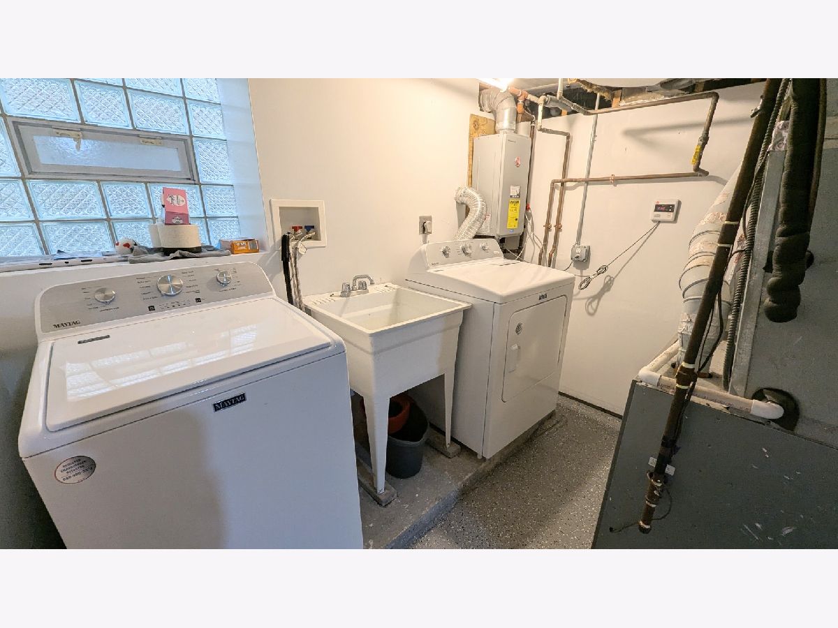 Welcome to 6339 S Troy, located on a tree-lined street in the Chicago Lawn neighborhood. Renovated in 2022, this classic brick bungalow with an extra-wide Chicago lot is sunny, spacious, and in wonderful move-in ready condition, featuring a fully finished walkout basement, newer windows, and a fenced back yard leading to a larger detached garage. The home has four bedrooms, two full baths, entry foyer and enclosed back porch, living room with lovely front sunroom area, separate dining room, and a modern kitchen with fresh white cabinets, granite counters, and newer stainless steel appliances. The main level has a full bath with ceramic tile bathtub, gleaming hardwood floors, custom white trim, and newer lighting. Downstairs is a bedroom, second full bath with shower, separate storage area, and ample second living space for a family room or playroom. The adjacent laundry and utility room feature a tankless water heater. A staircase accessed through the second bedroom allows for easy expansion into the unfinished attic down the line, and is ready for your ideas. This home has been lovingly well-maintained - all you need to do is move in!