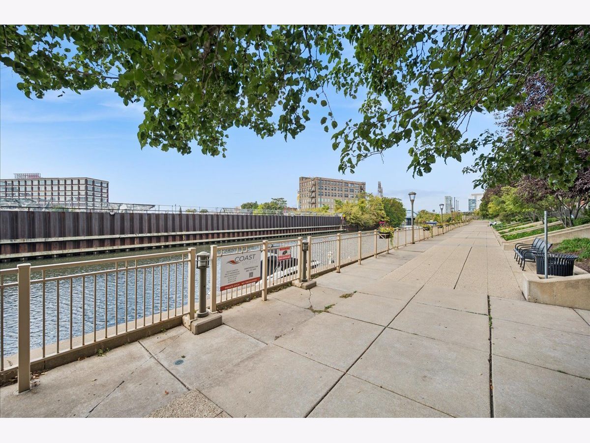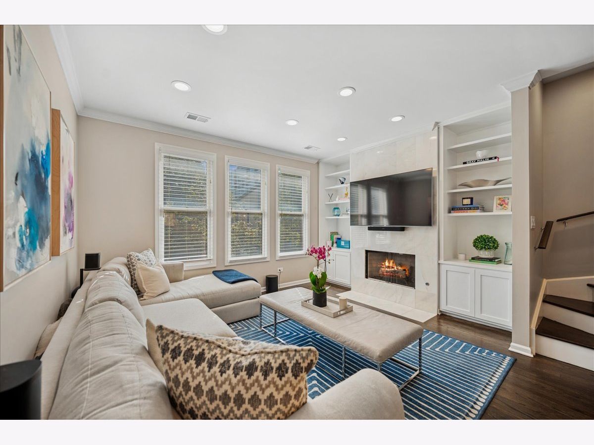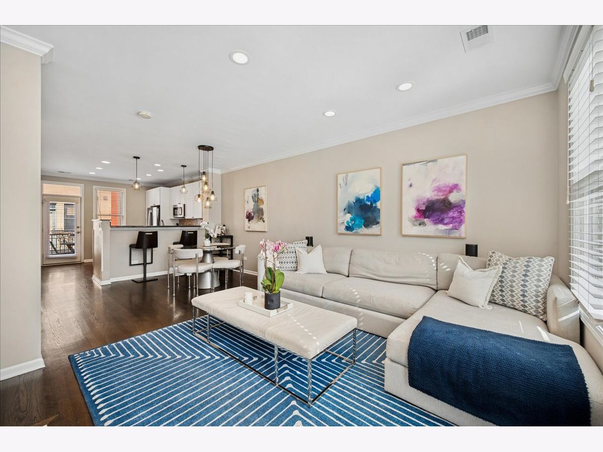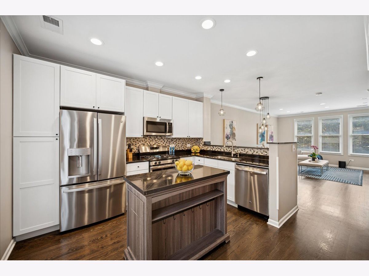 Welcome home to River Village! This stunning 3-bedroom, 3-bath townhome offers three private outdoor spaces and exclusive access to a serene, one-acre park. A gated front patio invites you into a spacious foyer with a coat closet and direct access to the attached 1-car garage - perfect for every Chicago season. This level also includes a flexible third bedroom (ideal for an office, den, or guest suite), a full bath with a stand-up shower, and convenient laundry with extra storage. Upstairs, enjoy a bright, open-concept living area with large windows that flood the space with natural light. The kitchen features stainless steel appliances, white cabinetry, a large pantry, movable island, breakfast bar seating, and stylish pendant lighting. Step out onto the private deck - perfect for grilling or relaxing. The dining area flows seamlessly into a spacious living room with treetop views, custom built-ins, and a cozy gas fireplace. The primary suite offers a peaceful retreat with a double vanity and soaking tub. A second bedroom and full bath with a stand-up shower complete this level. Head up to the fourth-floor rooftop deck, featuring a built-in dry bar with beverage fridge - the ideal spot to entertain or unwind while enjoying city views. Located in the Ogden School District and Lincoln Park High School, this home also provides gated Riverwalk access and is just steps from Target, Mariano's, River North restaurants and shops, New City, and more - with easy expressway access.