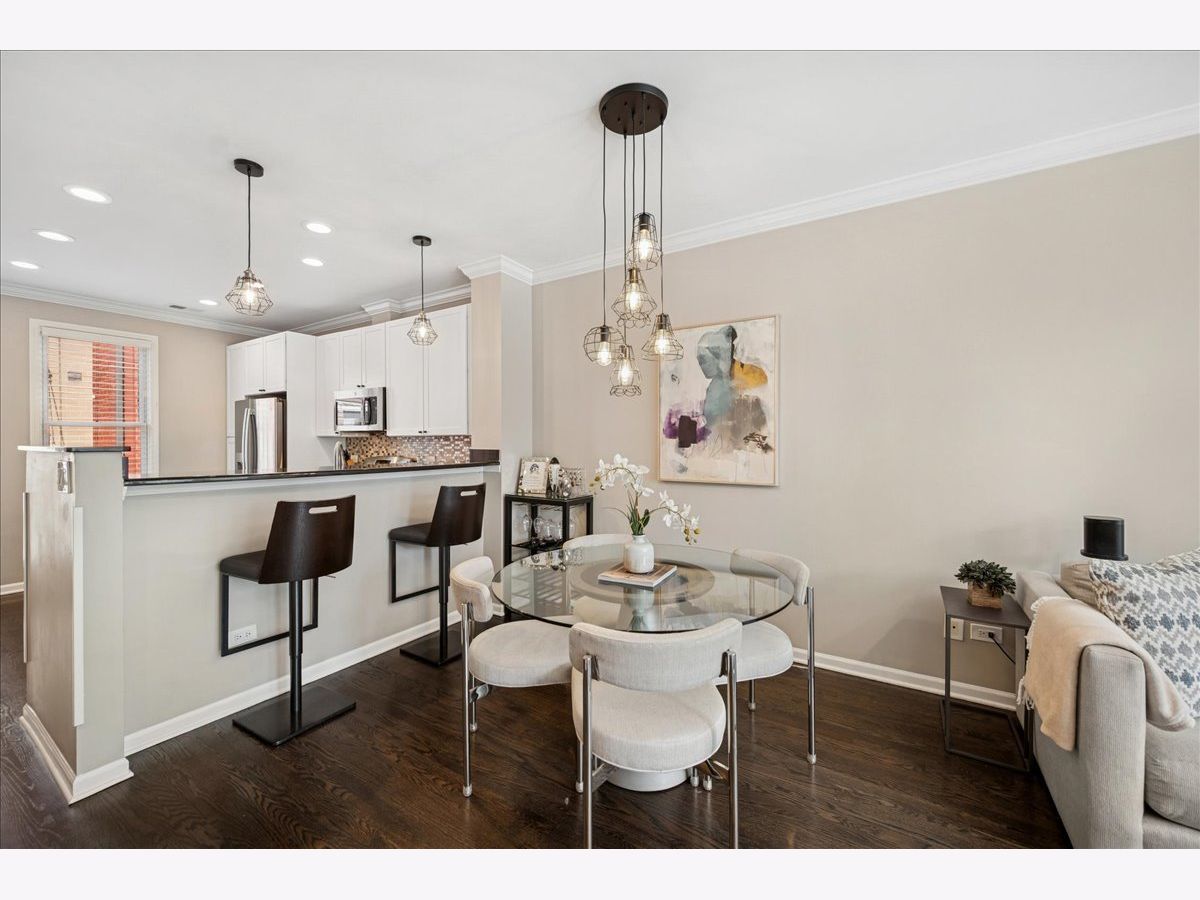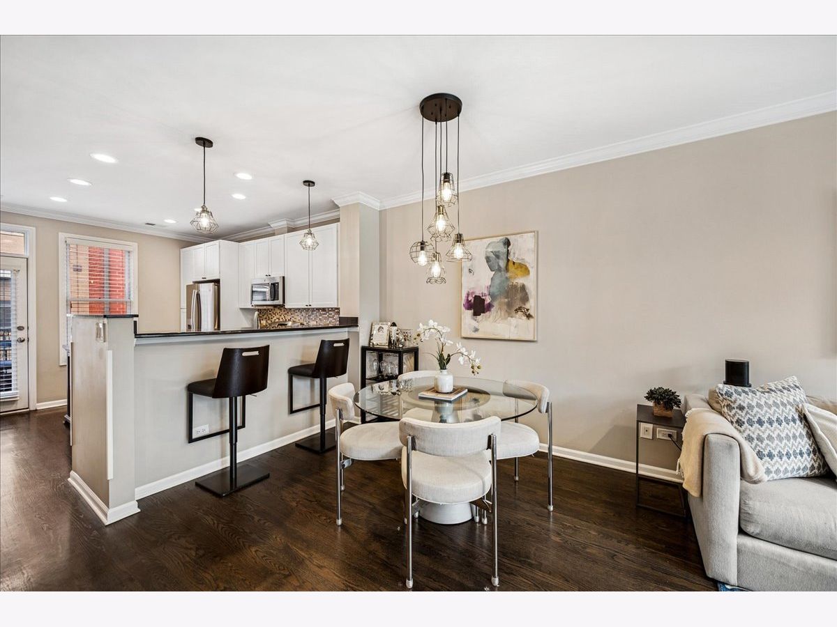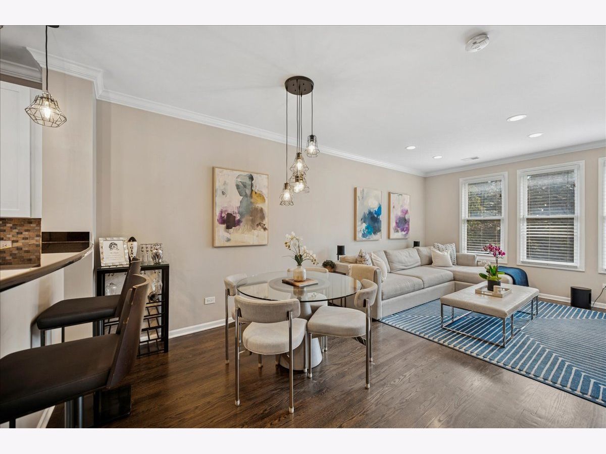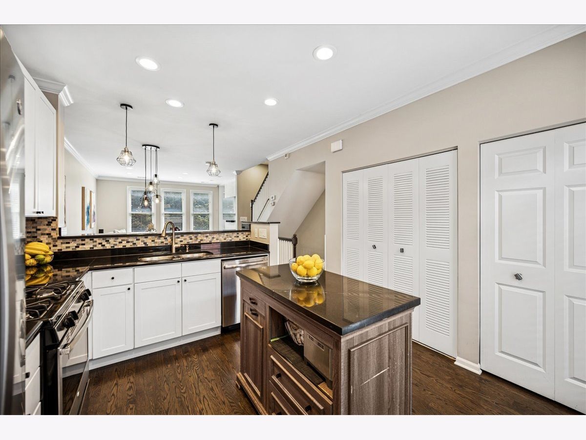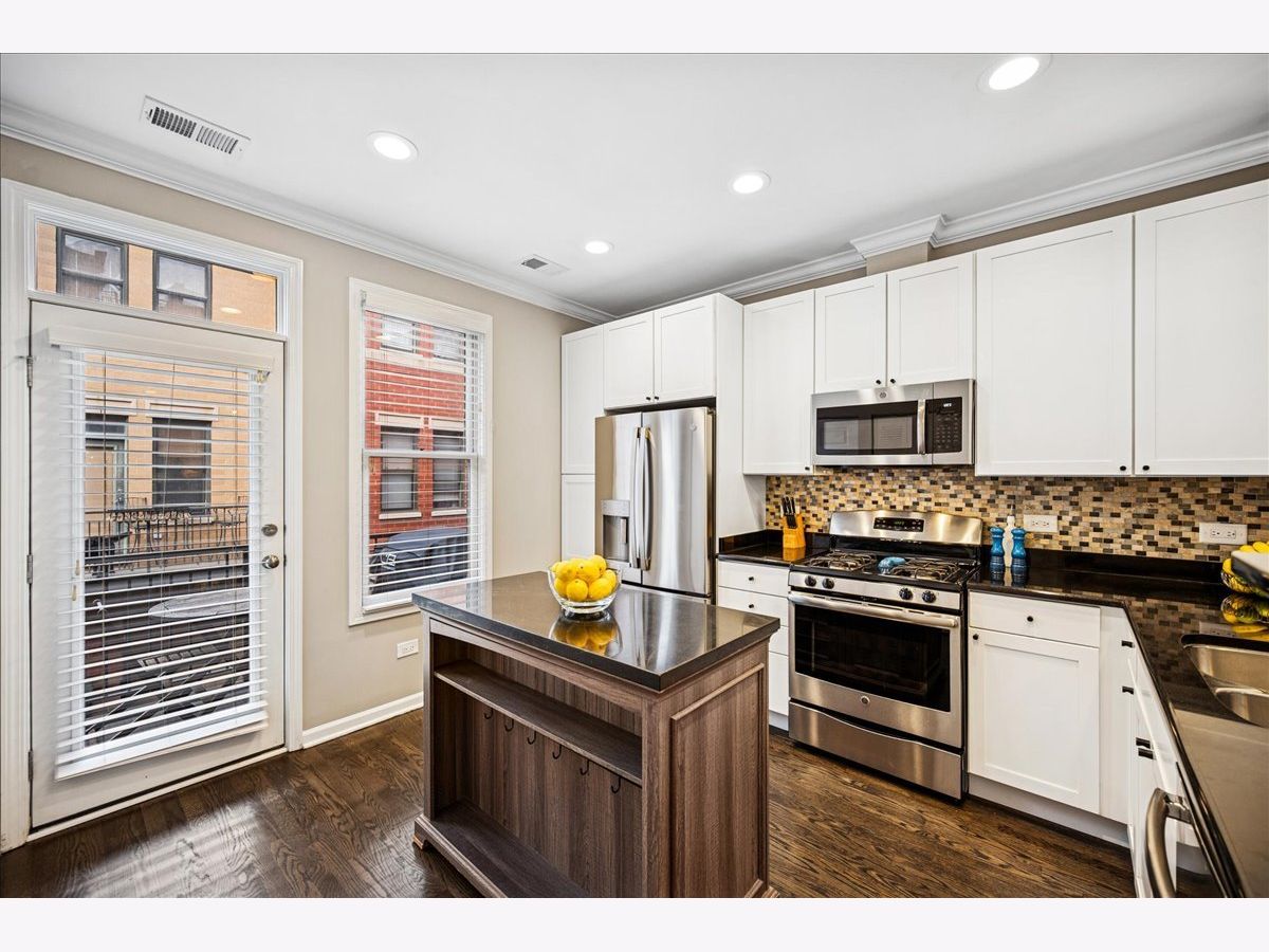 Welcome home to River Village! This stunning 3-bedroom, 3-bath townhome offers three private outdoor spaces and exclusive access to a serene, one-acre park. A gated front patio invites you into a spacious foyer with a coat closet and direct access to the attached 1-car garage - perfect for every Chicago season. This level also includes a flexible third bedroom (ideal for an office, den, or guest suite), a full bath with a stand-up shower, and convenient laundry with extra storage. Upstairs, enjoy a bright, open-concept living area with large windows that flood the space with natural light. The kitchen features stainless steel appliances, white cabinetry, a large pantry, movable island, breakfast bar seating, and stylish pendant lighting. Step out onto the private deck - perfect for grilling or relaxing. The dining area flows seamlessly into a spacious living room with treetop views, custom built-ins, and a cozy gas fireplace. The primary suite offers a peaceful retreat with a double vanity and soaking tub. A second bedroom and full bath with a stand-up shower complete this level. Head up to the fourth-floor rooftop deck, featuring a built-in dry bar with beverage fridge - the ideal spot to entertain or unwind while enjoying city views. Located in the Ogden School District and Lincoln Park High School, this home also provides gated Riverwalk access and is just steps from Target, Mariano's, River North restaurants and shops, New City, and more - with easy expressway access.