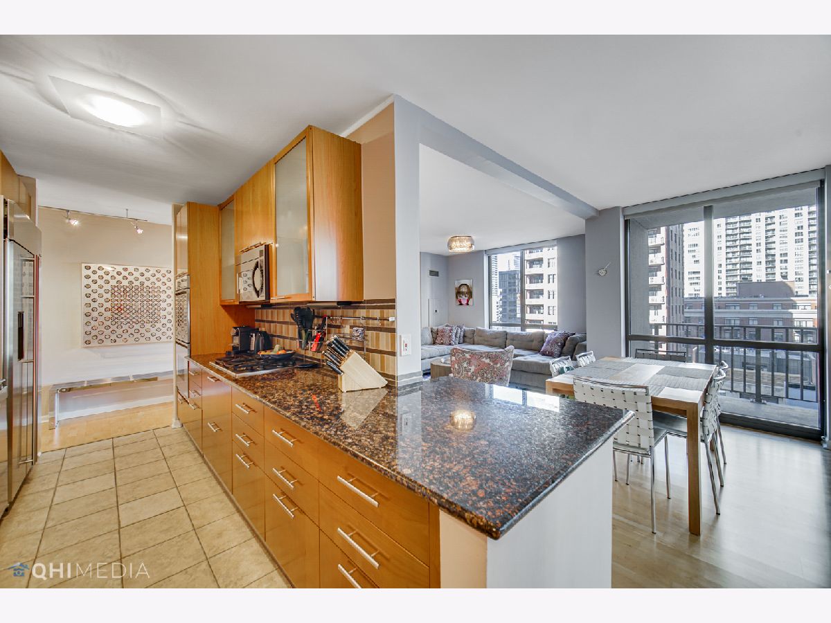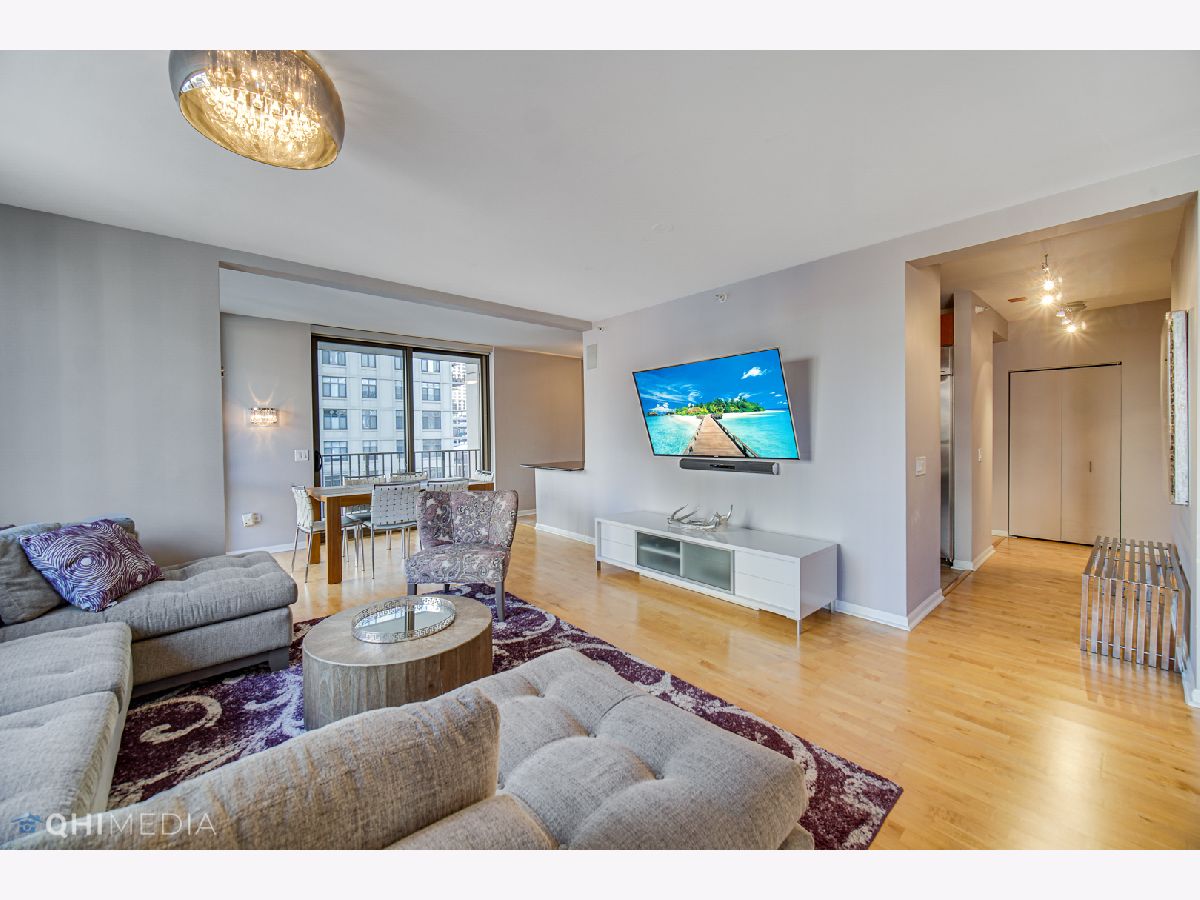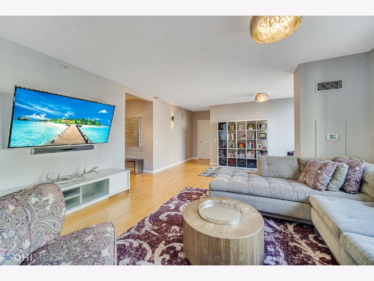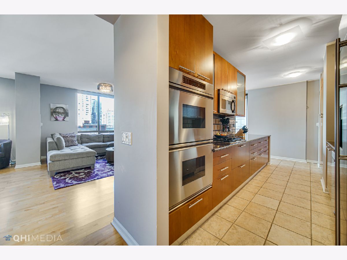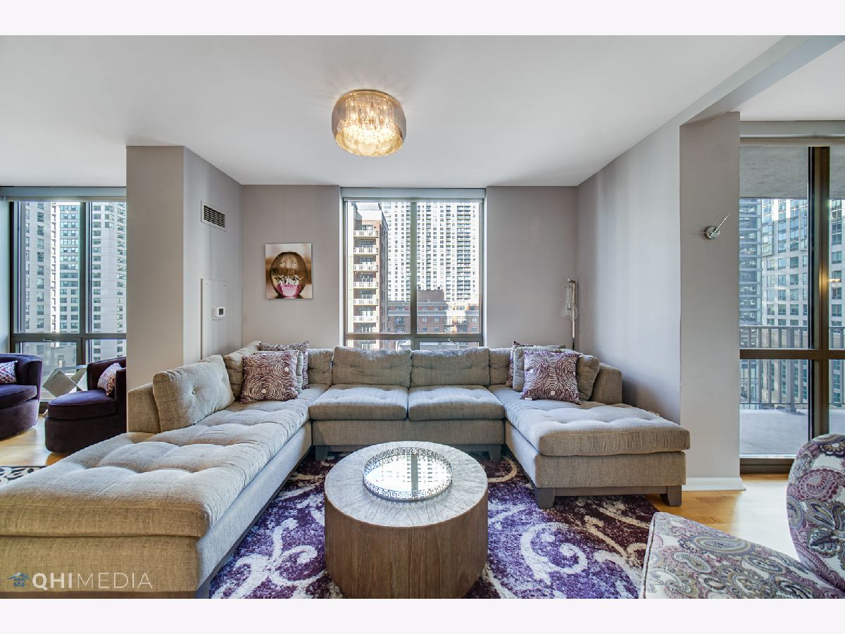 Spacious and immaculate 3 bedroom / 2 bathroom - 2000sq ft - with 2 outdoor spaces adding an additional 120 sq ft - expanded living and bedroom areas with hardwood floors throughout. Chef's kitchen features upgraded Italian Scavolini cabinets and Dacor double oven, beautiful tile backsplash, and plenty of counter space. The kitchen opens graciously to the dining, living/family room area. Living/Family room is spacious enough for a play area, grand piano, or den/office. Wrap around balcony off the living and dining area, large enough for seating, dining, and grilling. Additional balcony off 2nd bedroom, both with north and east city views. Primary bedroom suite offers a spa-like bathroom with double vanity, separate shower, luxurious soaking tub and linen closet. Split bedroom floor plan with 3rd bedroom located on opposite side, ideal for privacy. Four large walk-in custom closets providing ample storage. Laundry closet with large capacity side by side washer/dryer and shelving for storage. Elegant boutique building centrally located in the heart of River North. Steps away from Restaurants & nightlife, Whole Foods, Trader Joes, Jewel, Eataly, CTA Red Line, Michigan Ave shopping and much more. Building with 24 hour door staff, fitness center, guest suite for overnight guests, bike room, and additional storage included. Tandem parking for 2 cars side by side - additional $49k.