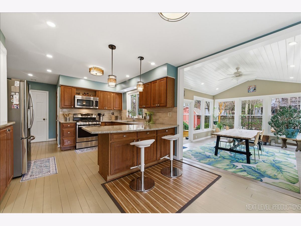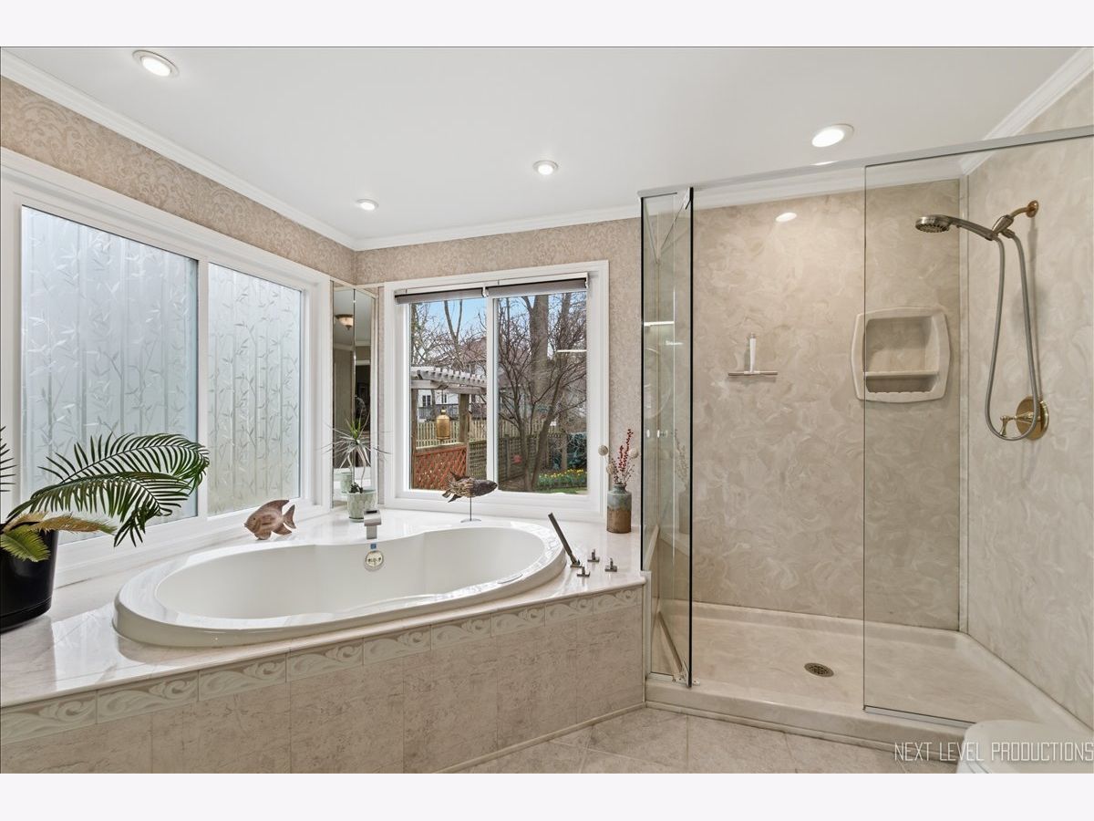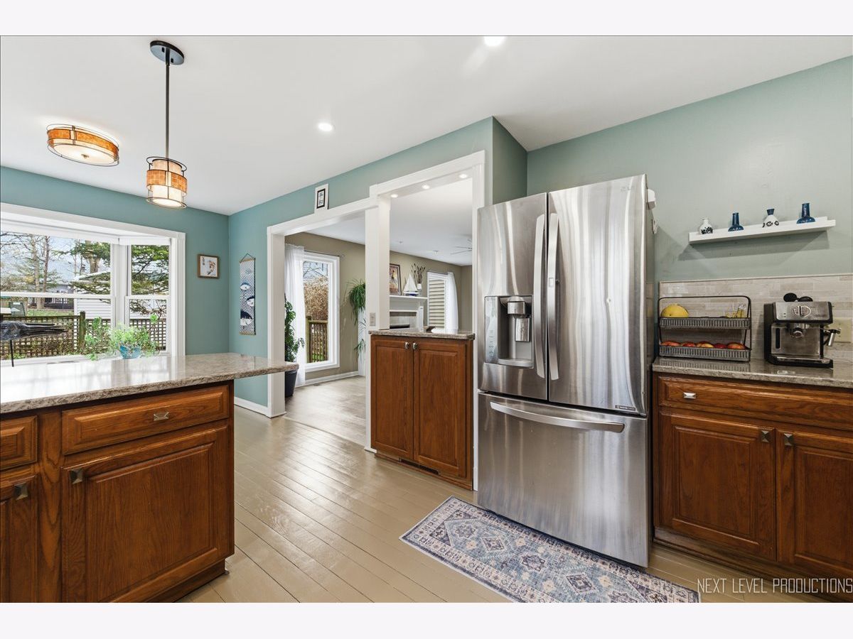 This meticulously maintained 5-bedroom, 3.1-bath home in Brenton Manor is ideal for multigenerational living with a new roof and windows in 2023! The main floor features a primary suite with a luxury bath, perfect for those seeking single-level living or mobility accommodations. A formal foyer leads to a bright family room with a fireplace, flanked by large windows for tons of natural light. The spacious kitchen offers oak cabinetry, quartz countertops, stainless steel appliances, a breakfast bar with drop lighting and pantry closet with pull-outs. Plus, there is a true walk-in butler's pantry off hallway that provides ample storage; a cooks dream, or convert the space back to a main-floor laundry room if desired. Adjacent to the kitchen is a four-season sunroom with a vaulted shiplap ceiling and views of the amazing yard, which features perennial gardens, a waterfall, a koi pond, and a shed. The perfect retreat for entertaining! The second level includes an additional ensuite bedroom, three more spacious bedrooms, and a hall bathroom. The home features fresh paint and updated fixtures throughout, plus a full basement with a recreation room, laundry room, and large workshop. Two-car oversized garage. The location offers easy access to Kirk Road and I-88, and is just minutes to Batavia's downtown riverfront with shopping, dining and access to the Fox Valleys many bike trails.
