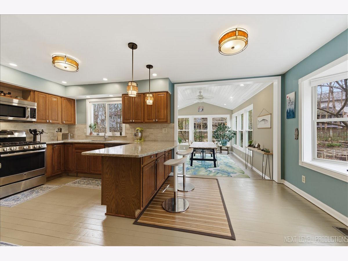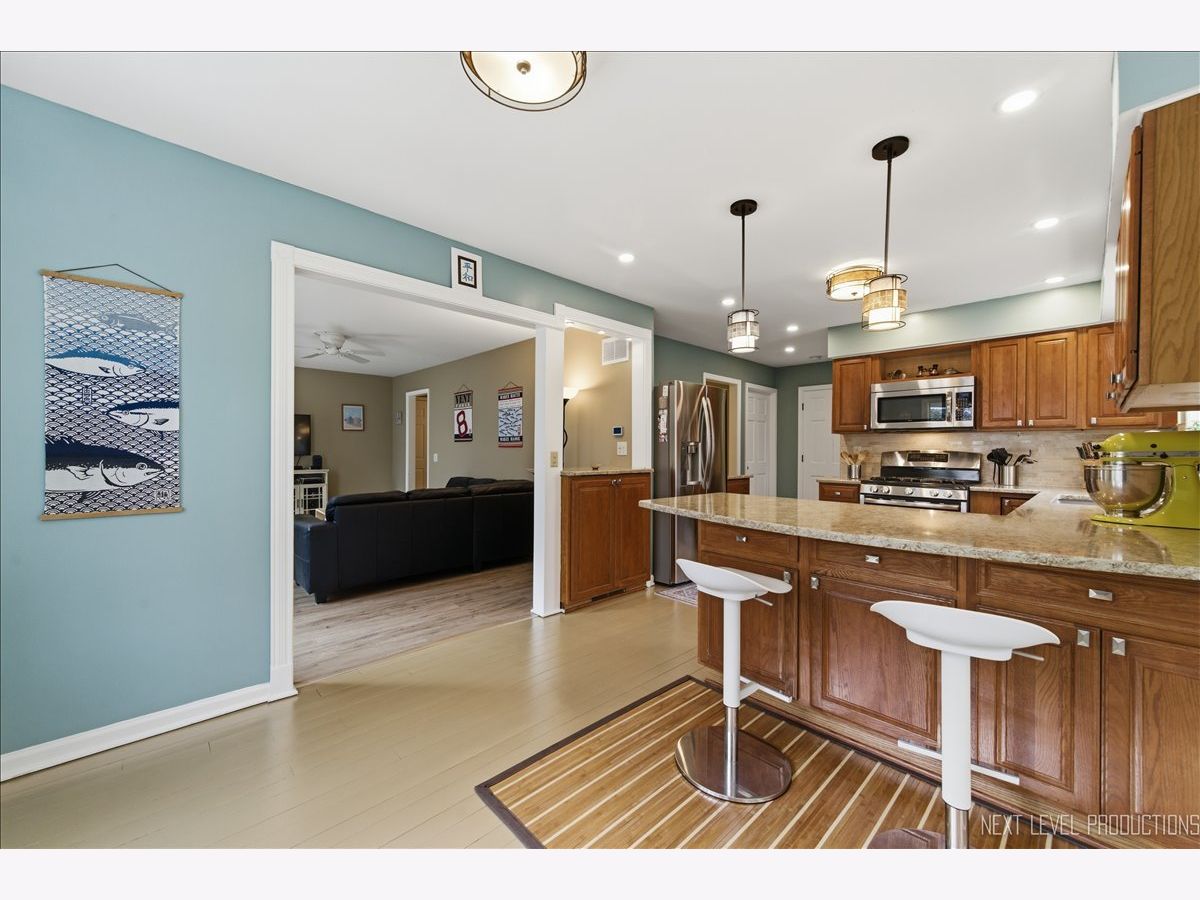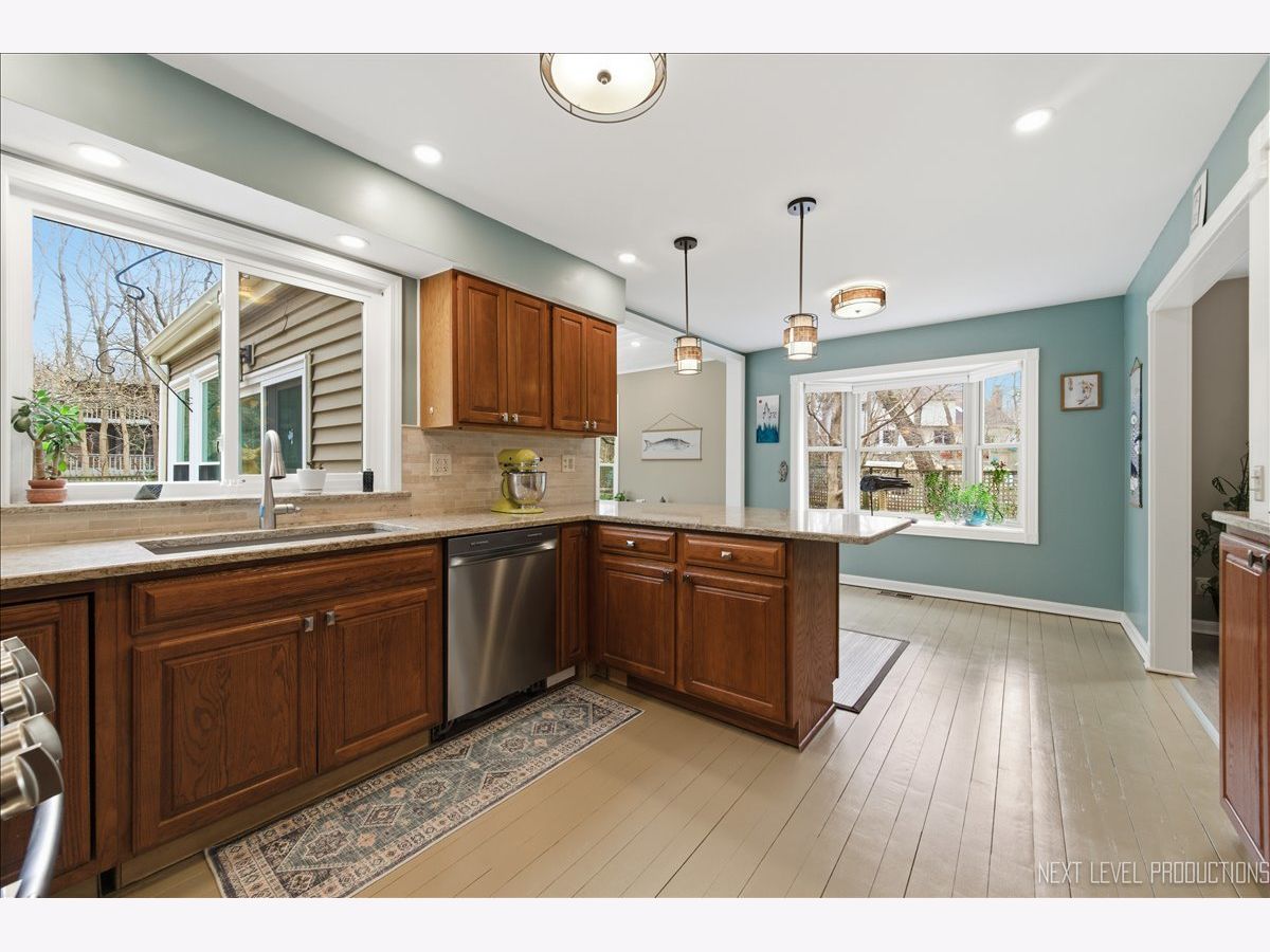 This meticulously maintained 5-bedroom, 3.1-bath home in Brenton Manor is ideal for multigenerational living with a new roof and windows in 2023! The main floor features a primary suite with a luxury bath, perfect for those seeking single-level living or mobility accommodations. A formal foyer leads to a bright family room with a fireplace, flanked by large windows for tons of natural light. The spacious kitchen offers oak cabinetry, quartz countertops, stainless steel appliances, a breakfast bar with drop lighting and pantry closet with pull-outs. Plus, there is a true walk-in butler's pantry off hallway that provides ample storage; a cooks dream, or convert the space back to a main-floor laundry room if desired. Adjacent to the kitchen is a four-season sunroom with a vaulted shiplap ceiling and views of the amazing yard, which features perennial gardens, a waterfall, a koi pond, and a shed. The perfect retreat for entertaining! The second level includes an additional ensuite bedroom, three more spacious bedrooms, and a hall bathroom. The home features fresh paint and updated fixtures throughout, plus a full basement with a recreation room, laundry room, and large workshop. Two-car oversized garage. The location offers easy access to Kirk Road and I-88, and is just minutes to Batavia's downtown riverfront with shopping, dining and access to the Fox Valleys many bike trails.