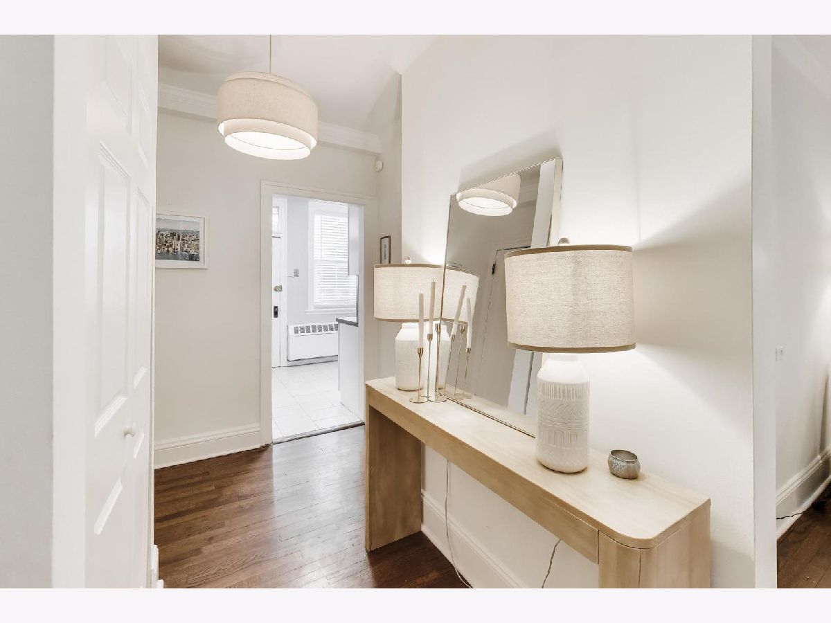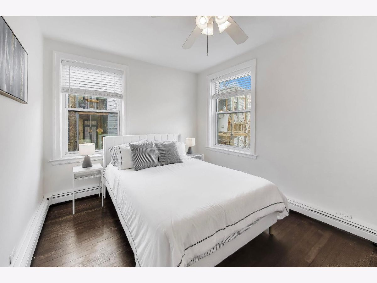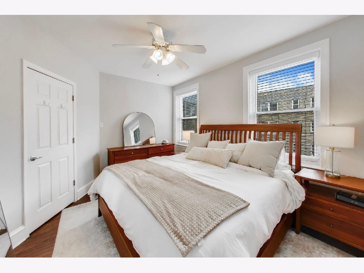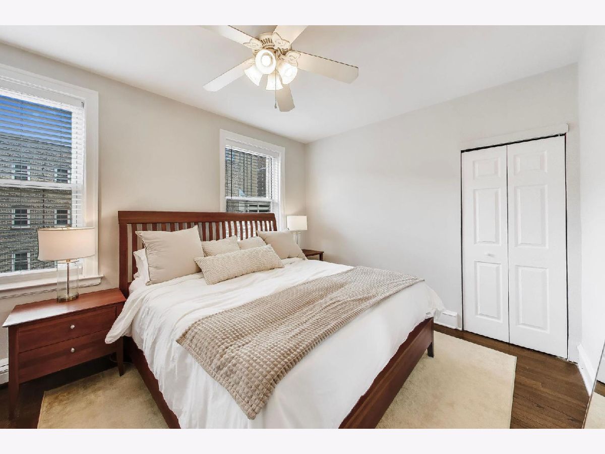 Welcome home to this beautiful 2 bed, 1 bath condo in the heart of East Lakeview. The sunny living area is anchored by the wood-burning fireplace and offers ample room for seating, along with a versatile nook that's perfect for a work-from-home setup, cozy reading space or dining table. South-facing windows overlook the building's landscaped courtyard, filling the room with natural light throughout the day. The large kitchen has been thoughtfully updated with white cabinetry, stainless steel appliances, and direct access to your outdoor space perfect for grilling. Both bedrooms are generously sized with excellent closet space. The bathroom has been recently updated with white subway tile and a new vanity + medicine cabinet. Additional highlights include hardwood floors throughout, abundant storage, and in-unit washer and dryer. Monthly HOA includes heat, cooking gas, high-speed internet, cable, snow removal and professional landscaping. Ideally located just half a block from the lakefront underpass, providing immediate access to the Lakefront Trail, and moments from the best dining, shopping, and transit East Lakeview has to offer. Additional storage and bike room included. Garage parking available at nearby building for $200-300/month. Rental cap of 30% is met.