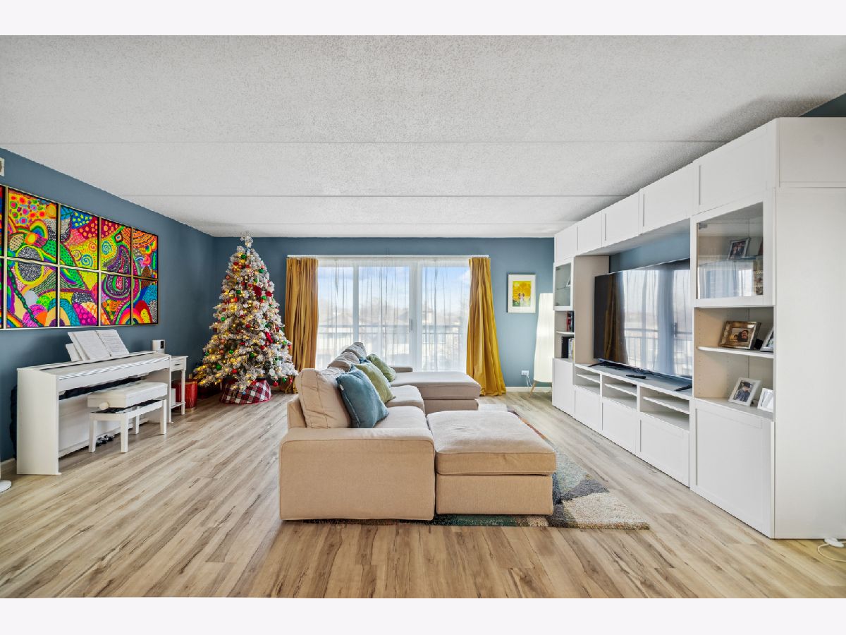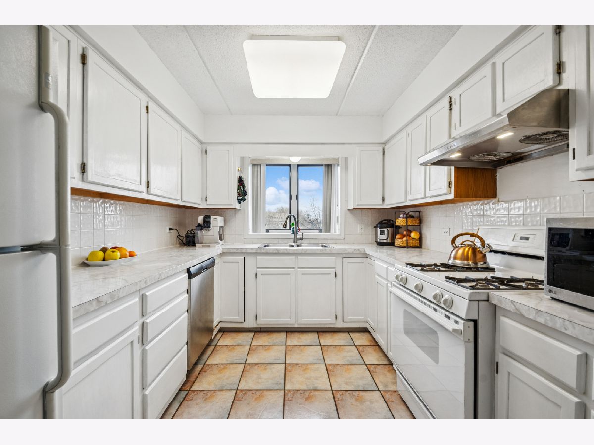 Welcome to this well-maintained 2-bedroom, 2-bath condominium located in the highly sought-after GlenLake community. This spacious unit offers approximately 1,750 square feet of comfortable living space and features vinyl flooring, well-connected living and dining area, and a private balcony. The kitchen offers ample cabinet space, ideal for everyday living and entertaining.The building includes a heated garage parking space (#4), additional guest parking conveniently located in front of the building, an elevator and extra storage space. The building is pet-friendly, and the unit features in-unit laundry for added convenience.Situated in a quiet cul-de-sac community, residents enjoy amenities including a pond with fountain, community pool, and jacuzzi, all within a well-kept and professionally managed association.Ideally located just minutes from I-90/I-94, CTA buses, the Blue Line, and O'Hare Airport, with easy access to Harlem Irving Plaza, the Rosemont Entertainment District, parks, restaurants, shopping, and within walking distance to grocery stores, Wright College, and other neighborhood amenities.