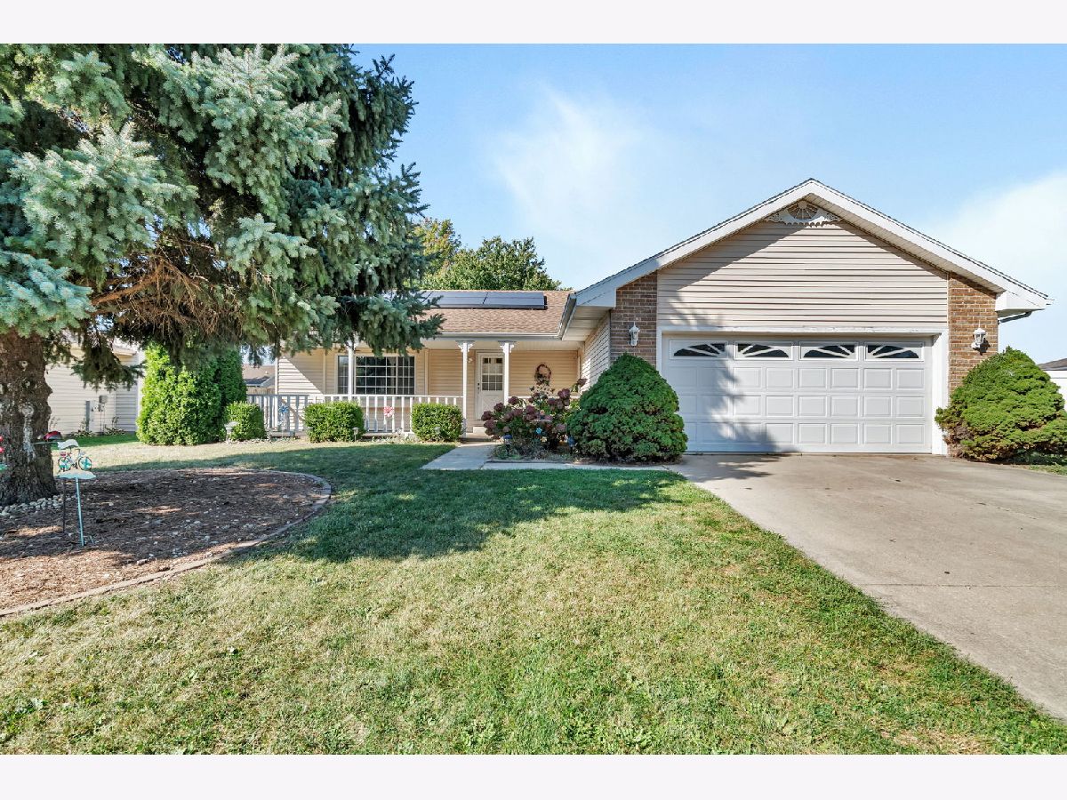 Beautiful maintenance free brick and vinyl ranch with 3 bedrooms, 2 baths, 2 car garage and spacious back yard. Cozy three season room leading out to the back yard through sliding glass doors. The kitchen has lots of counter space and cabinets. The main bedroom has its own bath with walk in shower & walk in closet. The picture window has two slides to allow the breeze to flow on summer days. This home has a newer water heater, stainless steel appliances. Solar panels are leased. Buyer has the option or renew lease, buy panels or have them removed at the end of the lease. Yard ornaments, freezer, and shelving unites in garage are not staying.