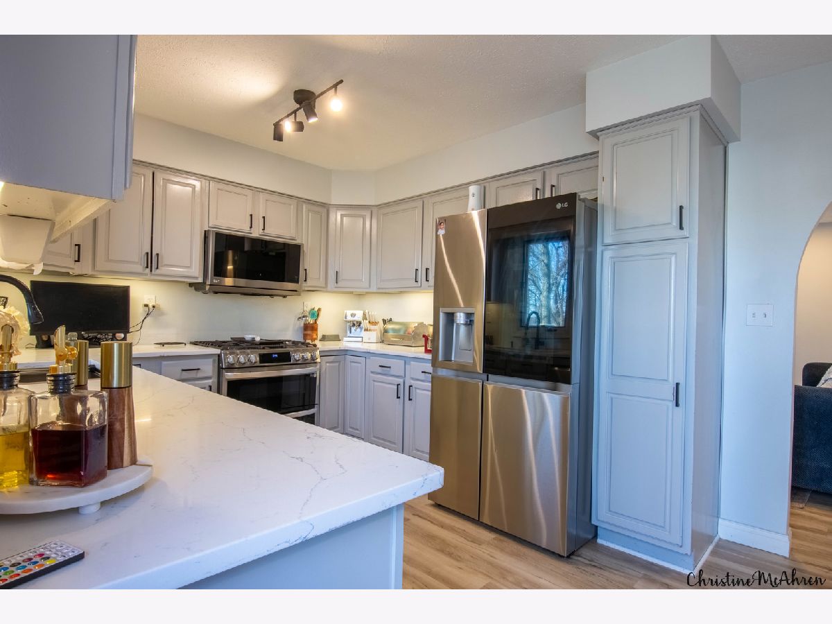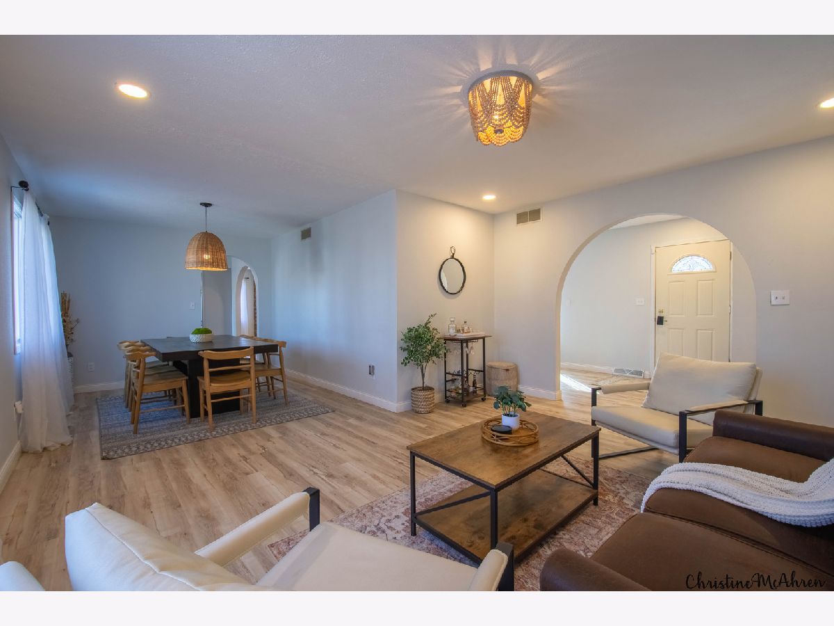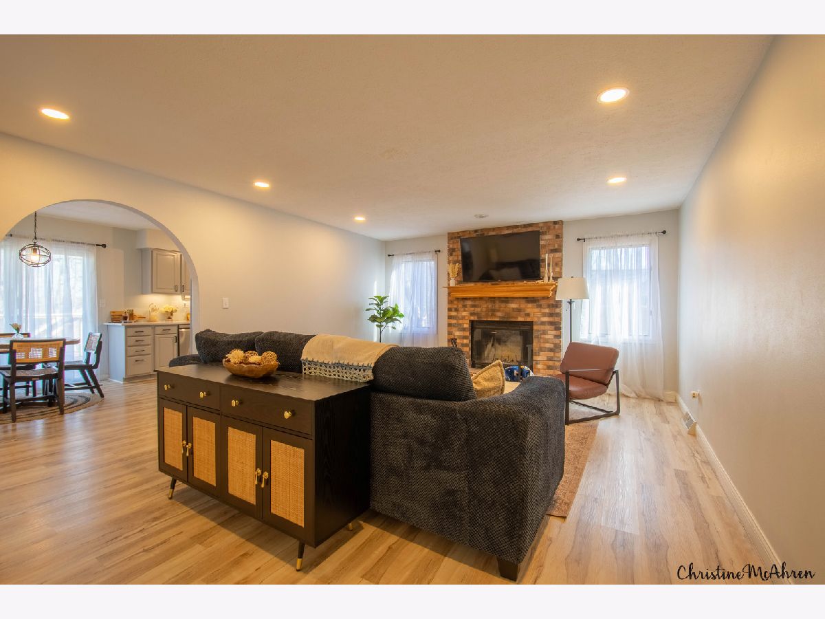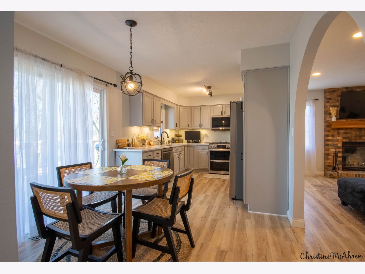 Beautifully updated ranch home on a private wooded lot just under half an acre in Rockford's desirable Old Oaks subdivision! This spacious home offers nearly 2,000 sq ft on the main level plus a finished walk-out basement, providing plenty of room for everyday living and entertaining. The main floor features all-new luxury wood-vinyl flooring, fresh paint throughout, and a fully updated kitchen with stainless steel LG ThinQ appliances. The welcoming foyer includes an open face closet with hooks and cubbies for convenient organization. Elegant arched doorways lead into the living room, dining room, kitchen, and family room, creating a warm and inviting layout. The primary suite includes a large walk-in closet and a private ensuite with double sinks. Two additional bedrooms and a full hall bath with tub/shower combo complete the main level. A first-floor laundry room with ample cabinetry and countertop space adds everyday convenience. The finished walk-out lower level offers exceptional additional living space, including a large recreation room, a second family room with sliding doors to the patio, a cozy wood-burning stove, a fourth bedroom or office with built-in bookshelves, an exercise room, a craft room with a large concrete utility sink, a workshop, and plenty of storage. Outdoor living is just as impressive with a new maintenance-free deck overlooking the backyard, plus a newly expanded concrete patio with a built-in fire pit-perfect for entertaining. The large yard has been partially cleared to create a great play area while still maintaining privacy from mature trees. Additional updates include a newer roof, updated flooring throughout, and numerous interior improvements. This home truly offers space, updates, and a beautiful setting while still being conveniently located near shopping, dining, and major roadways.