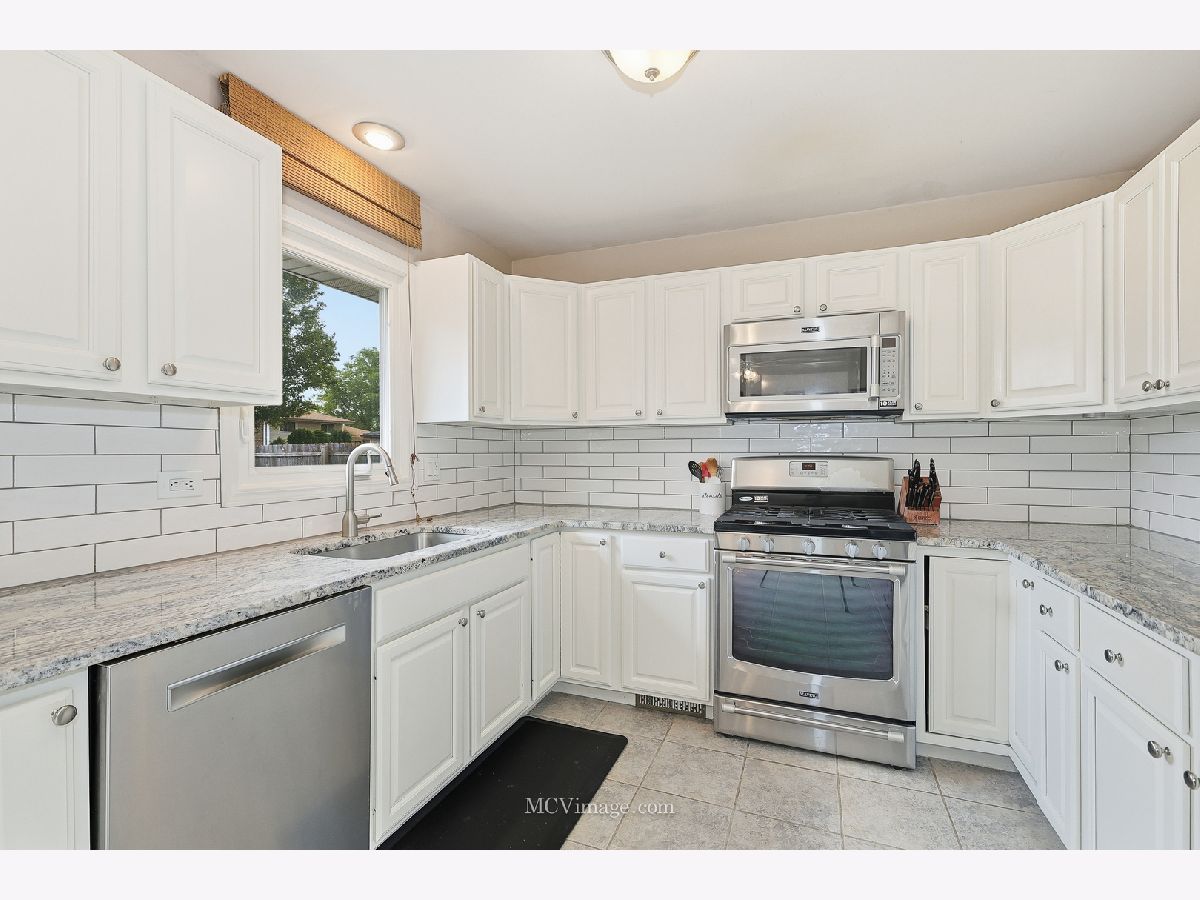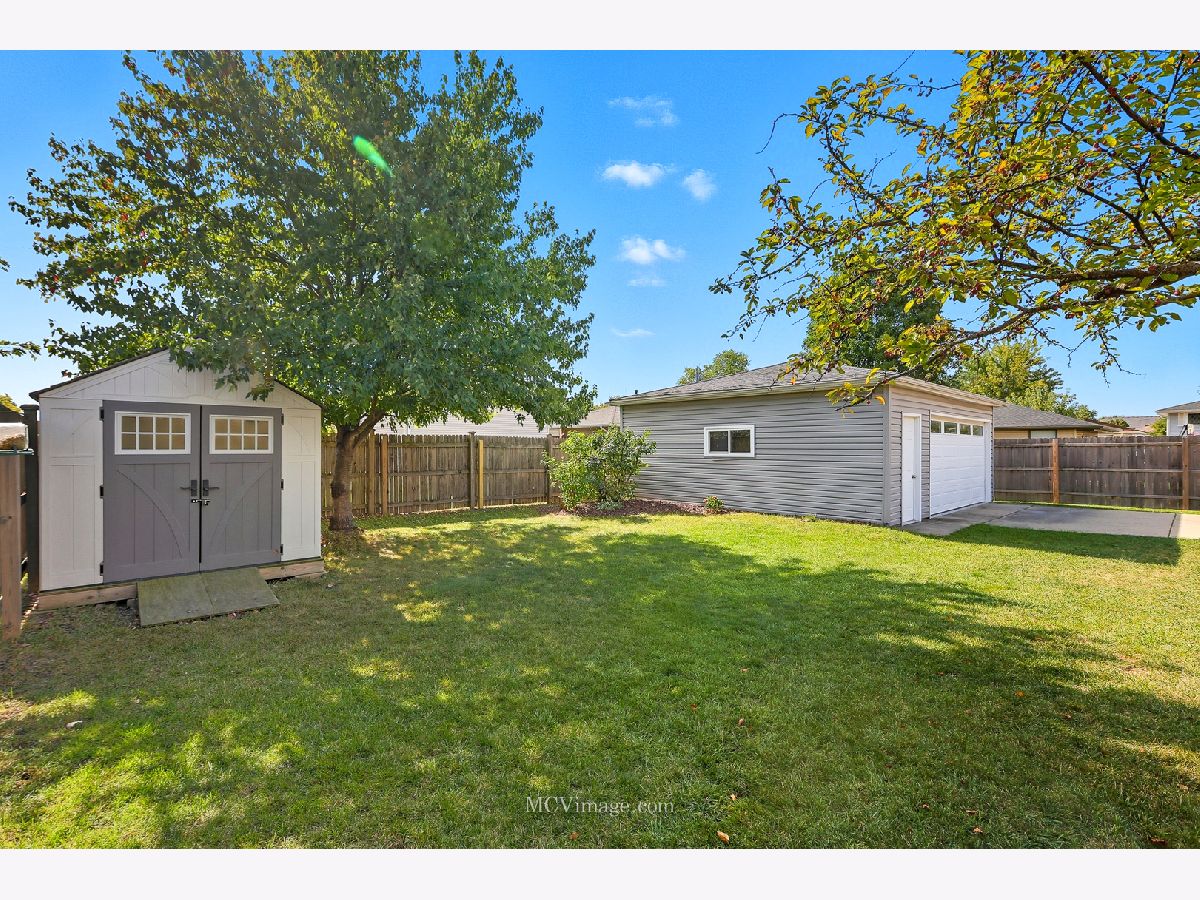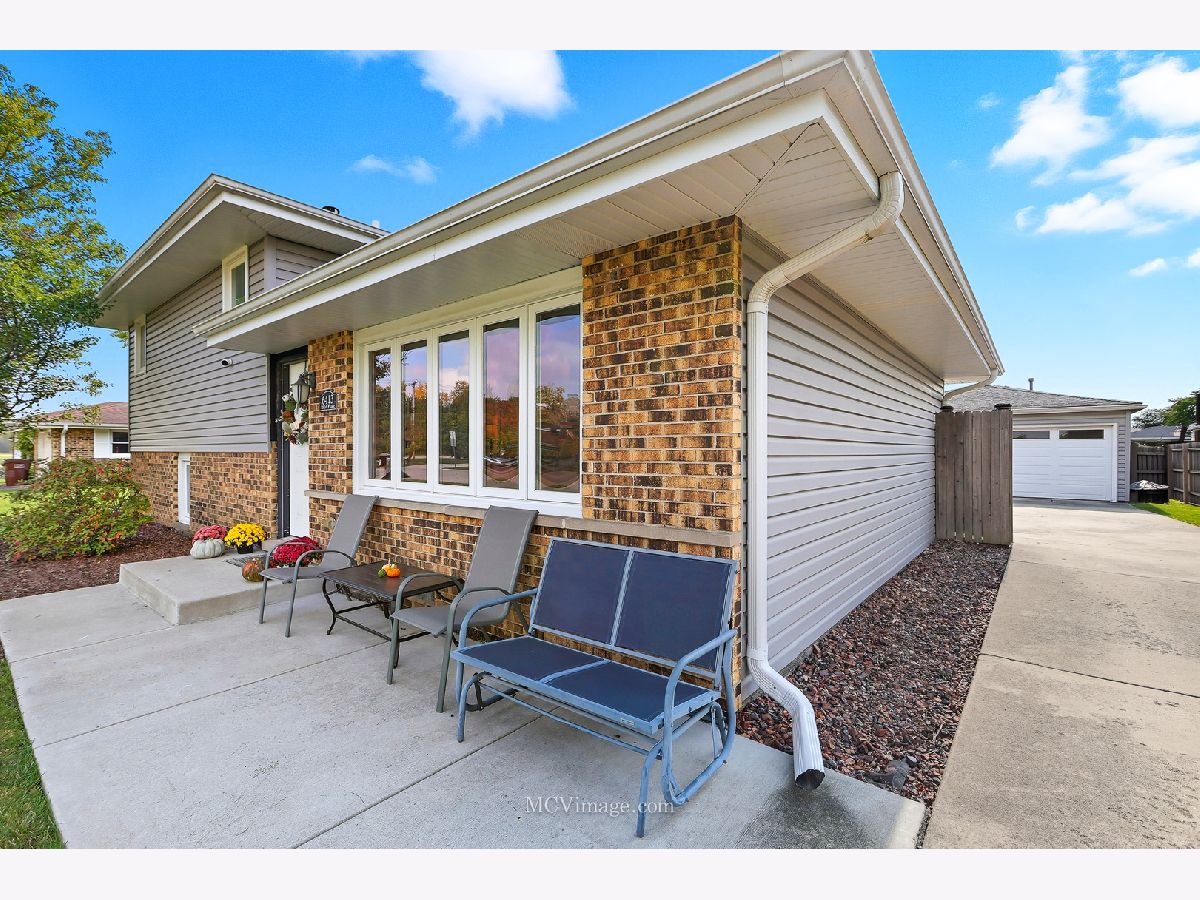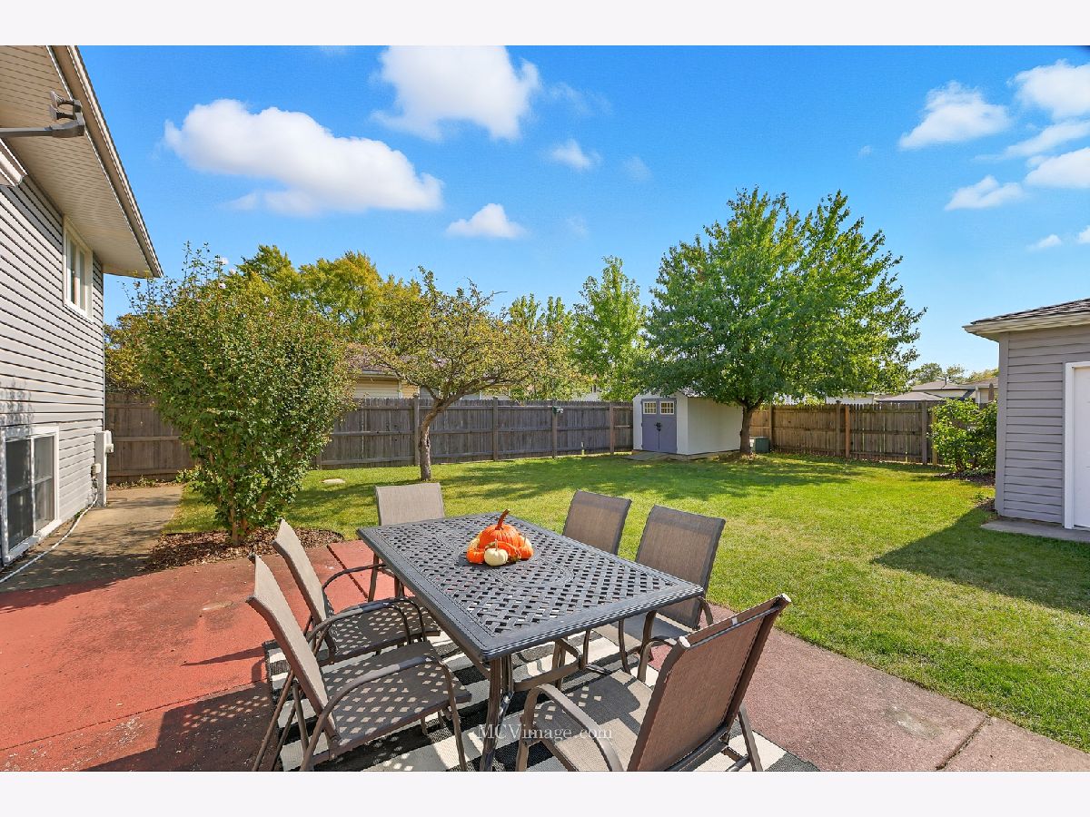Picture Perfect...Bursting with curb appeal and loaded with upgrades this 3 bedroom split level is situated in the heart of Tinley. Filled with natural light along with beautiful hardwood flooring flowing from the spacious living room through the upper level. The freshly remodeled eat-in kitchen features painted white cabinetry, granite c-tops, a subway tile backsplash and newer stainless appliances along with a sliding door leading to the outdoor patio. Open to the lower level family room where you'll enjoy the gorgeous fireplace wrapped in marble and a custom wood surround. The built-in beverage center with mini fridge provides a convenient place to gather while the lower level office adds a dedicated space for so many uses. Both bathrooms (one upstairs and one in the lower level) have both been updated. All 3 bedrooms feature hardwood flooring, ceiling fans and wood blinds including the master with a custom wall to wall built-in closet system providing a ton of storage. Neutral paint along with white trim and 2-panel doors complete the modern look. So many major updates include...HVAC in 2024...Roof and siding new in 2017...water heater, washer, dryer and kitchen appliances replaced in 2017. Lower level carpeting new in 2021. Newer maintenance free vinyl windows throughout are in great condition. Don't forget about the spacious and dry concrete crawl space allowing for so much dedicated storage space. So much to offer and enjoy outdoors as well from the fenced-in yard to the oversized concrete patio, plenty of green space and a convenient shed for extra storage. The expanded 2.5 car garage is finished with drywall, 8' ceilings and is heated plus a beautiful epoxy floor has been installed in 2021. A large concrete driveway and a newer front patio area provides the perfect place to relax. Truly a great home in a wonderful location. Come take a look today!