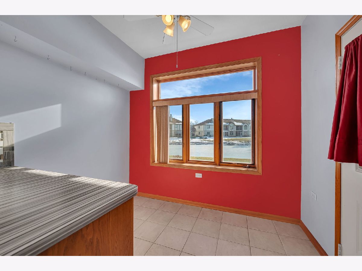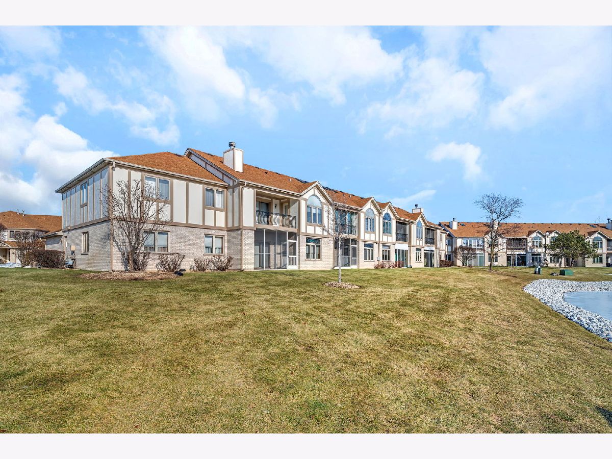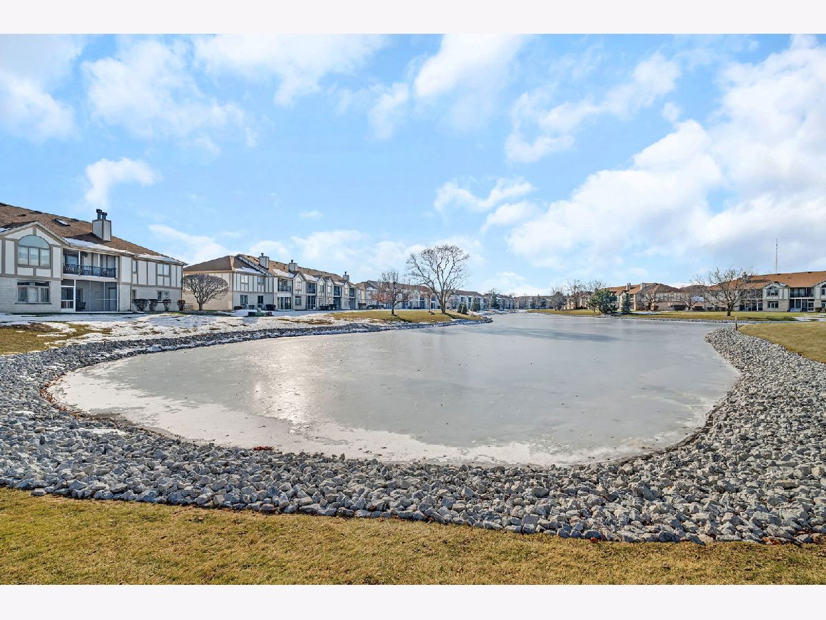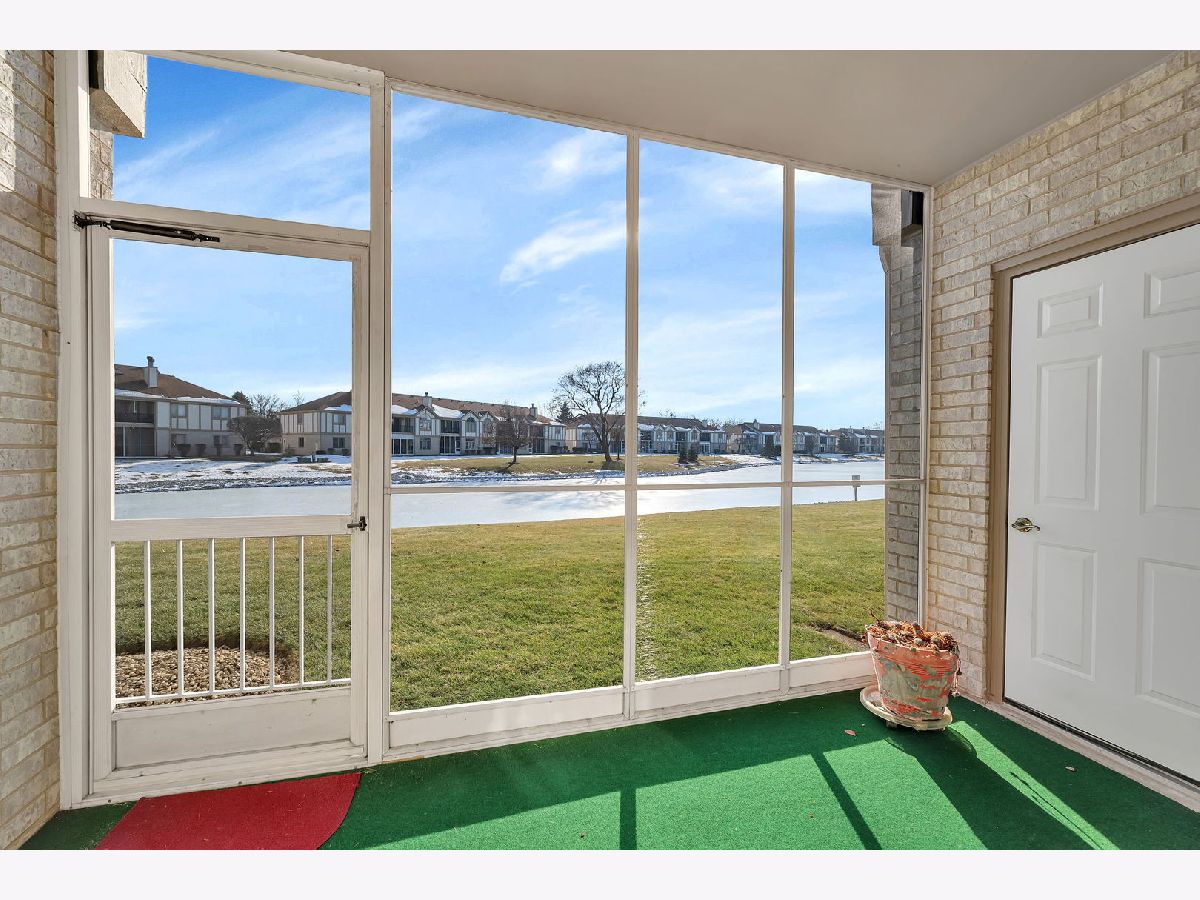 Welcome to this well-maintained two-bedroom, two-bath first-floor condo in Tinley Park, set in a quiet and well-kept building with peaceful pond views. This no-stairs unit offers a bright, open living area filled with natural light and sliding doors leading to a screened-in porch-perfect for relaxing and enjoying the serene setting. The spacious kitchen features ample cabinetry, tile flooring, and a cozy breakfast nook, flowing seamlessly into the dining area for comfortable everyday living. The generously sized primary suite includes a walk-in closet and a private bath equipped with a walk-in tub and grab bars for added convenience. A second bedroom and full bath provide flexibility for guests or a home office. Additional highlights include in-unit laundry, an attached one-car garage, and abundant storage throughout. Located in a peaceful 55+ community, this home offers comfort, functionality, and an inviting atmosphere.