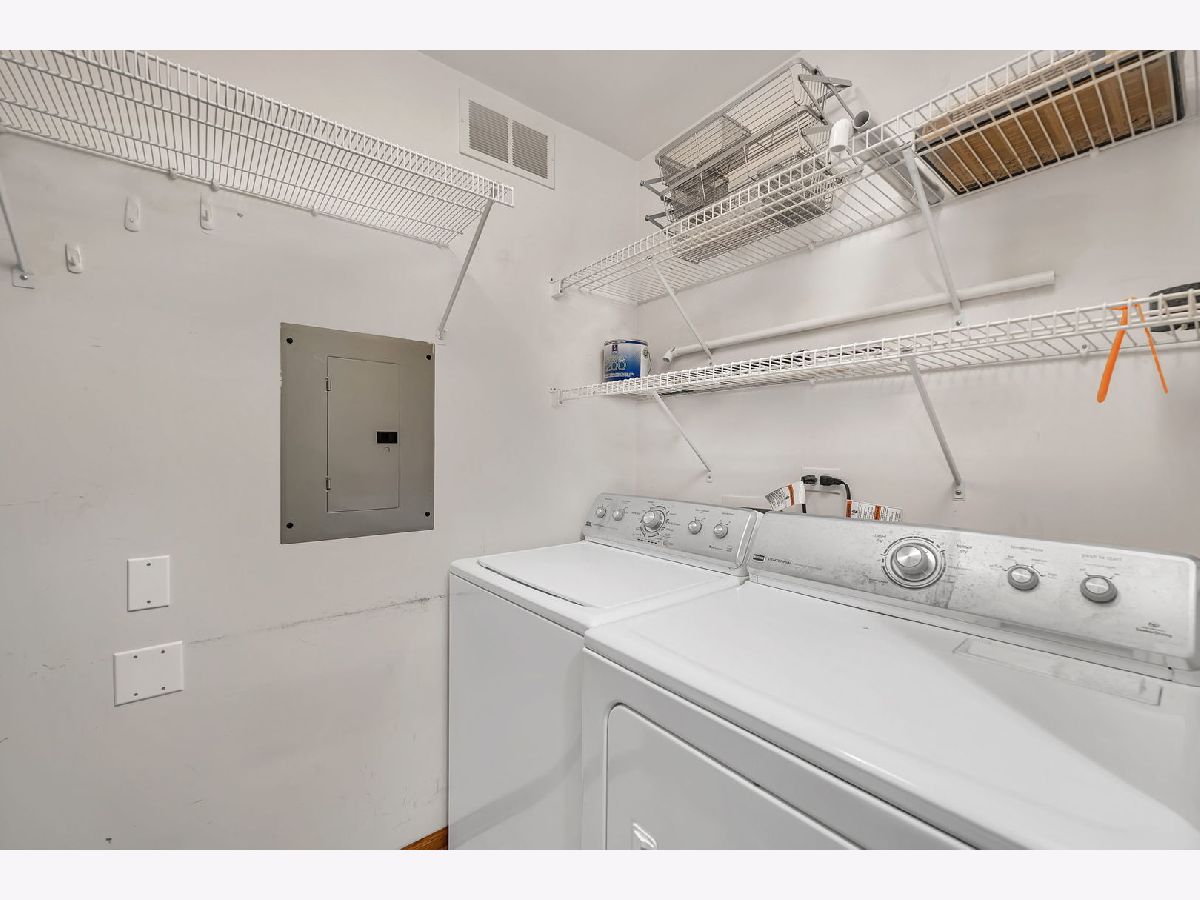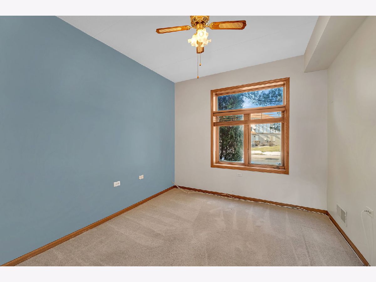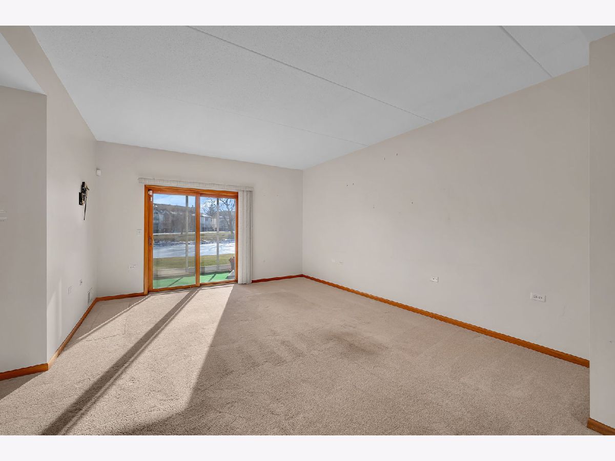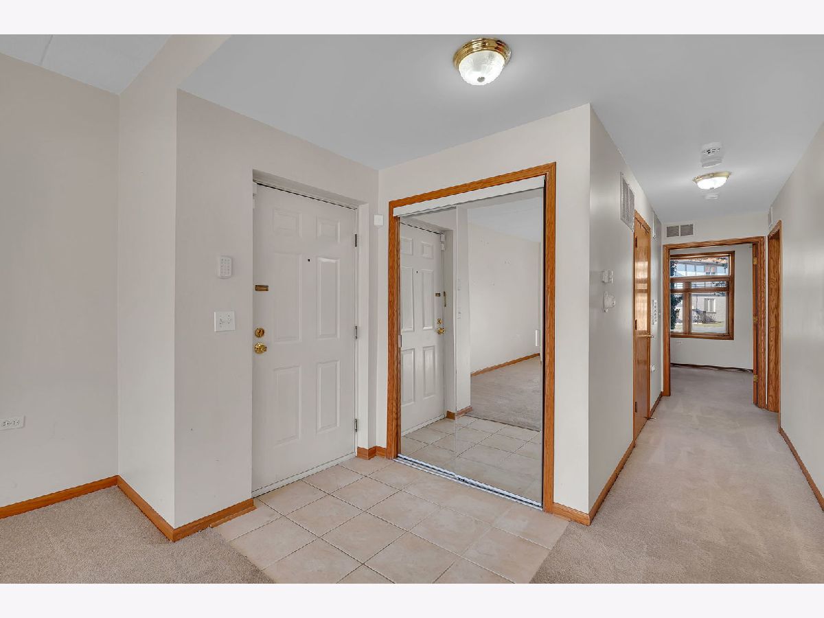 Welcome to this well-maintained two-bedroom, two-bath first-floor condo in Tinley Park, set in a quiet and well-kept building with peaceful pond views. This no-stairs unit offers a bright, open living area filled with natural light and sliding doors leading to a screened-in porch-perfect for relaxing and enjoying the serene setting. The spacious kitchen features ample cabinetry, tile flooring, and a cozy breakfast nook, flowing seamlessly into the dining area for comfortable everyday living. The generously sized primary suite includes a walk-in closet and a private bath equipped with a walk-in tub and grab bars for added convenience. A second bedroom and full bath provide flexibility for guests or a home office. Additional highlights include in-unit laundry, an attached one-car garage, and abundant storage throughout. Located in a peaceful 55+ community, this home offers comfort, functionality, and an inviting atmosphere.