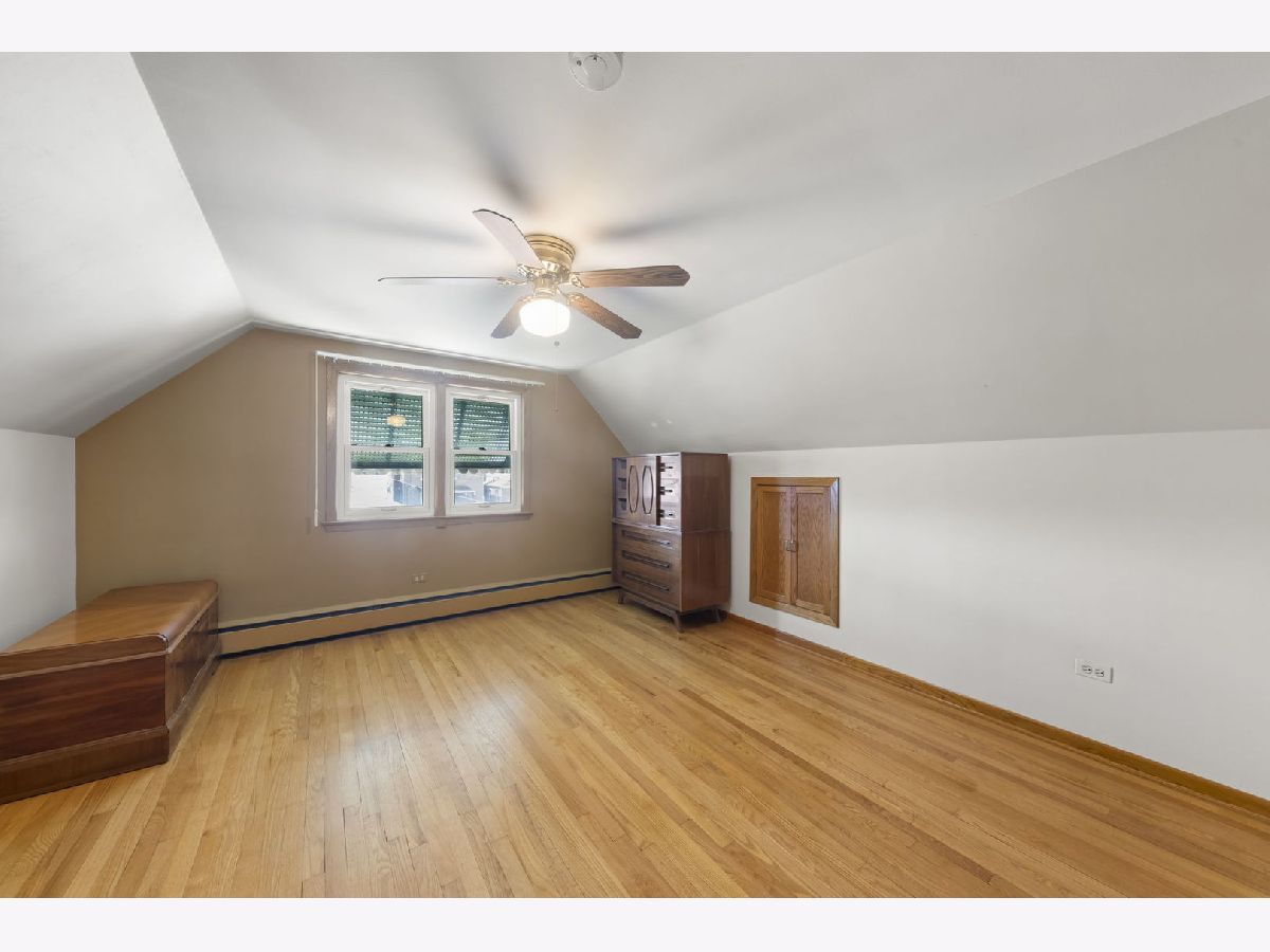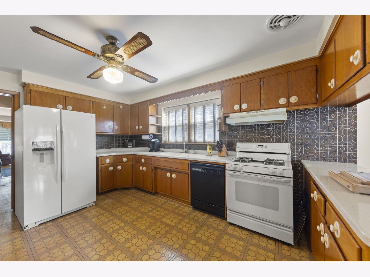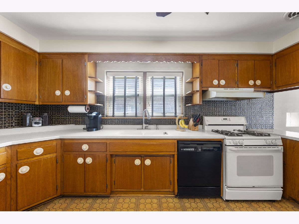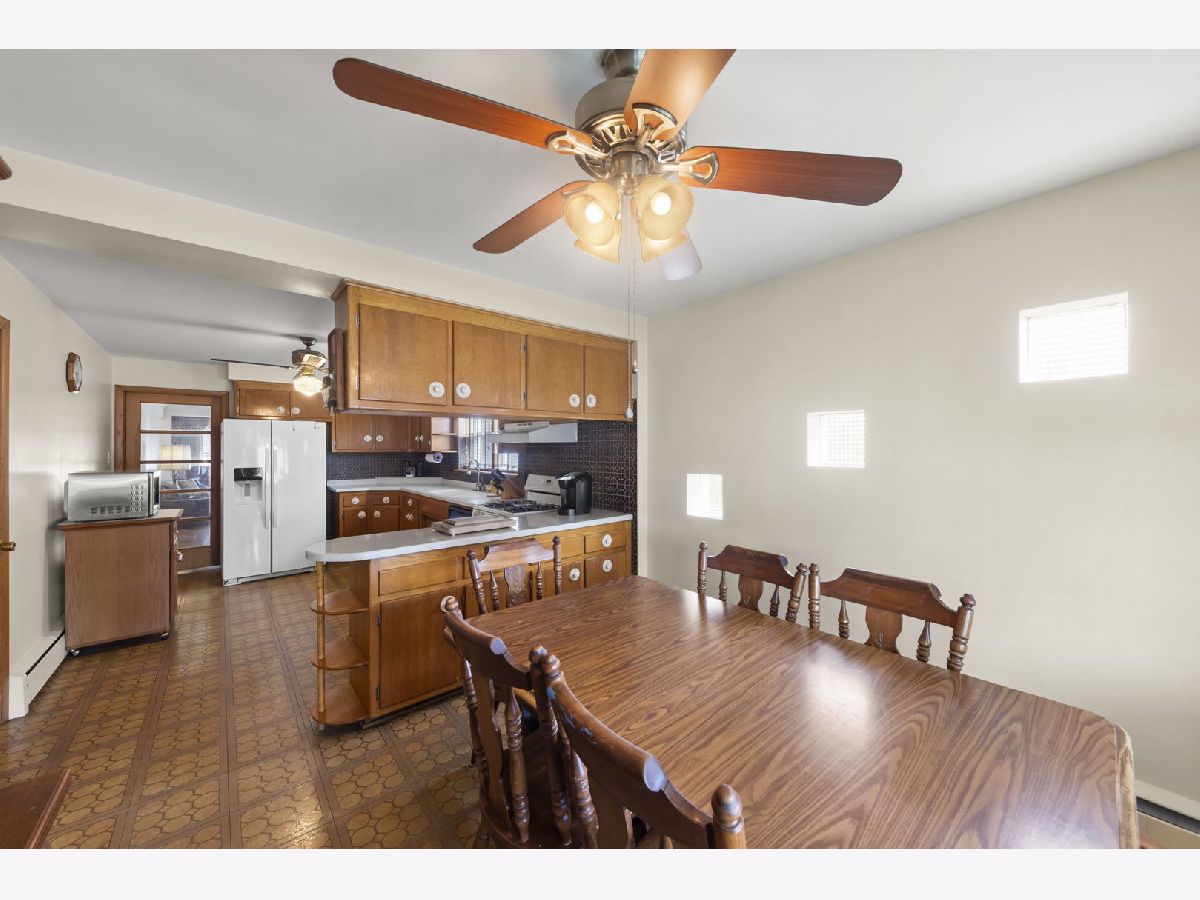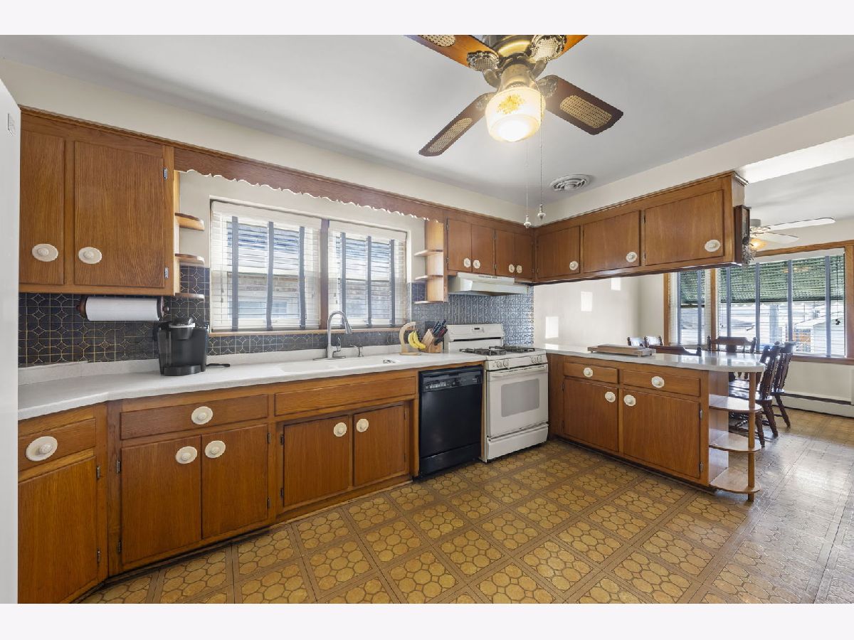 Heart. Be. Still. This is the kind of home that quietly tells a story the moment you arrive-cherished by the same family for 55 years and built with a level of quality and craftsmanship that stands the test of time. With an incredible amount of square footage and thoughtfully placed updated and well insulated windows wrapping the home, natural light pours in from many angles, creating a warm, inviting backdrop for everyday living. A small but mighty front porch welcomes you in, perfect for morning coffee or unwinding at the end of the day. Step through the front door, an architectural sight in itself with striking mid-century modern detail, and you're immediately greeted by hardwood floors that run throughout the first floor. The living room offers a generous footprint, ideal for gathering, while three well-sized bedrooms and a full bath provide functionality. Open the glass-paneled pocket door and discover the true heart of the home: a massive kitchen designed for connection and creativity. With substantial counter space, abundant cabinetry, and a peninsula with cabinets that open from both sides (a rare and thoughtful touch), this space is built for hosting, cooking, and living fully. Architectural details like the timepiece backsplash, scalloped trim around the sink, and open shelving bring character and charm, while a sunny eating area invites conversation. Glass cube windows and a large picture window frame overlook the backyard, flood the space with natural light. A generously sized pantry and ample shelving complete the kitchen's impressive functionality. Each bedroom features deep closets, ensuring storage is never a concern. A centrally located staircase connects the home seamlessly, offering access to a side exterior entrance and leading to the second floor. Upstairs, you'll find a fully functional second living space-complete with its own spacious eat-in kitchen, a large living room with built-in wall storage, and beautifully angled ceilings that add architectural interest. Two additional bedrooms provide even more room for guests, extended living, or flexible use. Outside, the yard is sweet and manageable, with a dedicated garden area ready for your personal touch. A two-car garage adds convenience, while the location ties it all together-just steps to the elementary school, less than a block to West Lawn Park, Fitness Center, pickleball courts, and soccer fields. Enjoy close proximity to shopping, Midway Airport, and easy access to public transportation. This is more than a home-it's a legacy of care, space, and possibility, ready for its next chapter.