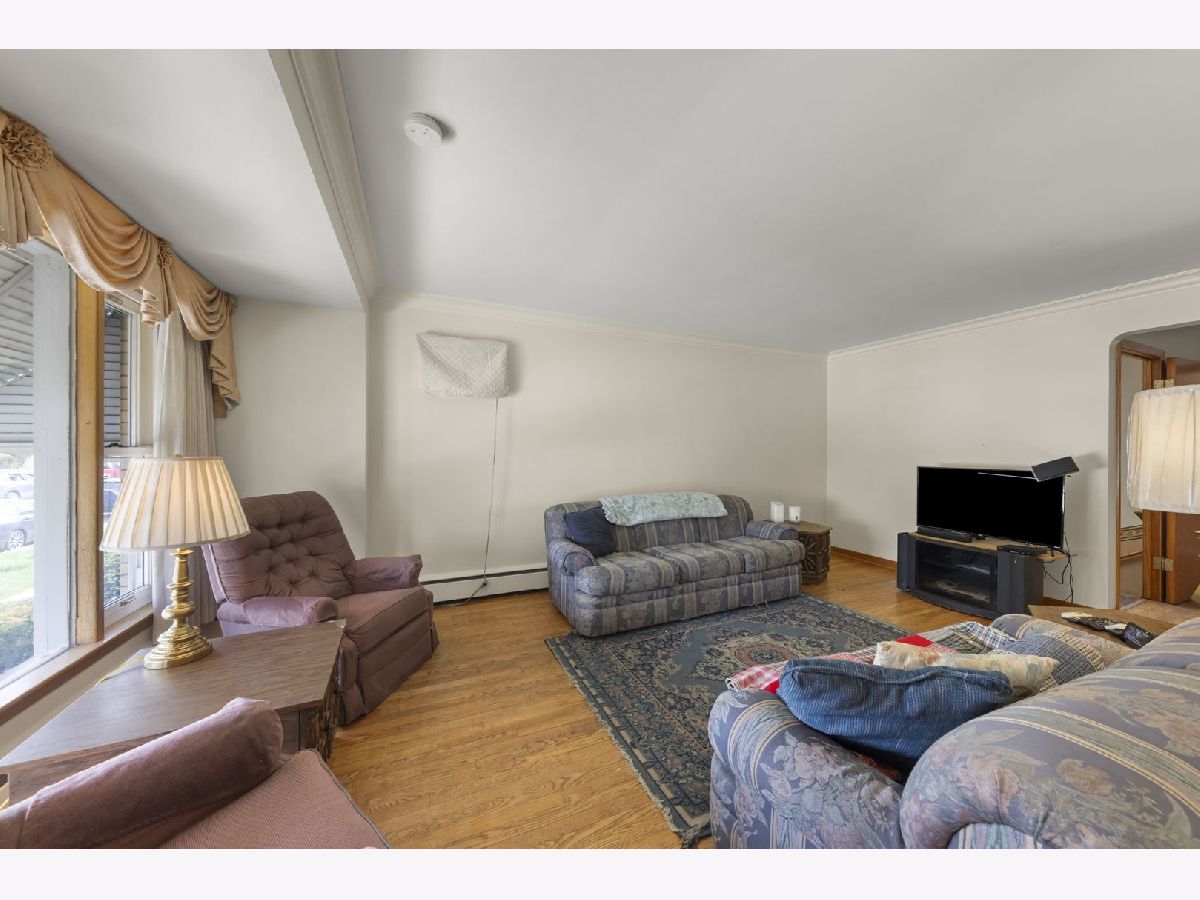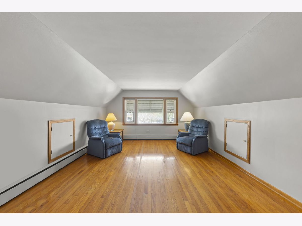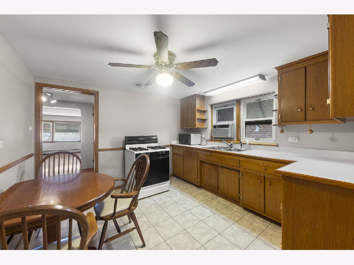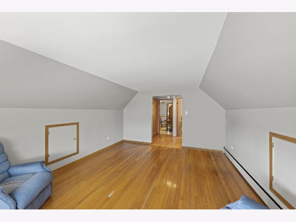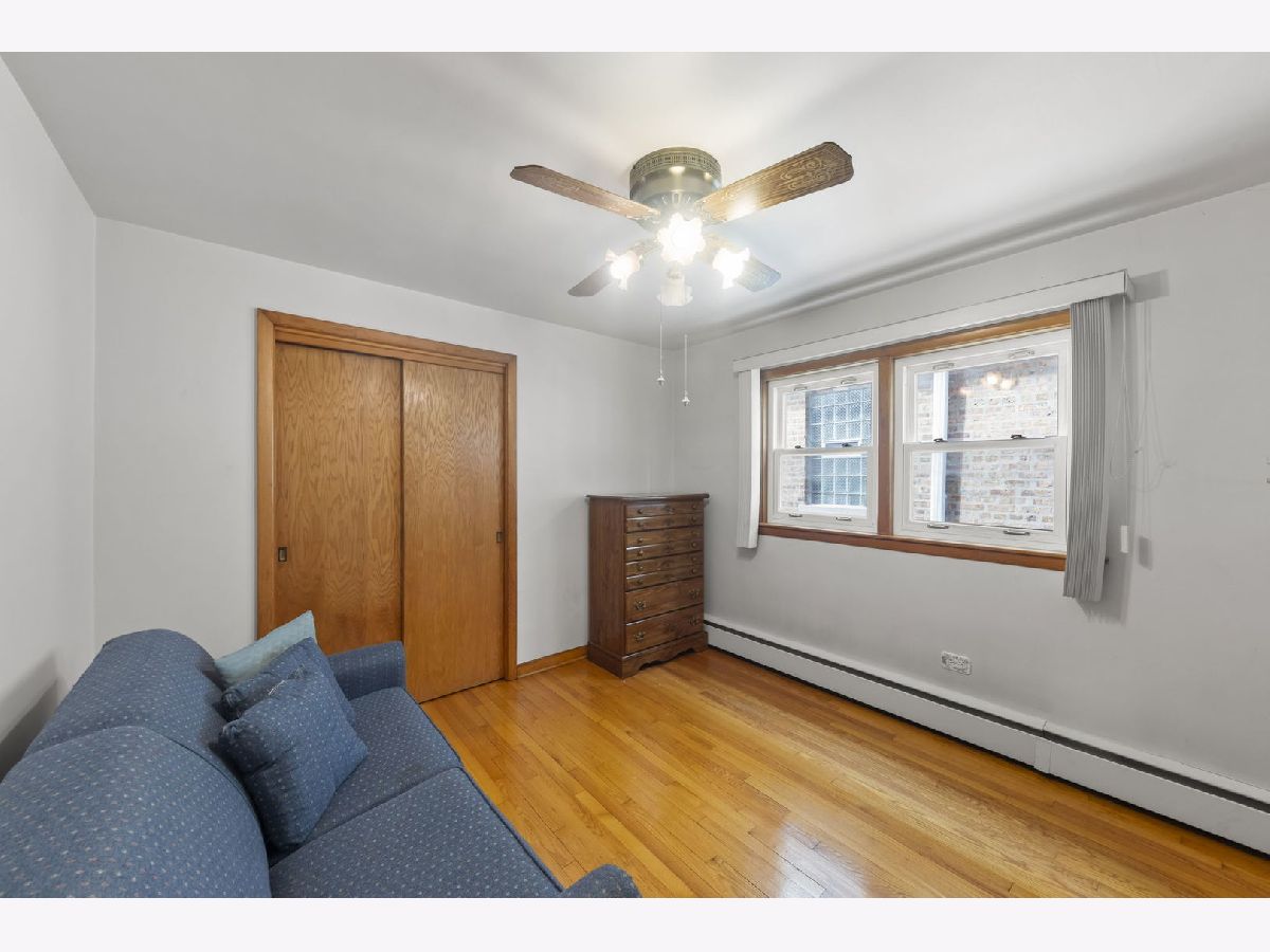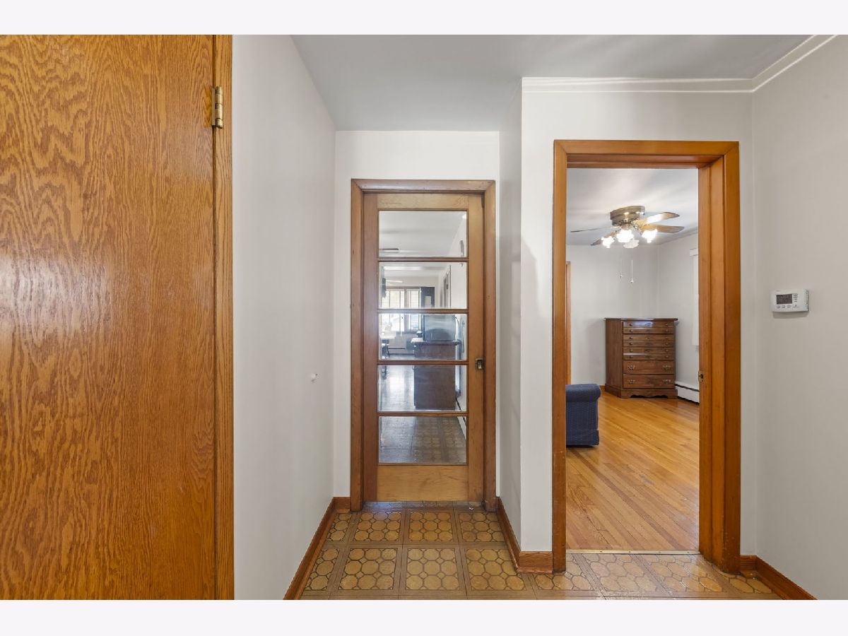 Heart. Be. Still. This is the kind of home that quietly tells a story the moment you arrive-cherished by the same family for 55 years and built with a level of quality and craftsmanship that stands the test of time. With an incredible amount of square footage and thoughtfully placed updated and well insulated windows wrapping the home, natural light pours in from many angles, creating a warm, inviting backdrop for everyday living. A small but mighty front porch welcomes you in, perfect for morning coffee or unwinding at the end of the day. Step through the front door, an architectural sight in itself with striking mid-century modern detail, and you're immediately greeted by hardwood floors that run throughout the first floor. The living room offers a generous footprint, ideal for gathering, while three well-sized bedrooms and a full bath provide functionality. Open the glass-paneled pocket door and discover the true heart of the home: a massive kitchen designed for connection and creativity. With substantial counter space, abundant cabinetry, and a peninsula with cabinets that open from both sides (a rare and thoughtful touch), this space is built for hosting, cooking, and living fully. Architectural details like the timepiece backsplash, scalloped trim around the sink, and open shelving bring character and charm, while a sunny eating area invites conversation. Glass cube windows and a large picture window frame overlook the backyard, flood the space with natural light. A generously sized pantry and ample shelving complete the kitchen's impressive functionality. Each bedroom features deep closets, ensuring storage is never a concern. A centrally located staircase connects the home seamlessly, offering access to a side exterior entrance and leading to the second floor. Upstairs, you'll find a fully functional second living space-complete with its own spacious eat-in kitchen, a large living room with built-in wall storage, and beautifully angled ceilings that add architectural interest. Two additional bedrooms provide even more room for guests, extended living, or flexible use. Outside, the yard is sweet and manageable, with a dedicated garden area ready for your personal touch. A two-car garage adds convenience, while the location ties it all together-just steps to the elementary school, less than a block to West Lawn Park, Fitness Center, pickleball courts, and soccer fields. Enjoy close proximity to shopping, Midway Airport, and easy access to public transportation. This is more than a home-it's a legacy of care, space, and possibility, ready for its next chapter.